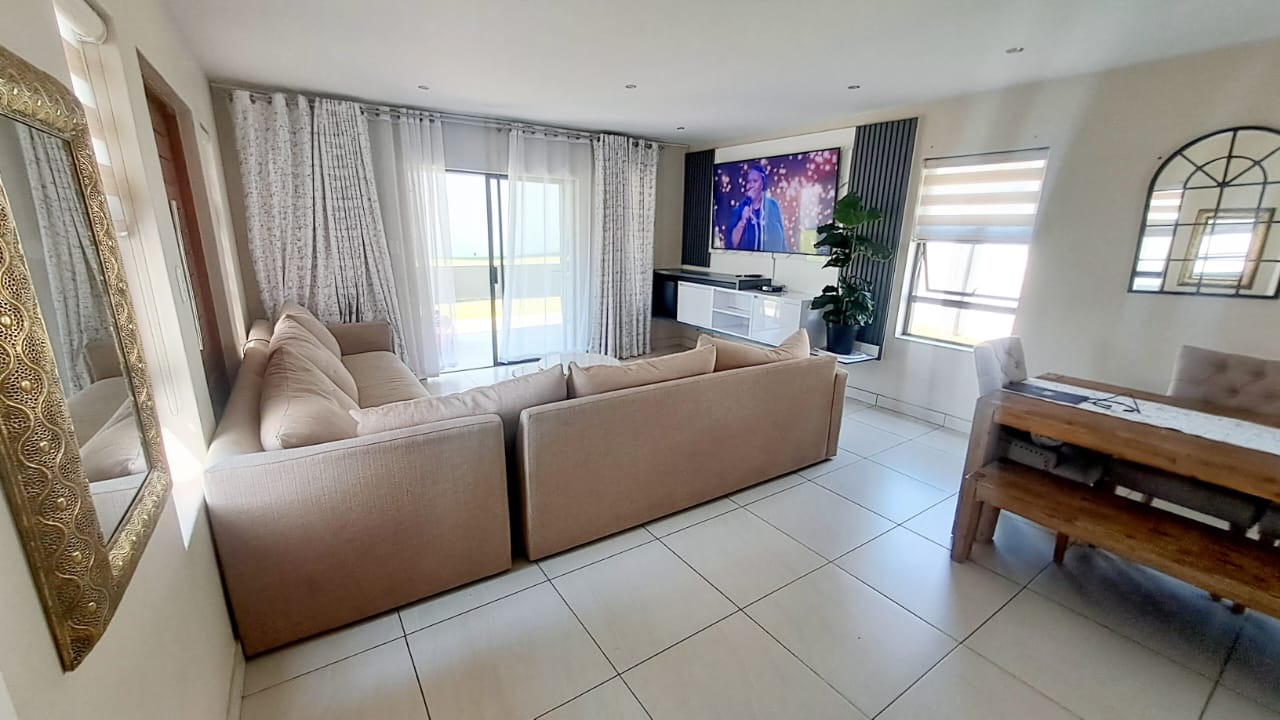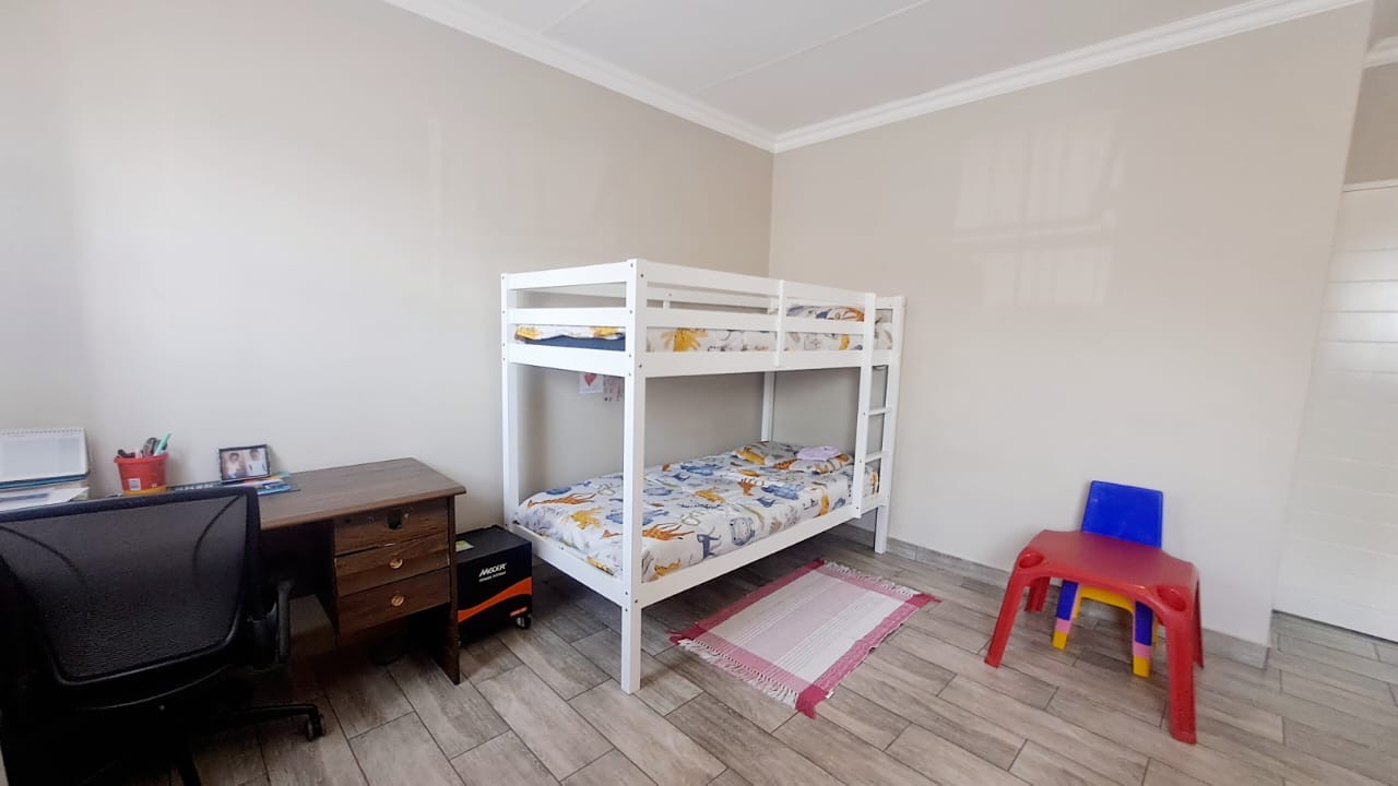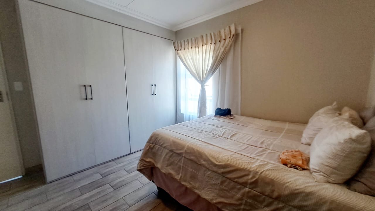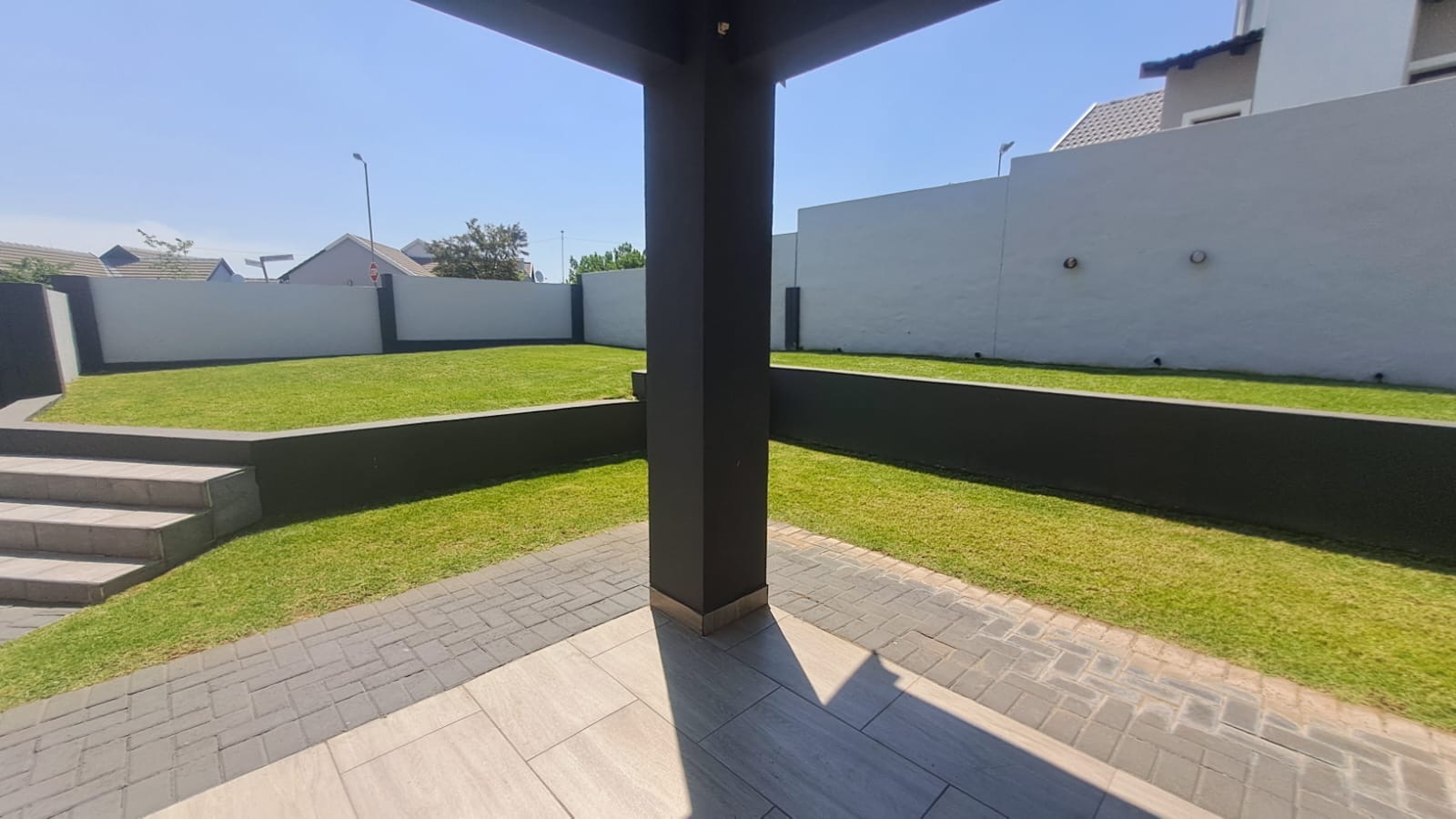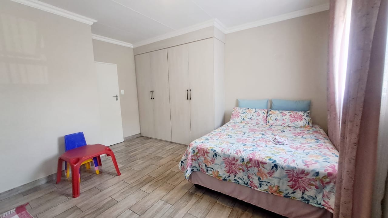 Discover the perfect balance of style, comfort, and security in this immaculate 3-bedroom, 2.5-bathroom double-story home situated in a sought-after estate in Kosmosdal, Centurion. The residence boasts a sleek white and charcoal-grey exterior, complemented by a manicured lawn and paved driveway leading to a double automated garage—offering impressive kerb appeal from the moment you arrive.