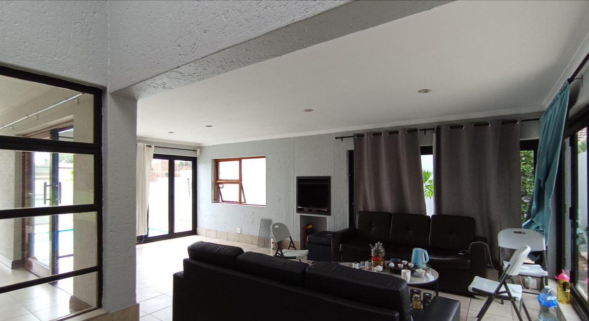 Nestled within the secure gated community of Dowerglen Ext 5 in Edenvale, this expansive residence offers a blend of comfort and functionality for family living. Boasting a generous floor size of 449 sqm on a 948 sqm erf, the property provides ample space both indoors and out. The interior features a well-designed layout, including two spacious lounges, a dedicated dining room, and a functional kitchen complemented by a convenient pantry. An inviting entrance hall welcomes residents and guests, while a dedicated study offers a quiet space for work or contemplation. Throughout various living areas, you'll find practical tiled flooring and modern white built-in cabinets, providing excellent storage solutions. Some areas showcase a distinctive modern industrial aesthetic with exposed ceiling beams and dark concrete floors, adding character. Accommodation comprises five comfortable bedrooms and four bathrooms, two of which are private ensuites, ensuring privacy and convenience for all occupants. The bathrooms are appointed with modern fixtures, including a sleek glass basin and mosaic-tiled walk-in showers, benefiting from natural light. Built-in wardrobes in the bedrooms offer practical storage. Outdoor living is well catered for with a private garden, perfect for relaxation and entertaining. The property features a refreshing swimming pool and a luxurious jacuzzi, ideal for unwinding. Practical elements include paving, two garages, and two additional parking spaces, accommodating multiple vehicles. Pets are welcome, making this a true family home. Security is a priority within this gated community, enhanced by an alarm system, access gate, 24-hour security, burglar bars, and security gates, providing peace of mind. The home is also fibre-ready, ensuring high-speed internet connectivity. Dowerglen Ext 5 is a sought-after residential area in Edenvale, known for its family-friendly environment and convenient access to local amenities. This established suburb offers a tranquil setting, well-connected to major routes and facilities. Key Features: * 5 Bedrooms, 4 Bathrooms (2 Ensuites) * 2 Lounges, Dining Room, Kitchen with Pantry * Dedicated Study and Entrance Hall * Swimming Pool and Jacuzzi * Private Garden and Paving * 2 Garages and 2 Parking Spaces * Gated Community with 24-Hour Security * Alarm System, Burglar Bars, Security Gate * Fibre Ready * Pets Allowed