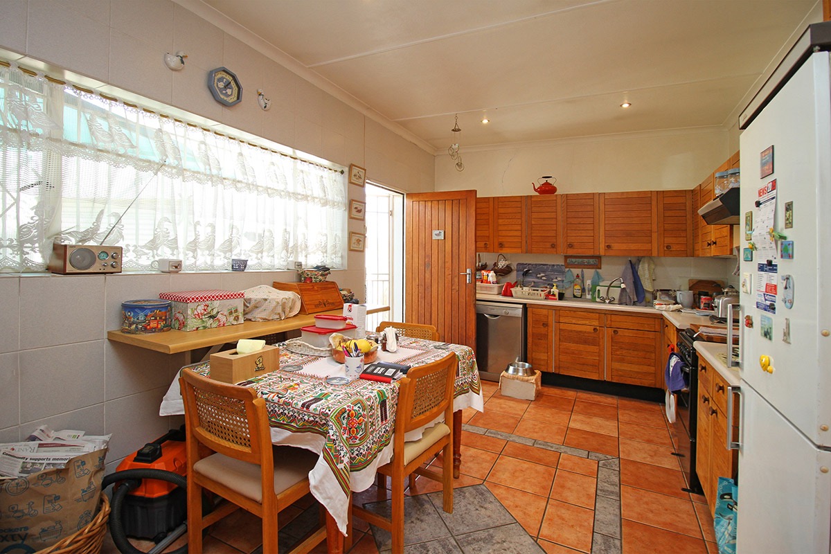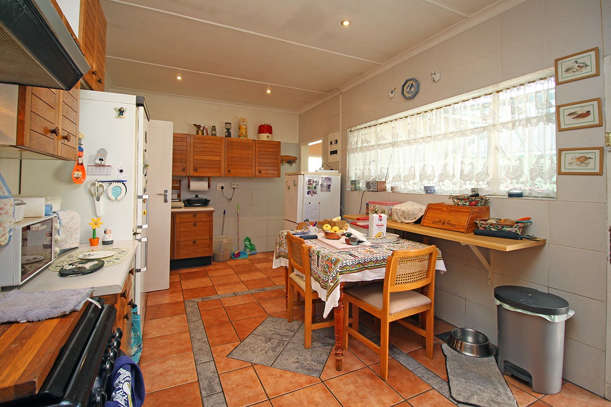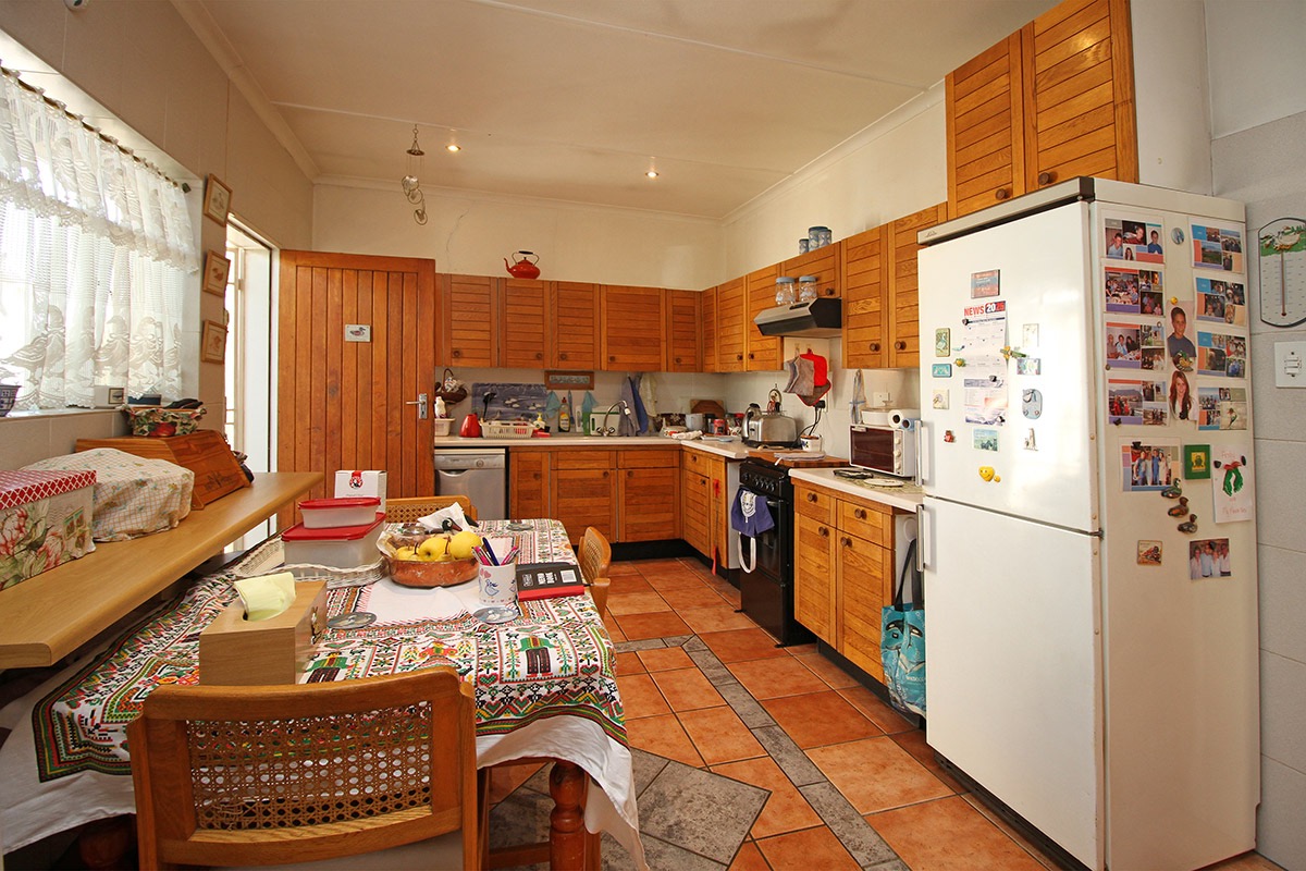Upon entry, the interior reveals a functional layout comprising a lounge, a dedicated dining room, and a kitchen. These living areas are characterized by durable tiled flooring and benefit from abundant natural light, creating an inviting atmosphere. While the current aesthetic offers a traditional charm, it also provides a superb canvas for modernisation, allowing new owners to infuse their personal style. The kitchen, equipped with extensive wooden cabinetry and an integrated dining space, offers direct access to the outdoors, ensuring practicality.