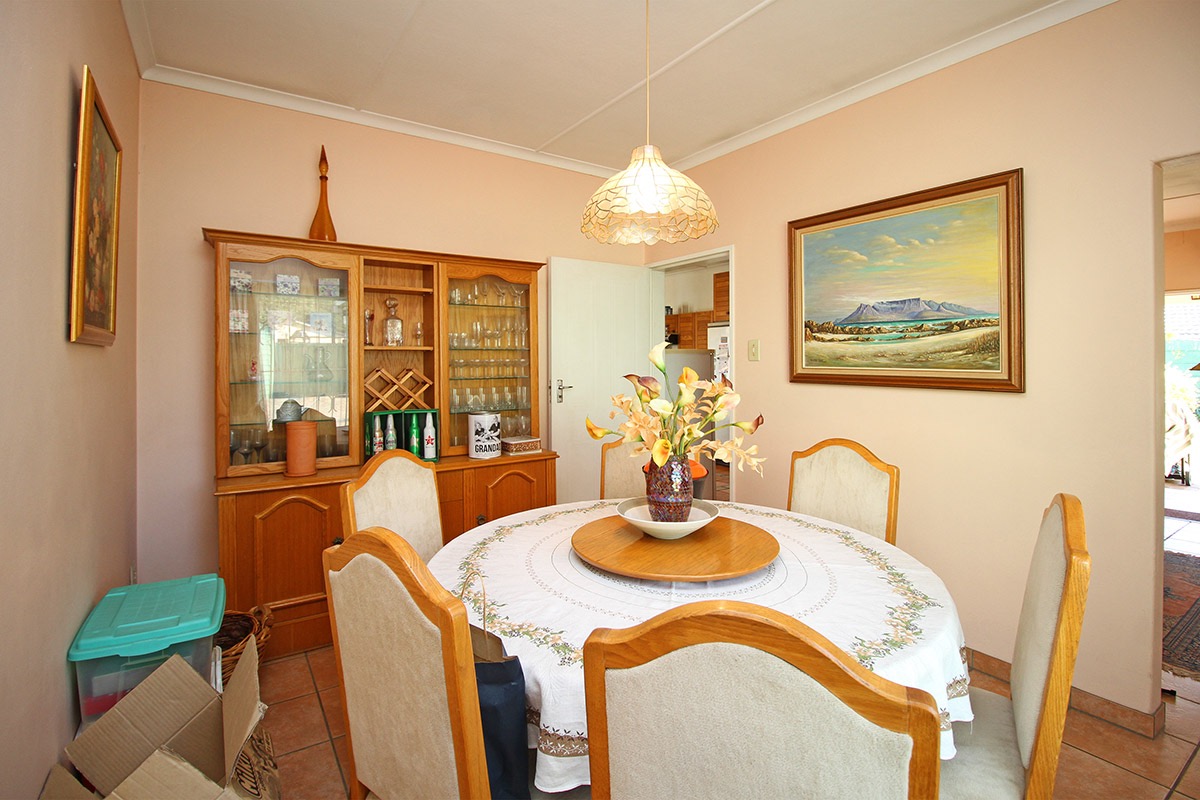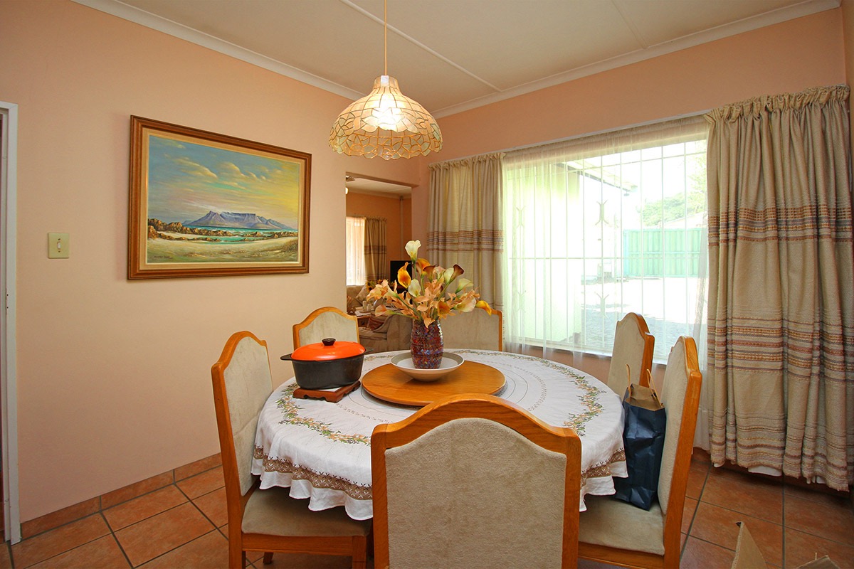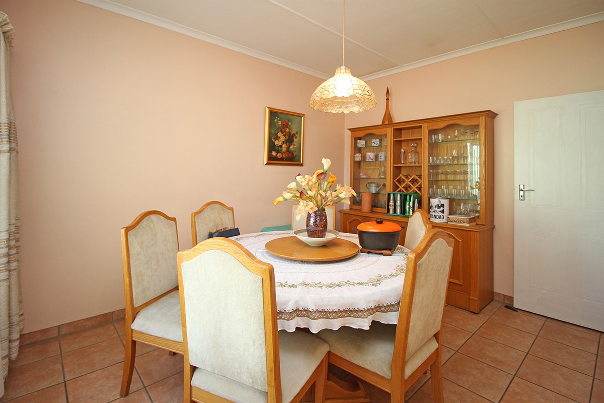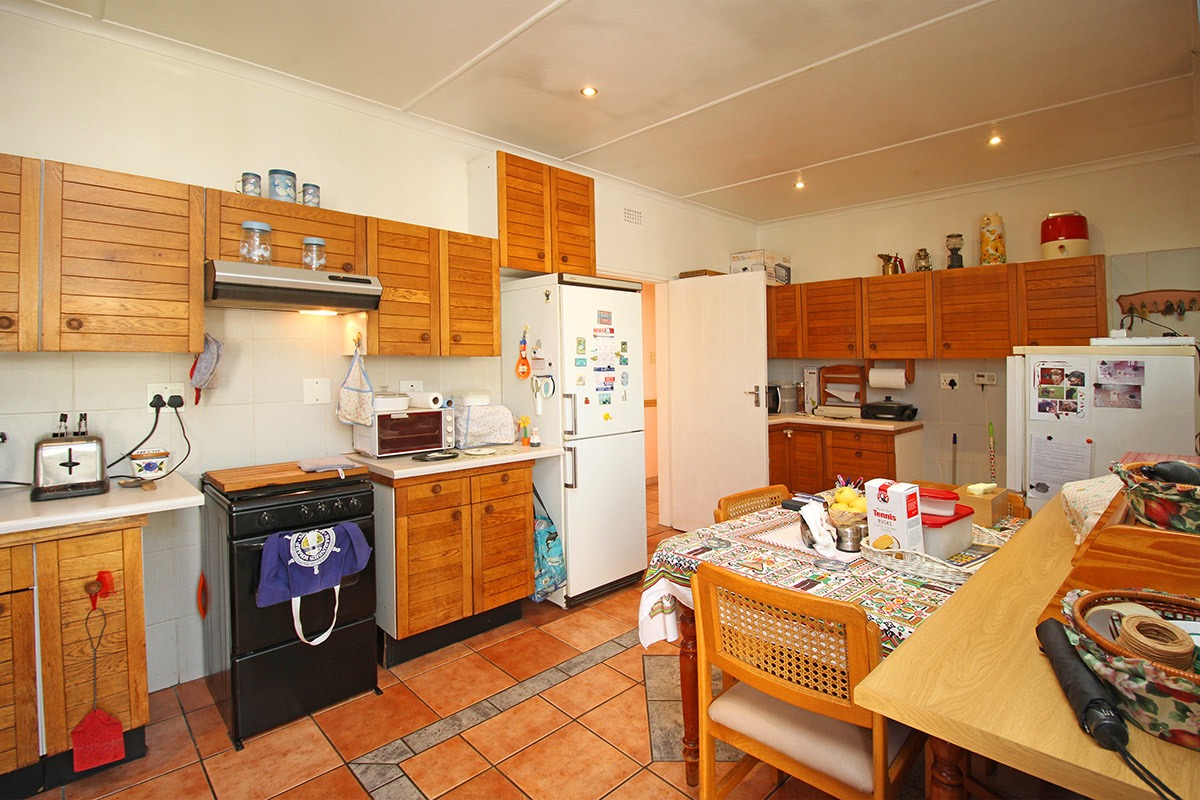 Upon entry, the interior reveals a functional layout comprising a lounge, a dedicated dining room, and a kitchen. These living areas are characterized by durable tiled flooring and benefit from abundant natural light, creating an inviting atmosphere. While the current aesthetic offers a traditional charm, it also provides a superb canvas for modernisation, allowing new owners to infuse their personal style. The kitchen, equipped with extensive wooden cabinetry and an integrated dining space, offers direct access to the outdoors, ensuring practicality.