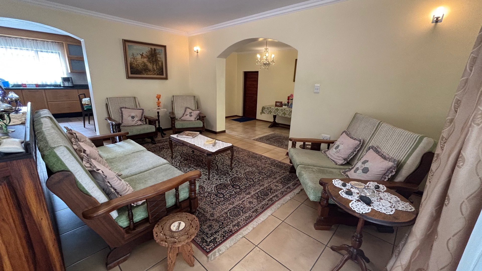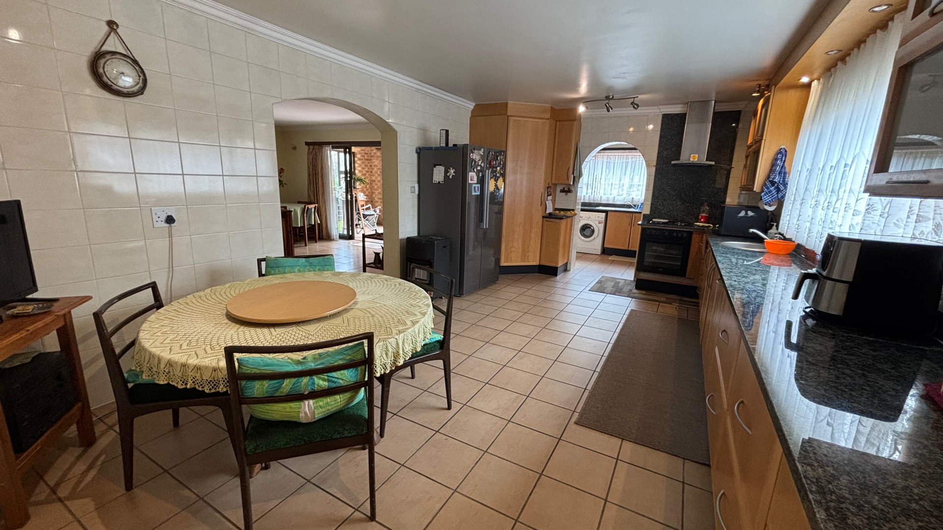 Discover this charming residential property located in the desirable Eastleigh suburb of Edenvale, South Africa. Boasting a solid brick construction, the home presents excellent kerb appeal with a long, paved herringbone driveway leading to a double garage featuring attractive wooden doors. Mature trees and a private boundary wall enhance the exterior, complemented by a well-maintained garden and spacious brick-paved courtyard, ideal for outdoor enjoyment. Step inside to a thoughtfully designed multi-level layout spanning 431 sqm. The interior features tiled flooring throughout, decorative archways, and crown molding, creating a sense of spaciousness and character. The home offers two comfortable lounges and a dedicated dining room, providing ample space for relaxation and entertaining. A functional kitchen, complete with a pantry, caters to culinary needs, while a dedicated study offers a quiet workspace. Accommodation includes three well-proportioned bedrooms, with 2.5 bathrooms, including a private ensuite for added convenience. The property also benefits from staff quarters, adding to its versatility. Pets are allowed, making it a perfect family home. Security is a priority, with the property situated within a gated community and featuring a security post, 24-hour security, burglar bars, and a security gate. Its location in a cul-de-sac further enhances privacy and safety. Modern amenities include central heating and fibre connectivity, ensuring comfort and seamless communication. Eastleigh offers a well-established community within Edenvale, known for its convenient access to local amenities and a peaceful suburban environment. This property provides a secure and comfortable lifestyle for its residents. Key Features: * 3 Bedrooms, 2.5 Bathrooms (1 Ensuite) * 2 Lounges, 1 Dining Room * Double Garage & Paved Driveway * Study & Pantry * Staff Quarters * Gated Community with 24-Hour Security * Fibre Connectivity & Central Heating * Pet-Friendly with Garden & Paving * Erf Size: 849 sqm, Floor Size: 431 sqm