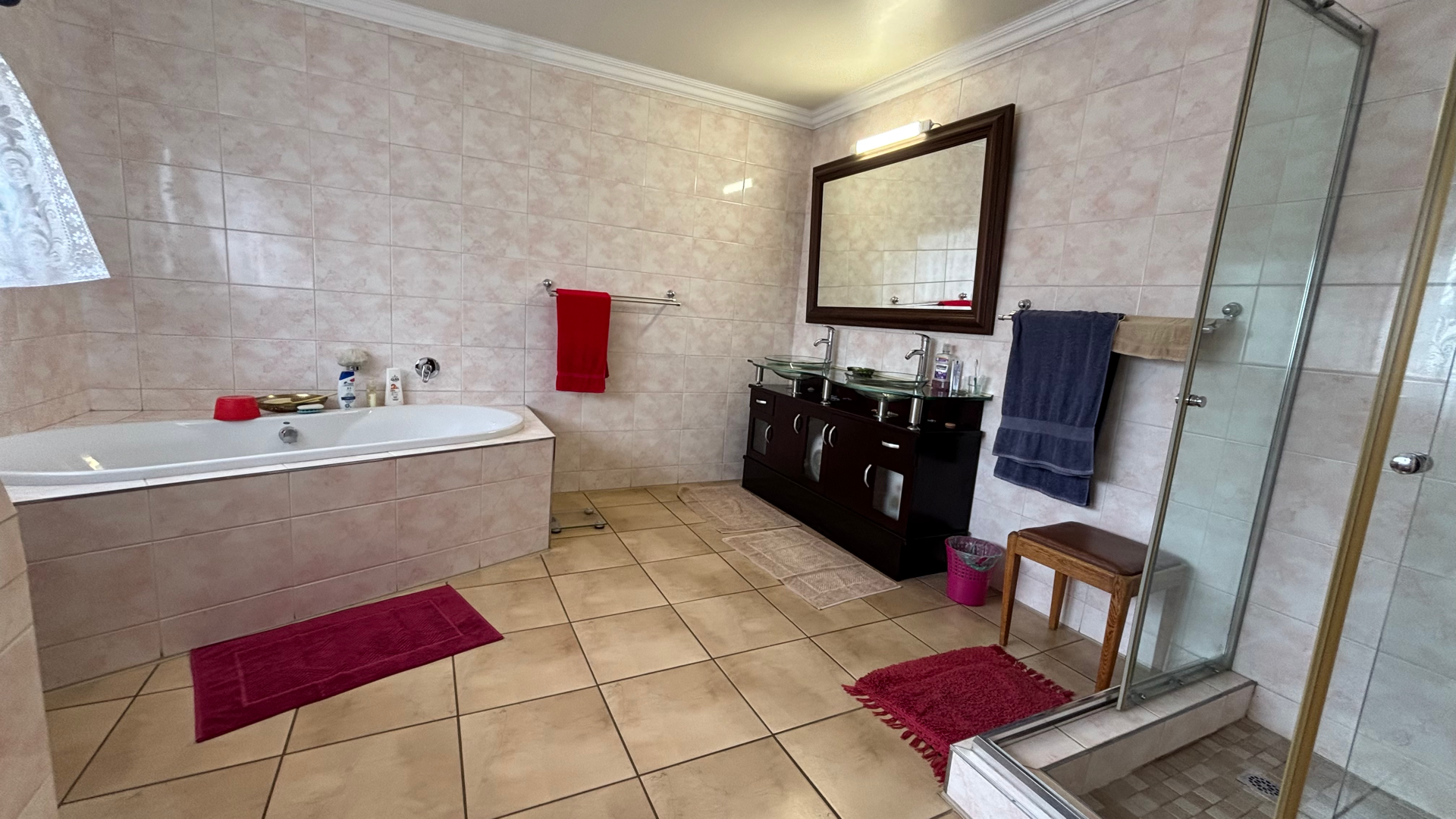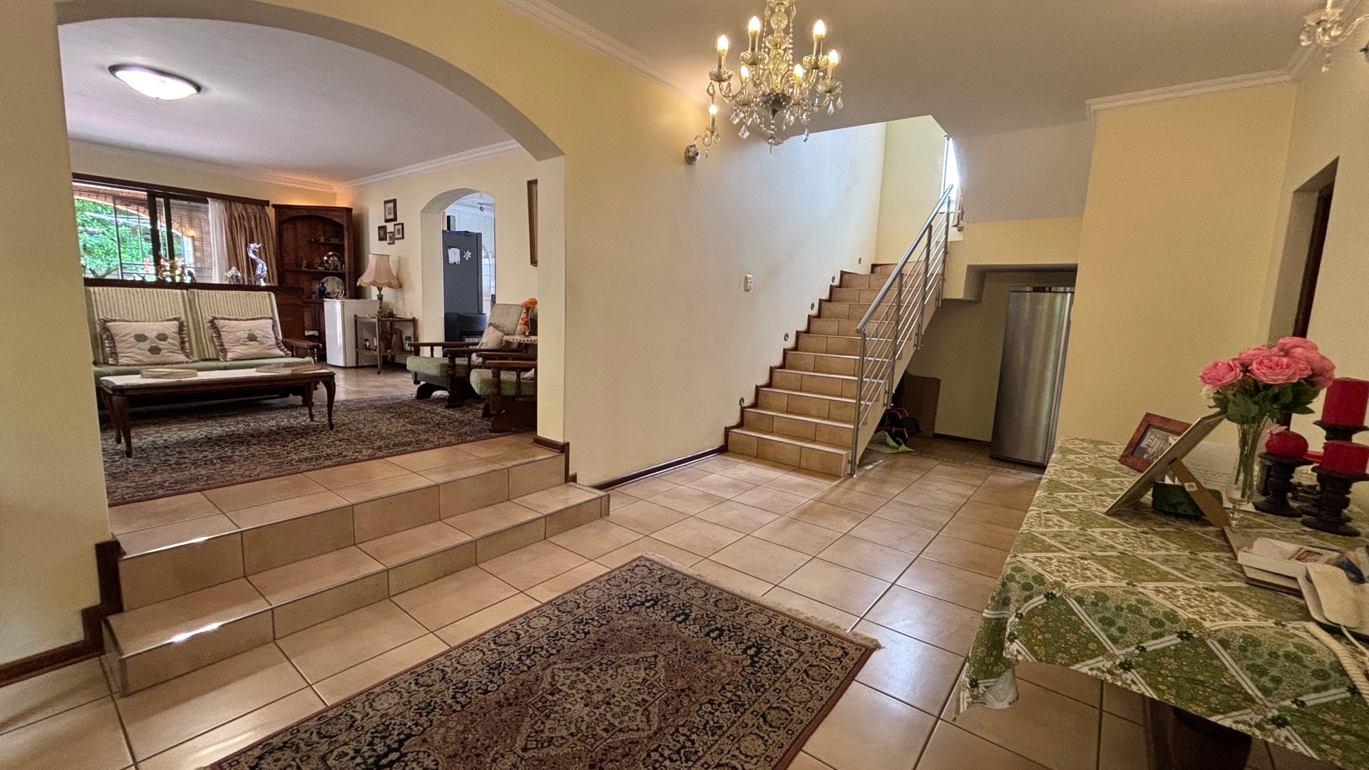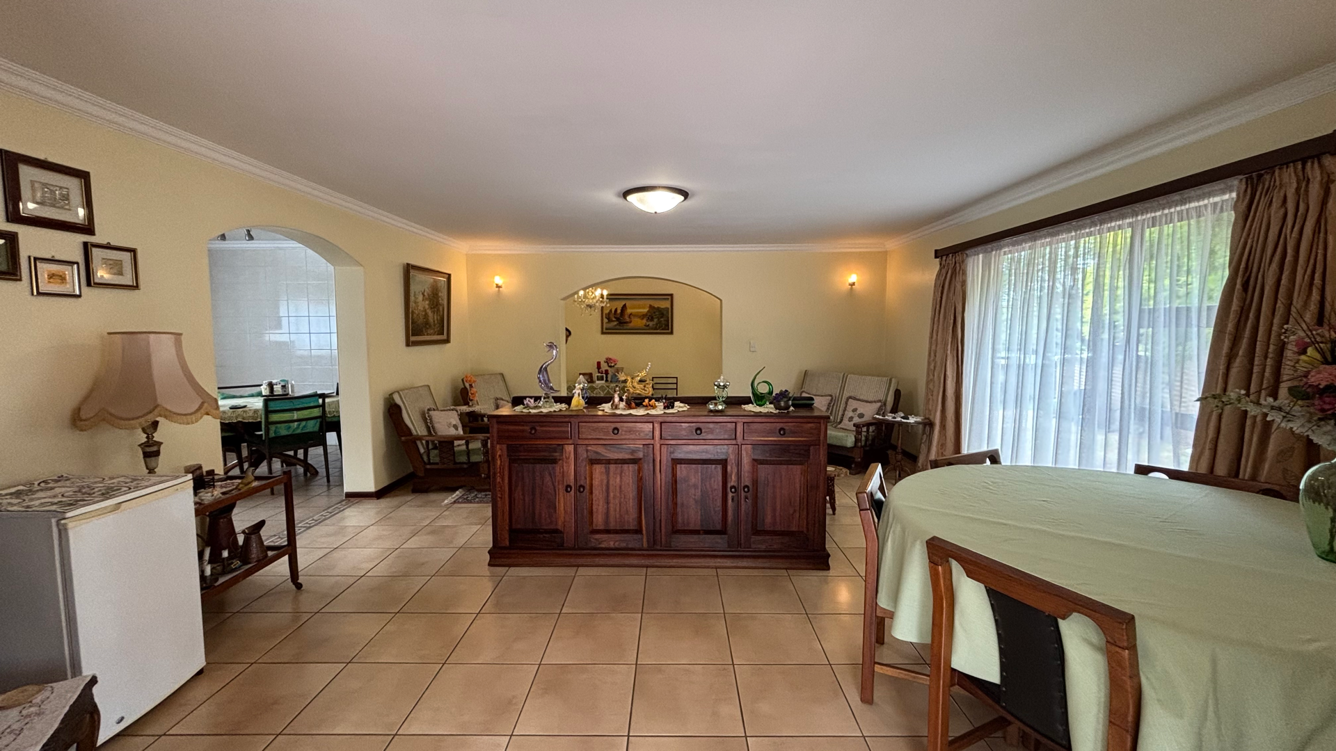 Discover this charming residential property located in the desirable Eastleigh suburb of Edenvale, South Africa. Boasting a solid brick construction, the home presents excellent kerb appeal with a long, paved herringbone driveway leading to a double garage featuring attractive wooden doors. Mature trees and a private boundary wall enhance the exterior, complemented by a well-maintained garden and spacious brick-paved courtyard, ideal for outdoor enjoyment. Step inside to a thoughtfully designed multi-level layout spanning 431 sqm. The interior features tiled flooring throughout, decorative archways, and crown molding, creating a sense of spaciousness and character. The home offers two comfortable lounges and a dedicated dining room, providing ample space for relaxation and entertaining. A functional kitchen, complete with a pantry, caters to culinary needs, while a dedicated study offers a quiet workspace. Accommodation includes three well-proportioned bedrooms, with 2.5 bathrooms, including a private ensuite for added convenience. The property also benefits from staff quarters, adding to its versatility. Pets are allowed, making it a perfect family home. Security is a priority, with the property situated within a gated community and featuring a security post, 24-hour security, burglar bars, and a security gate. Its location in a cul-de-sac further enhances privacy and safety. Modern amenities include central heating and fibre connectivity, ensuring comfort and seamless communication. Eastleigh offers a well-established community within Edenvale, known for its convenient access to local amenities and a peaceful suburban environment. This property provides a secure and comfortable lifestyle for its residents. Key Features: * 3 Bedrooms, 2.5 Bathrooms (1 Ensuite) * 2 Lounges, 1 Dining Room * Double Garage & Paved Driveway * Study & Pantry * Staff Quarters * Gated Community with 24-Hour Security * Fibre Connectivity & Central Heating * Pet-Friendly with Garden & Paving * Erf Size: 849 sqm, Floor Size: 431 sqm