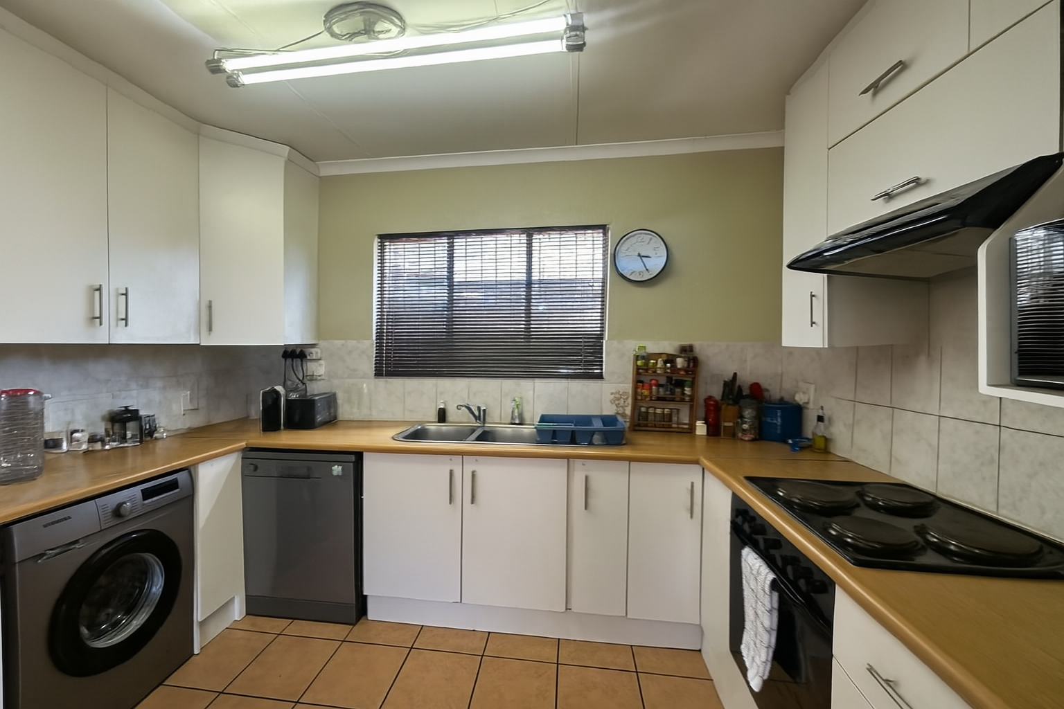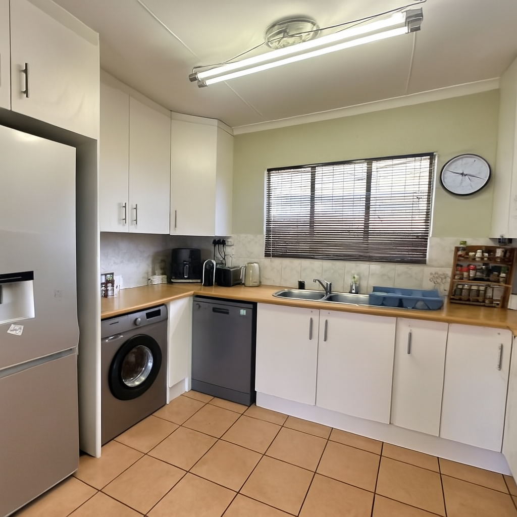 Light-filled living area flowing into a functional kitchen with two undercounter appliance space