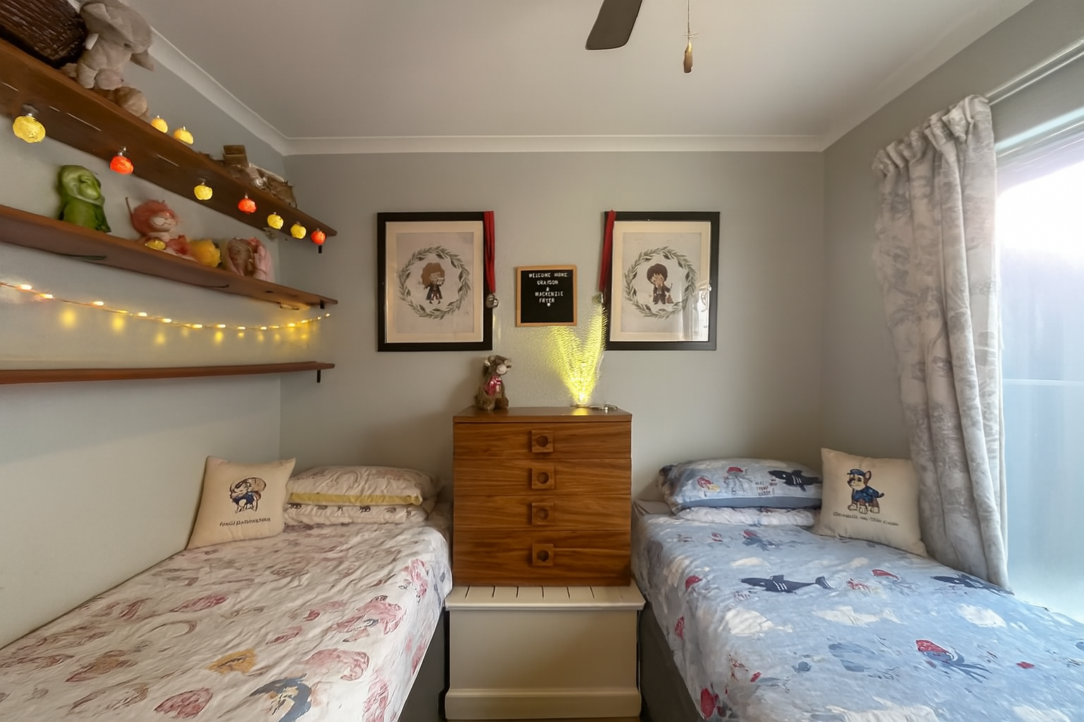 2 Bedrooms – Main bedroom comes with aircon and a chic built-in vanity.