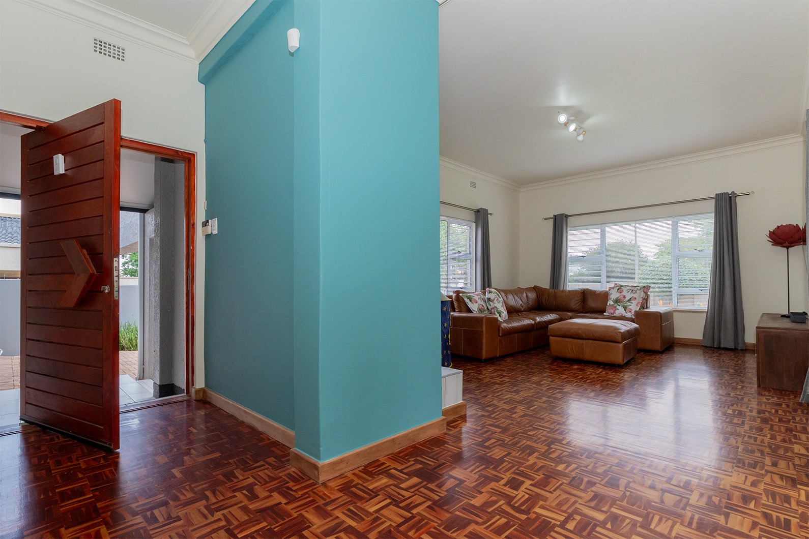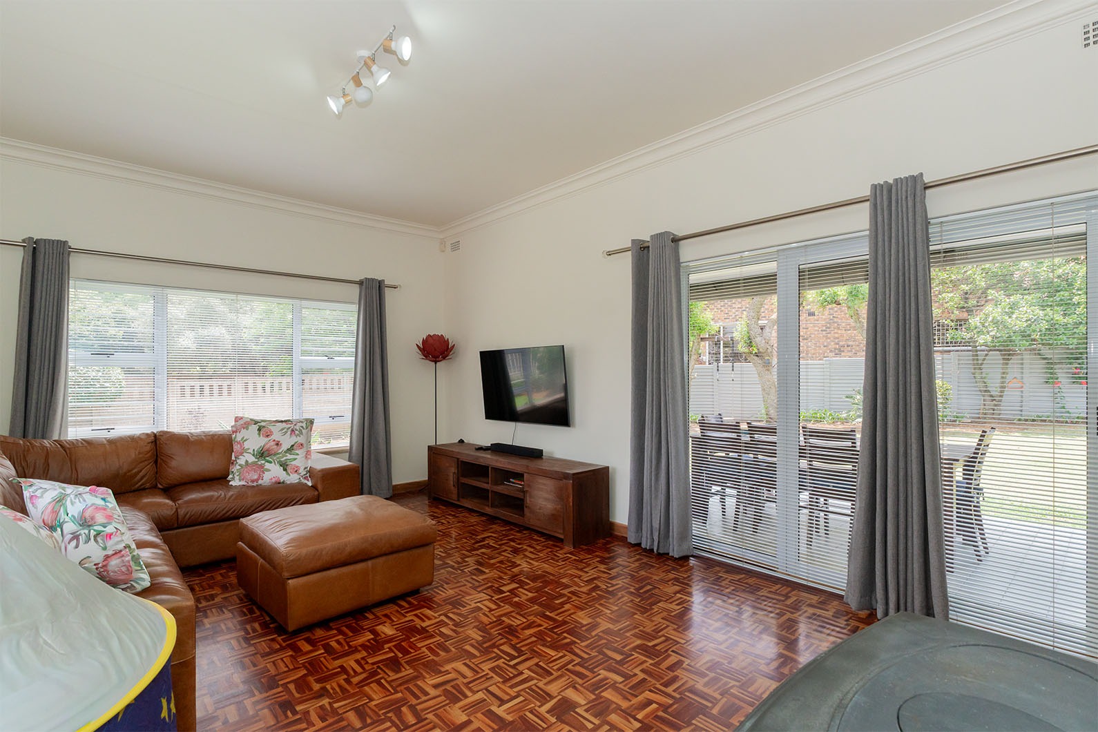Aluminium windows throughout and aluminium sliding doors leading out to covered entertainment area.