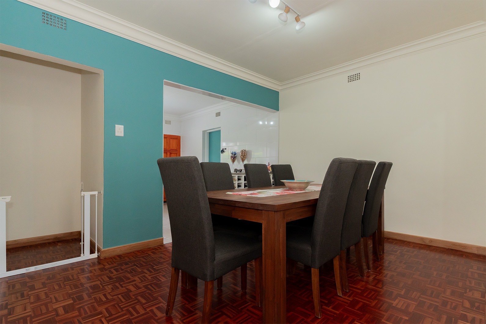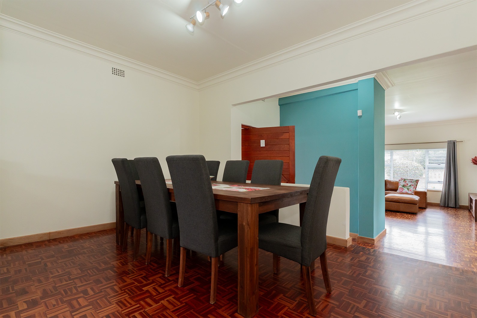 Step inside to discover generous living areas featuring classic parquet flooring and elegant crown moulding, creating a warm and welcoming atmosphere. Large windows throughout ensure abundant natural light, enhancing the spacious feel. The home includes a dedicated dining room and a comfortable lounge, with an open-plan design promoting seamless flow. A cosy fireplace adds to the ambiance, perfect for cooler evenings.