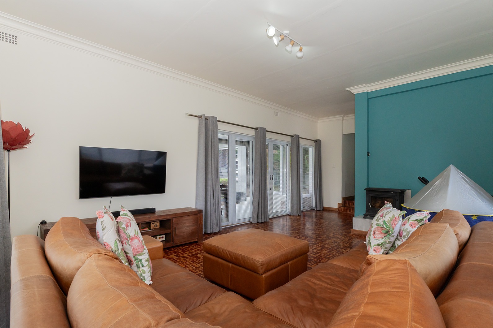 Aluminium windows throughout and aluminium sliding doors leading out to covered entertainment area.