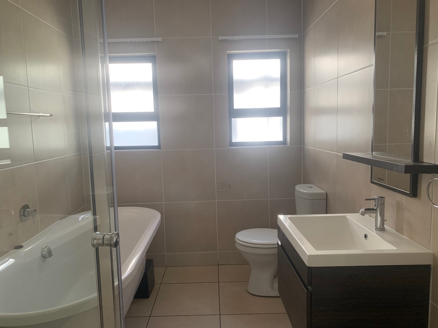 Discover modern estate living in this stylish 2-bedroom, 2-bathroom apartment located within a vibrant lifestyle centre in Greenstone Hill, Edenvale. The complex boasts appealing architectural design and extensive, well-maintained landscaping, creating an inviting first impression for residents and guests alike. Spanning 99 square metres, this apartment offers a contemporary interior designed for comfort and convenience. The modern kitchen features dark wood-grain cabinetry, white countertops, and integrated stainless steel appliances, including a washing machine, dishwasher, and a gas hob with an extractor fan. Natural light fills the open-plan lounge, which provides access to a private balcony, perfect for relaxation and enjoying the views of the surrounding residential complex. The two well-appointed bedrooms are fitted with easy-to-clean tiled flooring and built-in dark wood wardrobes, offering ample storage. The two modern bathrooms, one of which is an en-suite, showcase neutral tiling, floating vanities, and a combination of a freestanding bathtub and separate walk-in shower, ensuring a luxurious experience. Residents benefit from an array of communal amenities designed to enhance their lifestyle. Enjoy access to a sparkling swimming pool, a fully equipped gym, and a clubhouse. The estate also features a vibrant children's playground and a communal outdoor patio with seating, ideal for family activities and social gatherings. Two dedicated parking bays are provided, and pets are allowed, making this a truly welcoming home. Ensuring peace of mind, the estate offers 24-hour security and controlled access. The apartment is also fibre-ready, providing high-speed internet connectivity. Greenstone Hill is a sought-after suburb known for its convenience and community atmosphere. Key Features: * 2 Bedrooms, 2 Bathrooms (1 En-suite) * 99 sqm Floor Size * Modern Kitchen with Integrated Appliances * Private Balcony * 2 Dedicated Parking Bays * Access to Pool, Gym, Clubhouse * Children's Playground & Communal Patio * 24-Hour Security & Access Gate * Fibre-Ready Connectivity * Pet-Friendly