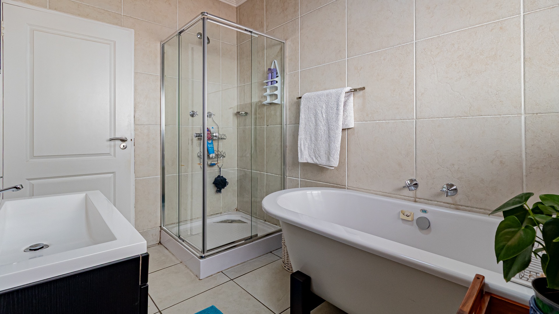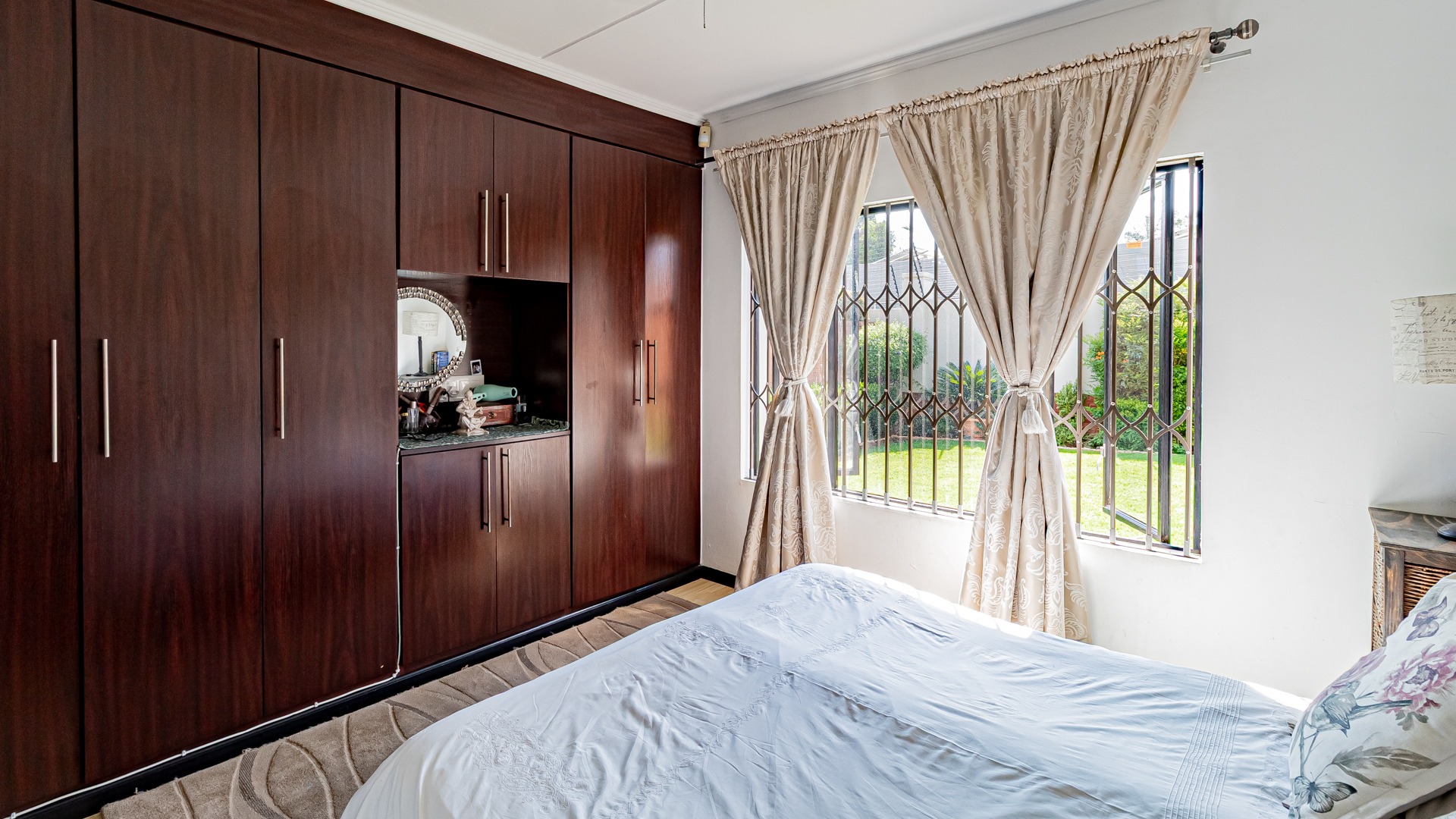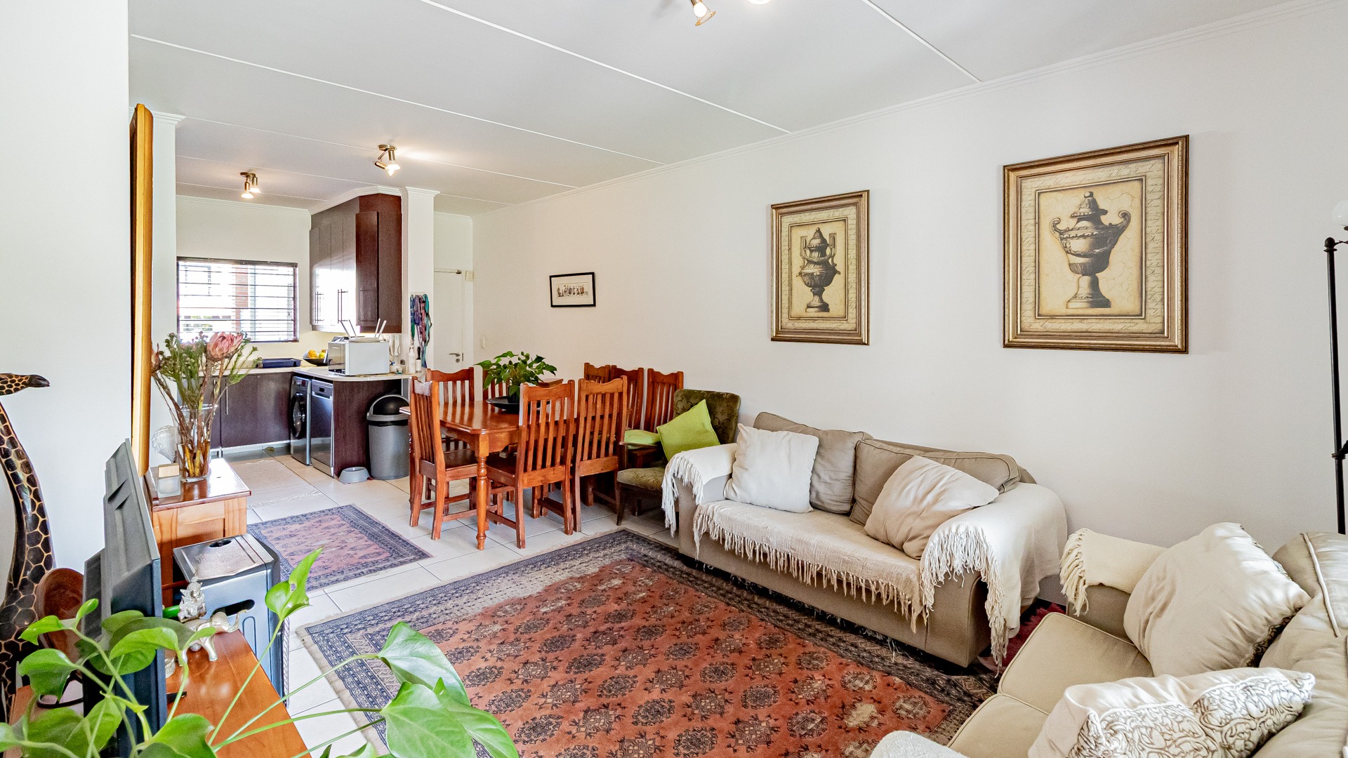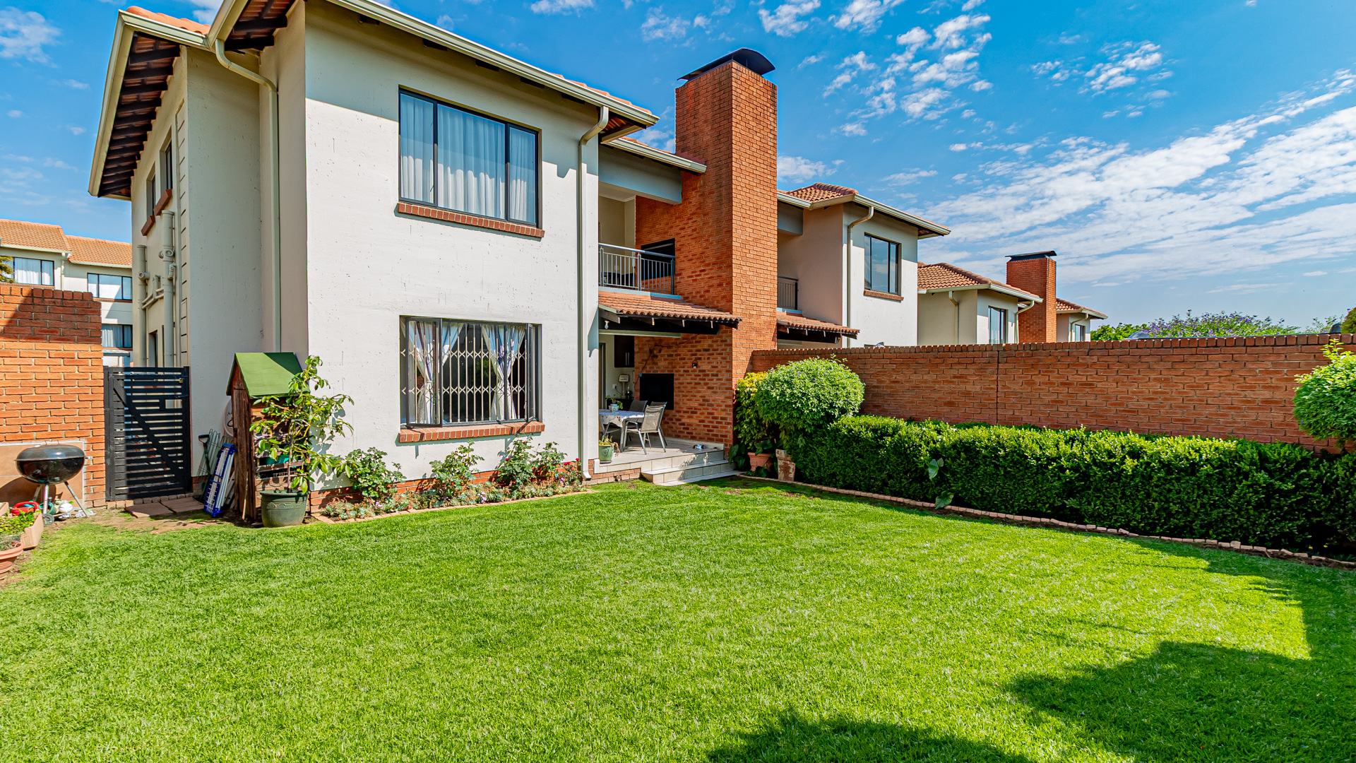 Step into this beautifully designed, light-filled three-bedroom ground-floor unit, perfectly suited for modern family living and relaxed entertaining. The galley-style kitchen is both stylish and functional, featuring Caesarstone countertops, a gas stove and oven, ample cupboard space, and room for all your appliances. The open-plan living and dining area flows effortlessly onto a covered patio and a generous, wrap-around garden, creating the ideal setting for weekend braais, kids’ playtime, or pets to roam freely and safely.