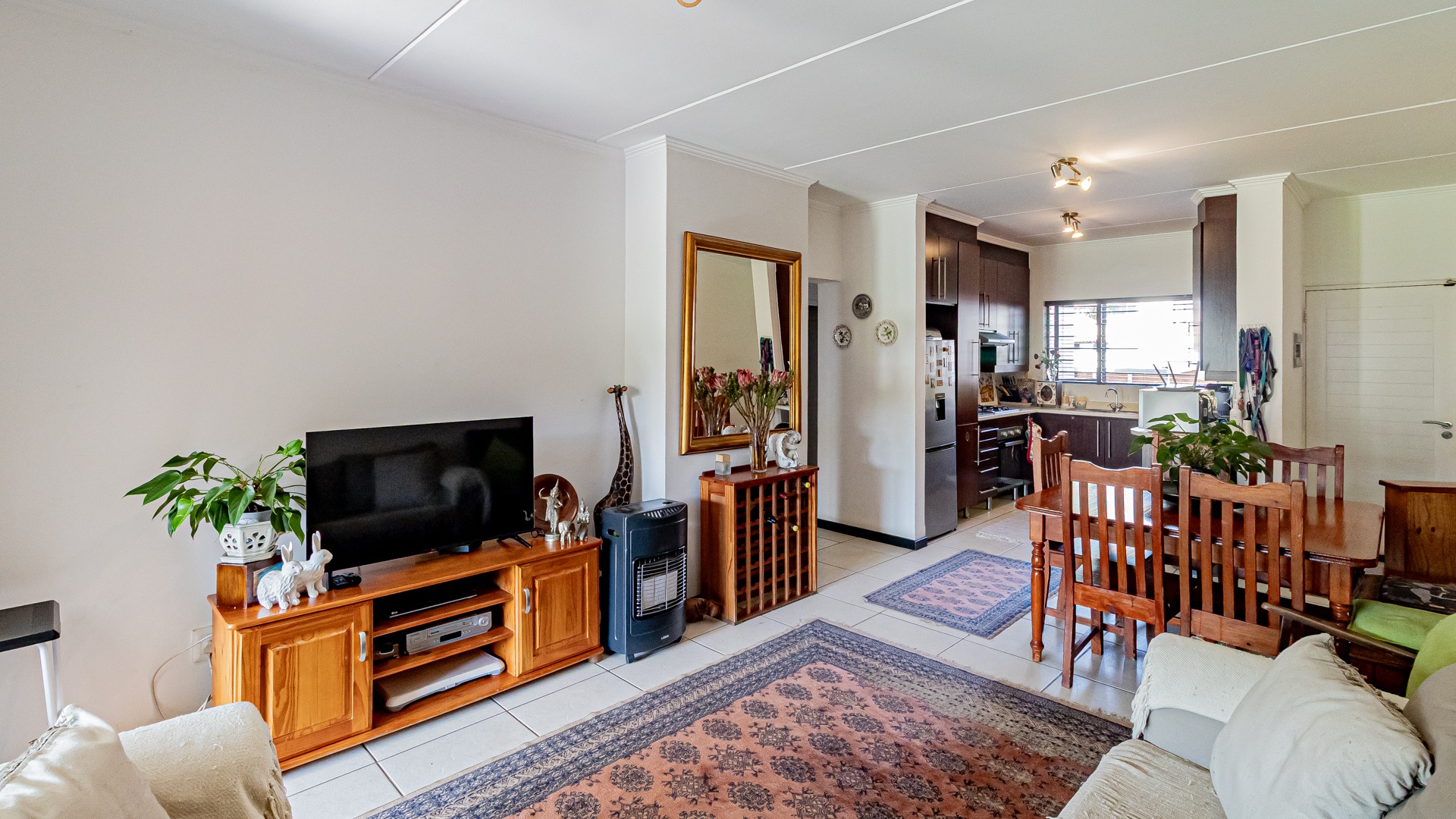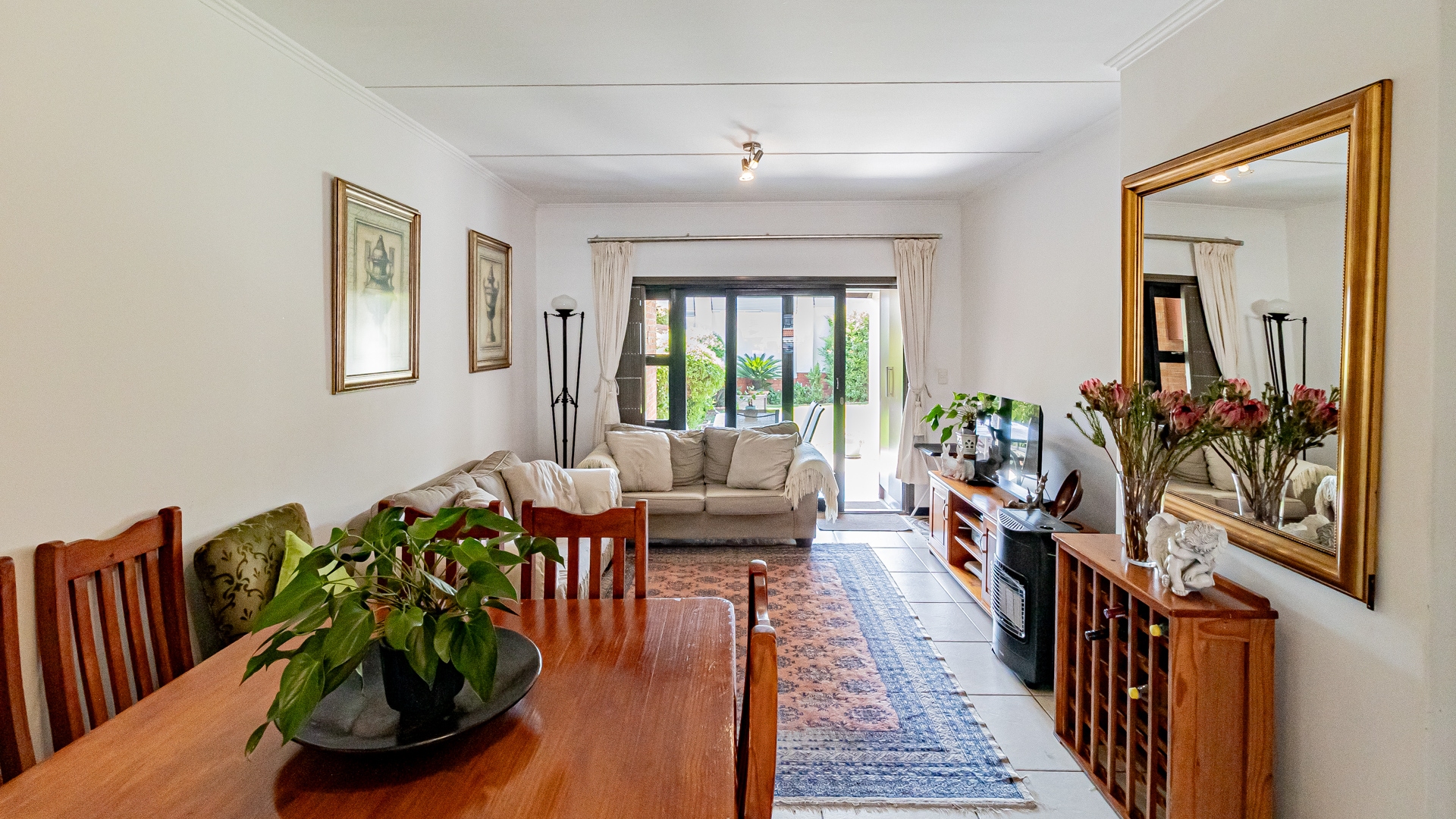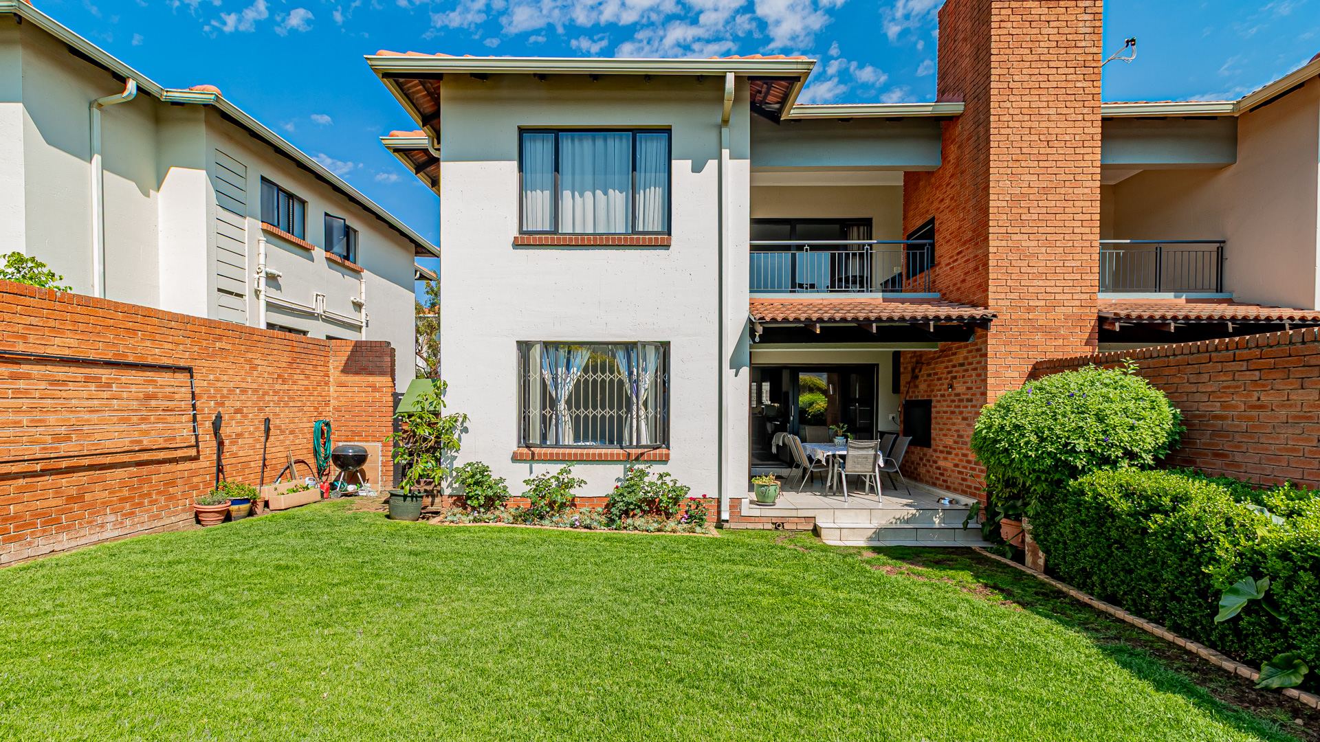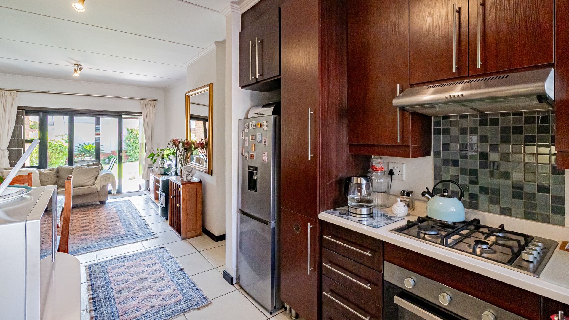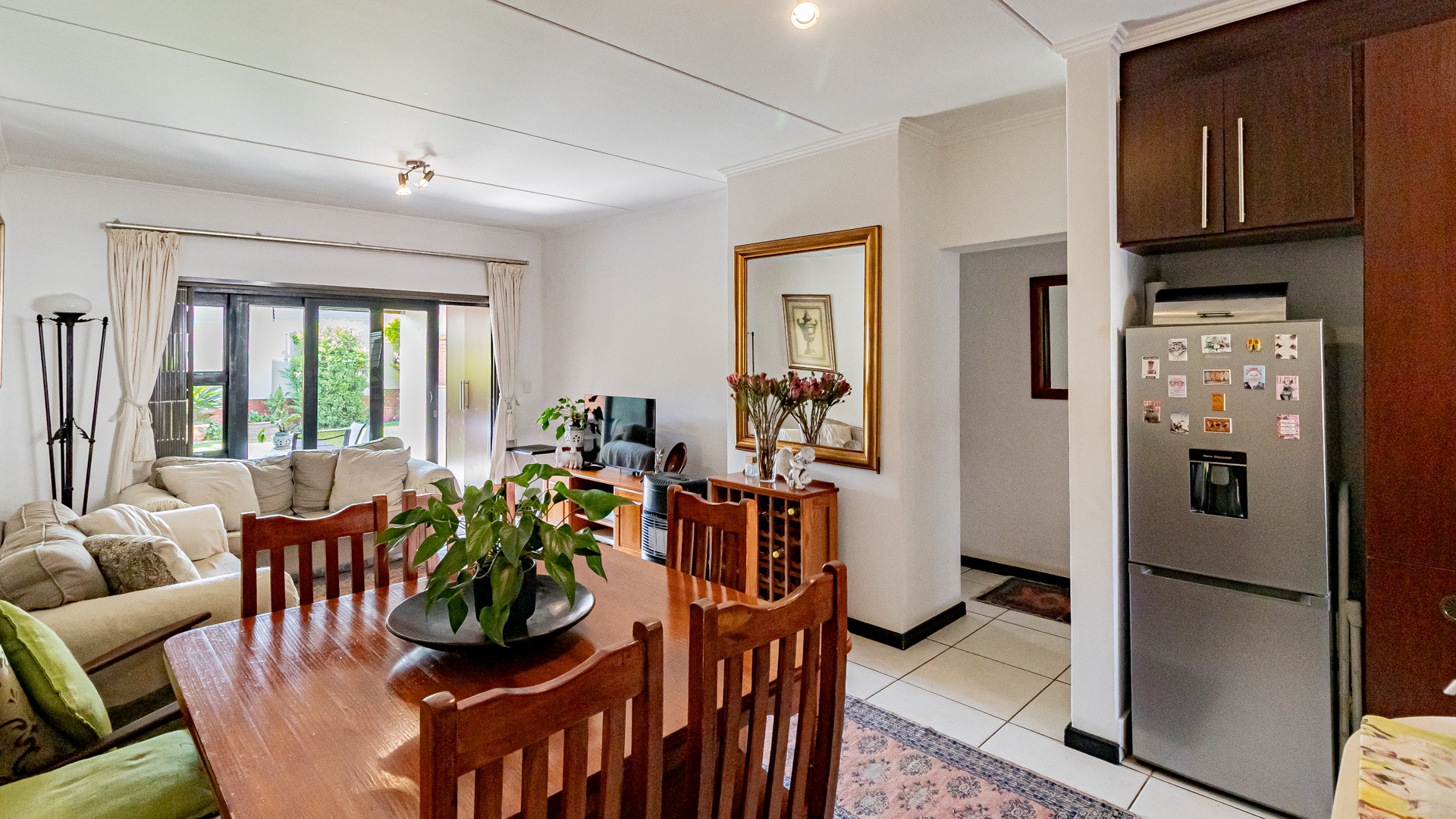 Step into this beautifully designed, light-filled three-bedroom ground-floor unit, perfectly suited for modern family living and relaxed entertaining. The galley-style kitchen is both stylish and functional, featuring Caesarstone countertops, a gas stove and oven, ample cupboard space, and room for all your appliances. The open-plan living and dining area flows effortlessly onto a covered patio and a generous, wrap-around garden, creating the ideal setting for weekend braais, kids’ playtime, or pets to roam freely and safely.