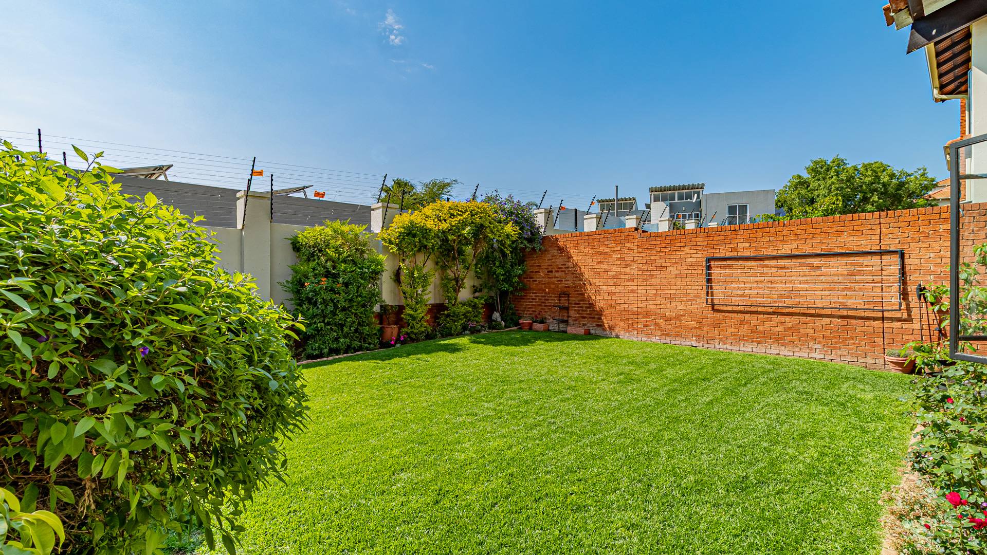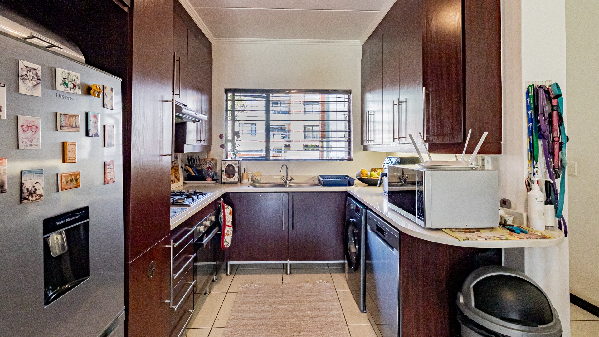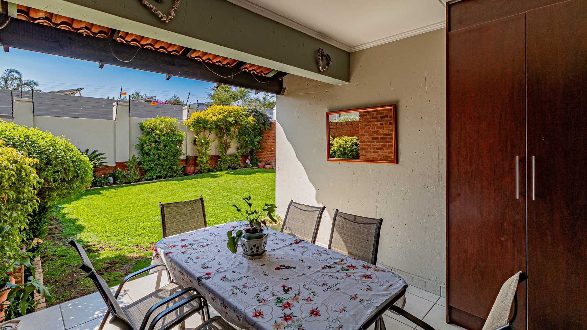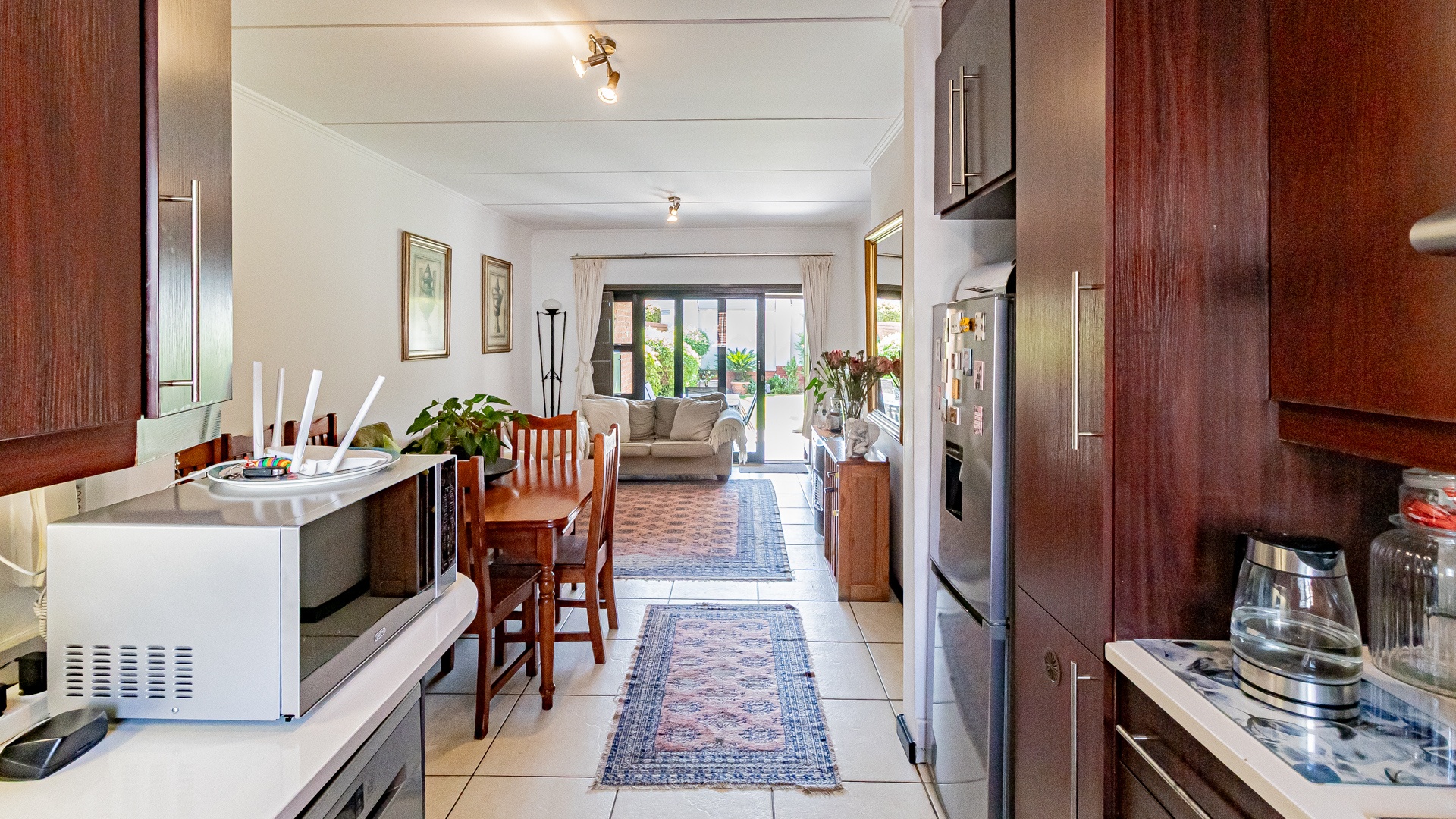 Step into this beautifully designed, light-filled three-bedroom ground-floor unit, perfectly suited for modern family living and relaxed entertaining. The galley-style kitchen is both stylish and functional, featuring Caesarstone countertops, a gas stove and oven, ample cupboard space, and room for all your appliances. The open-plan living and dining area flows effortlessly onto a covered patio and a generous, wrap-around garden, creating the ideal setting for weekend braais, kids’ playtime, or pets to roam freely and safely.
