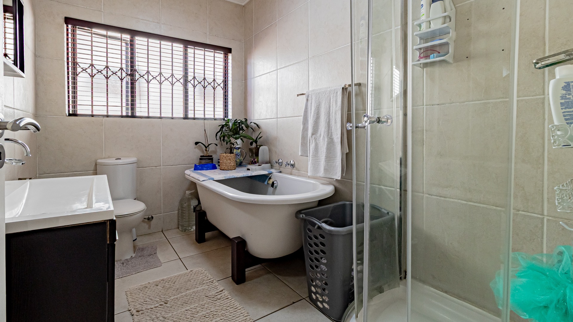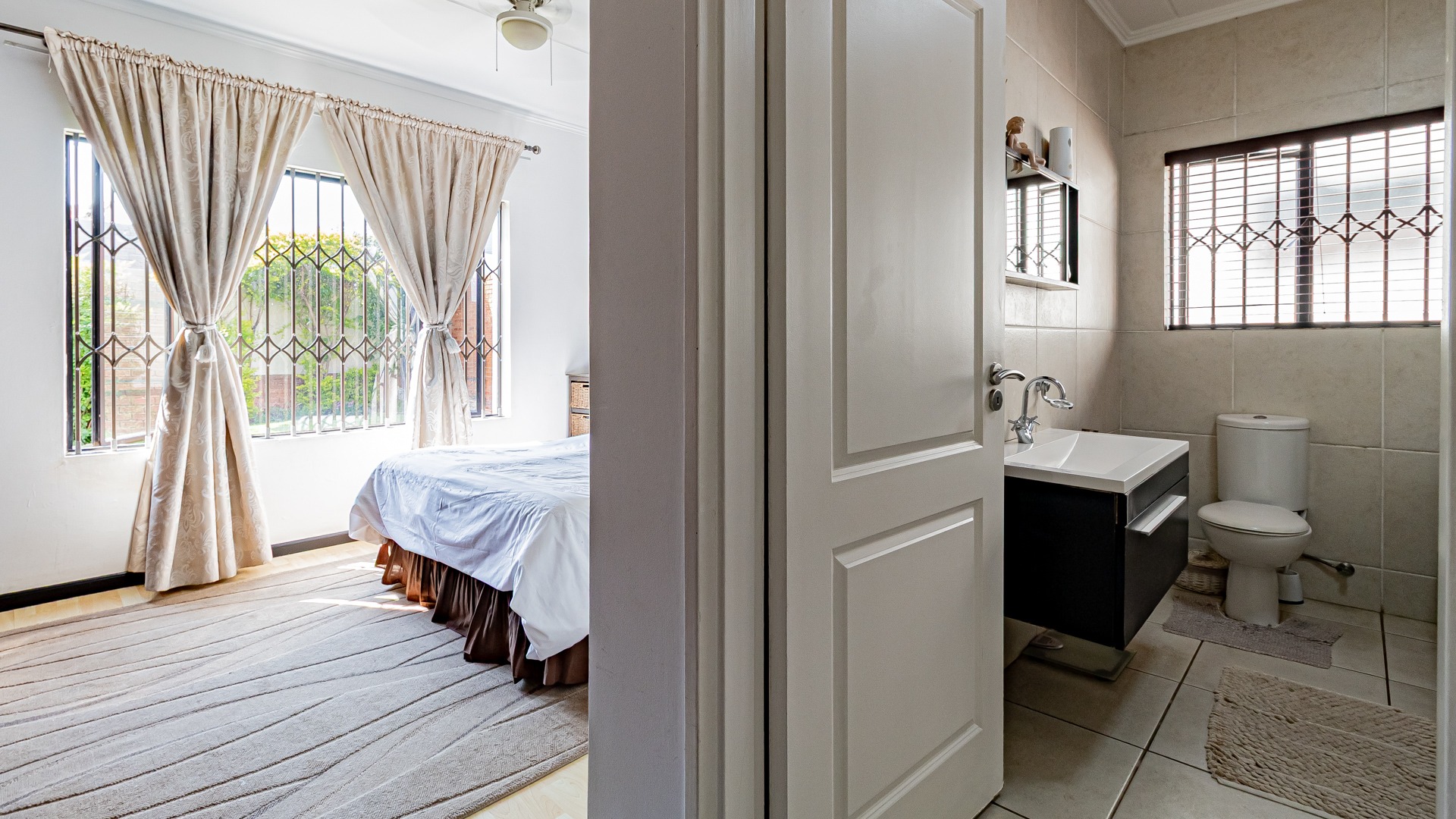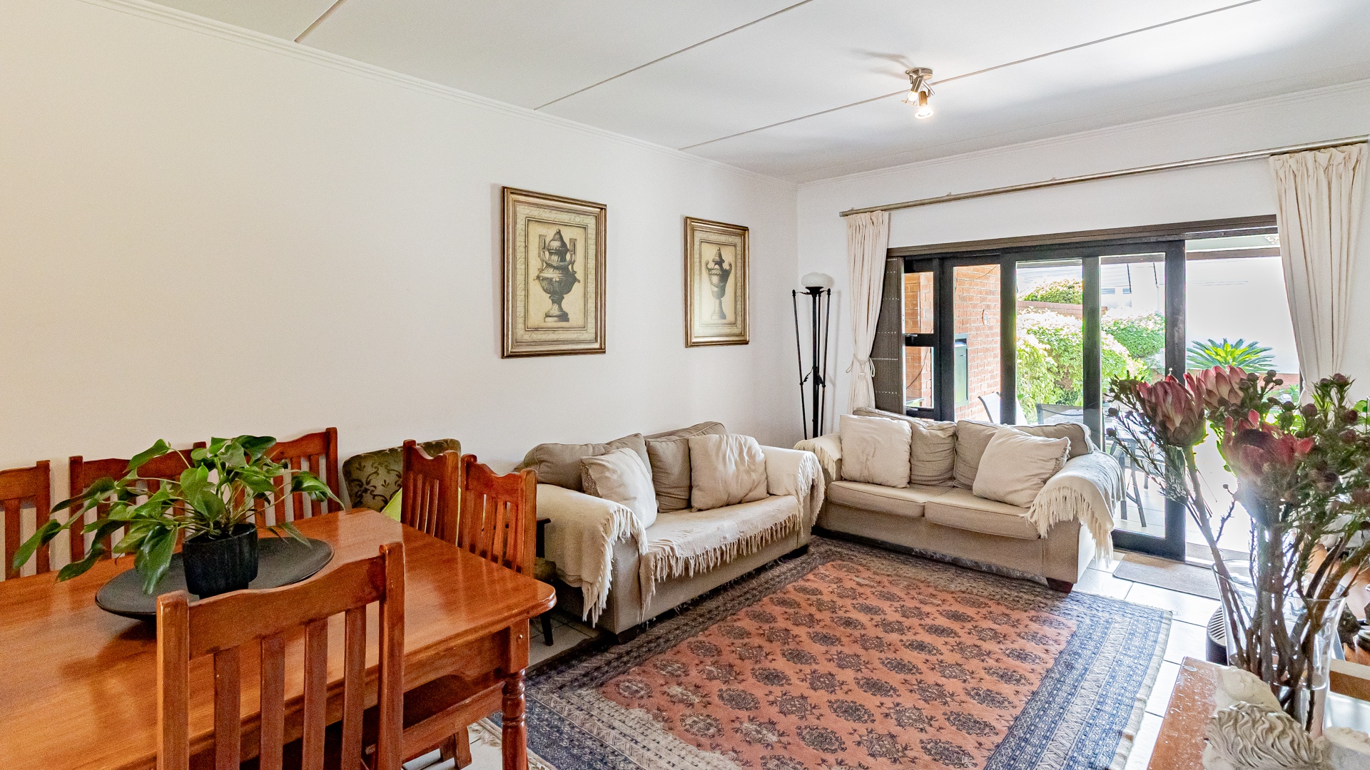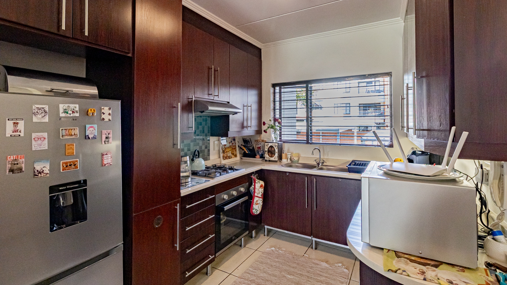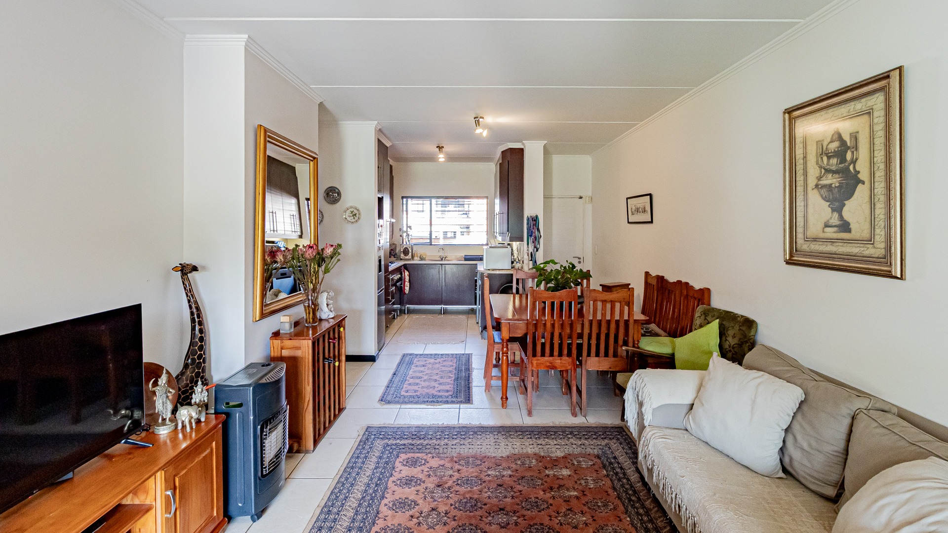 Step into this beautifully designed, light-filled three-bedroom ground-floor unit, perfectly suited for modern family living and relaxed entertaining. The galley-style kitchen is both stylish and functional, featuring Caesarstone countertops, a gas stove and oven, ample cupboard space, and room for all your appliances. The open-plan living and dining area flows effortlessly onto a covered patio and a generous, wrap-around garden, creating the ideal setting for weekend braais, kids’ playtime, or pets to roam freely and safely.