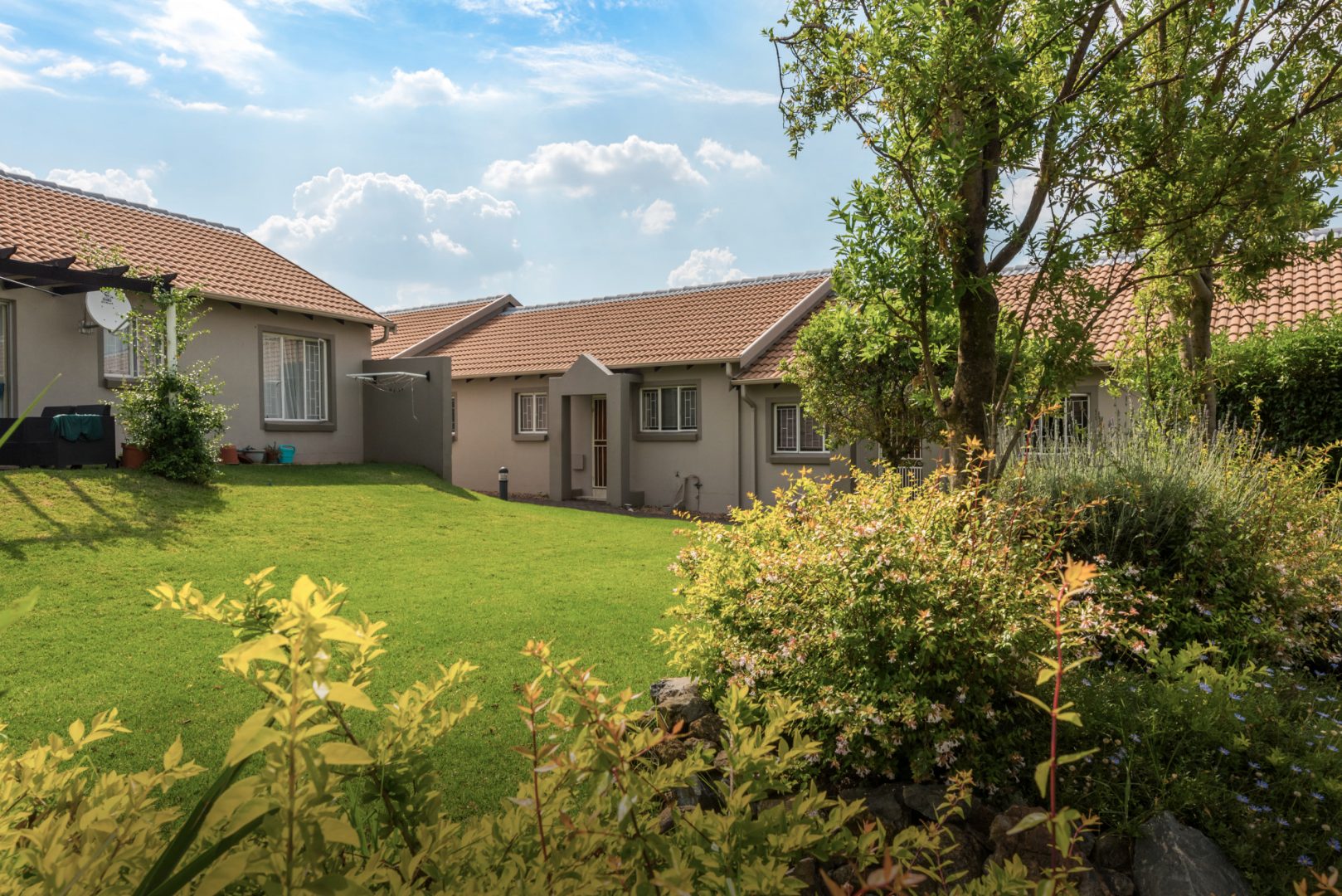 Sliding doors lead from the lounge onto an open patio overlooking the communal garden area, providing a pleasant outdoor setting to unwind or enjoy time with family and friends. 2 dedicated parkings and Aloe Ridge 1 offers residents access to a well-maintained clubhouse with a sparkling swimming pool, 24-hour guarded security and ample visitors’ parking, ensuring both lifestyle and security are well catered for.