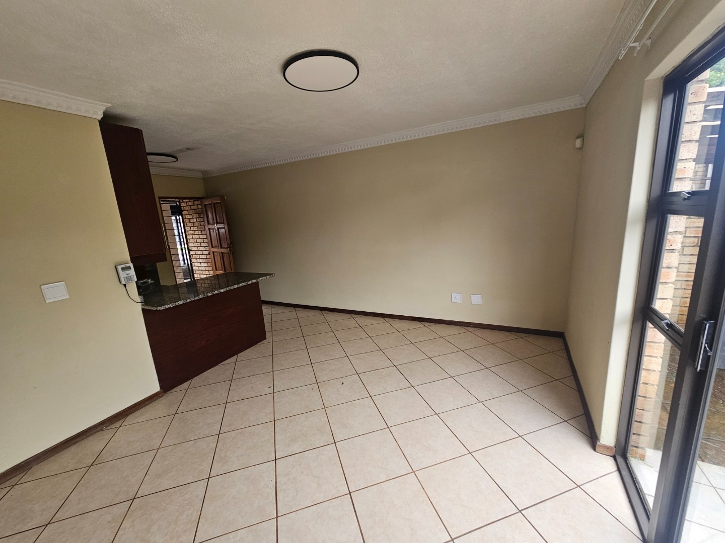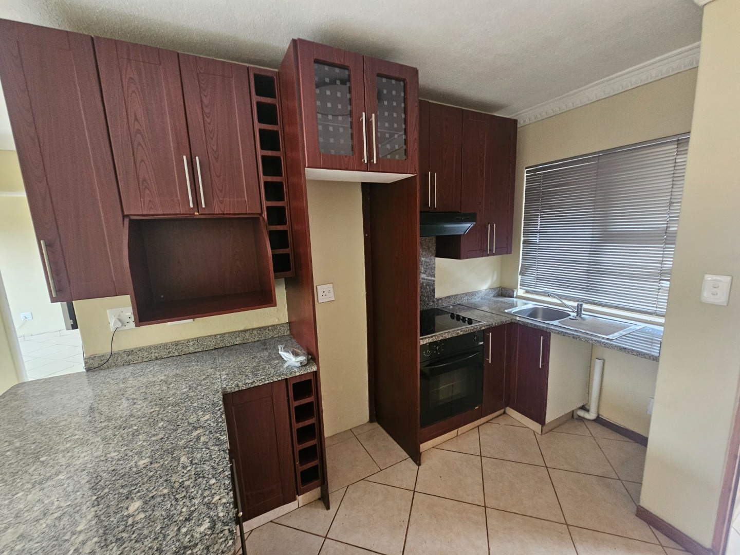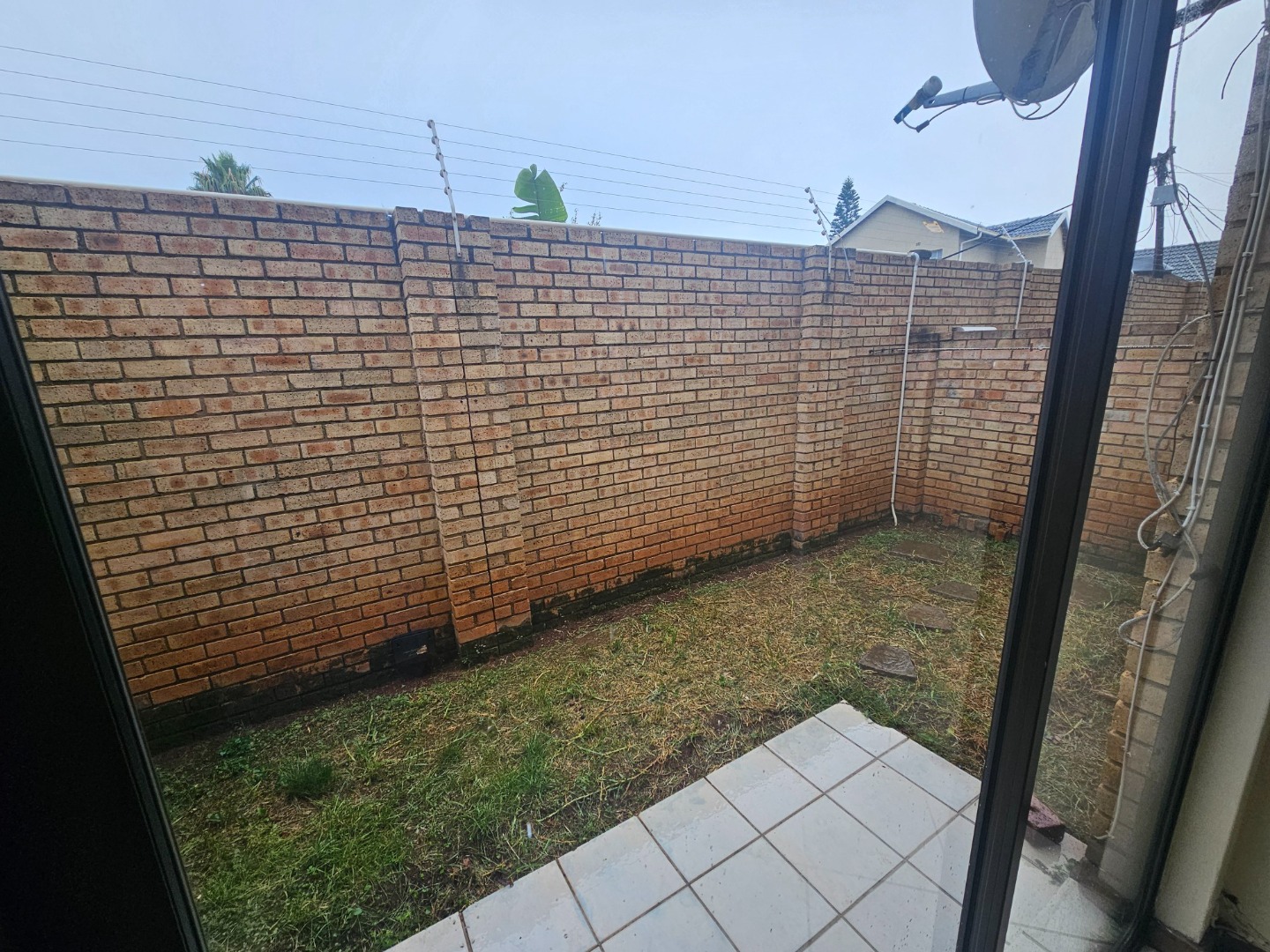 The apartment comprises two comfortable bedrooms and a modern full bathroom. Step outside to your private backyard, featuring a paved patio area and a small garden, enclosed by high brick walls topped with electric fencing for enhanced security. This outdoor space offers a tranquil retreat. The property includes two dedicated parking spaces. Residents benefit from the complex's secure environment, complemented by an alarm system within the unit and fibre connectivity.