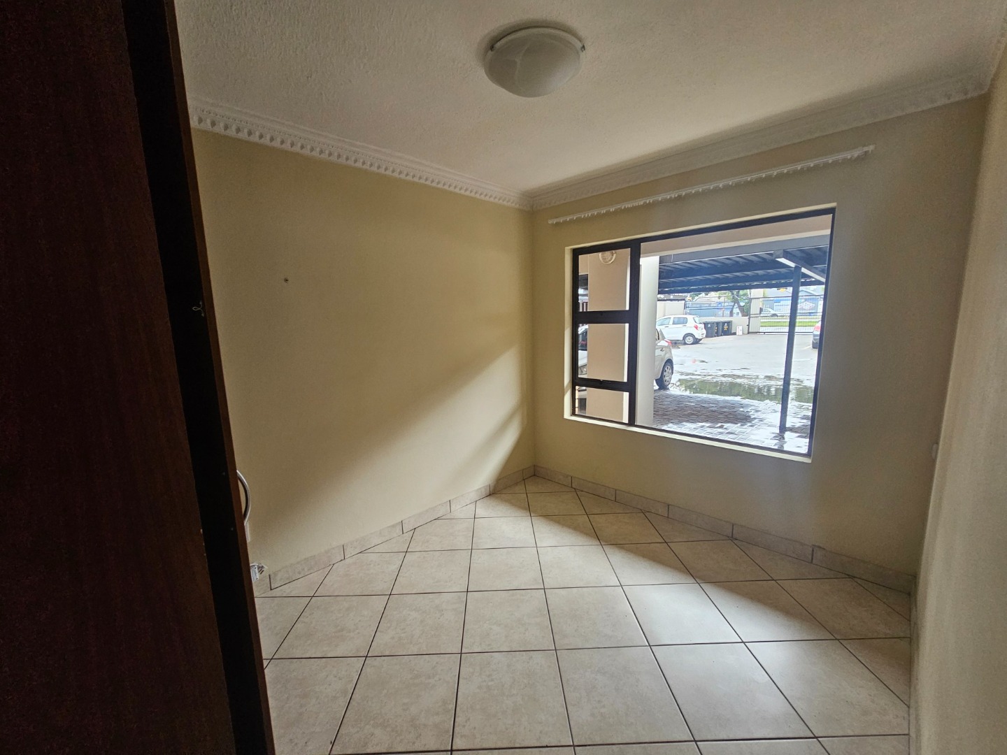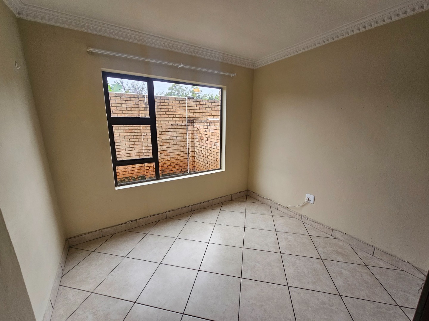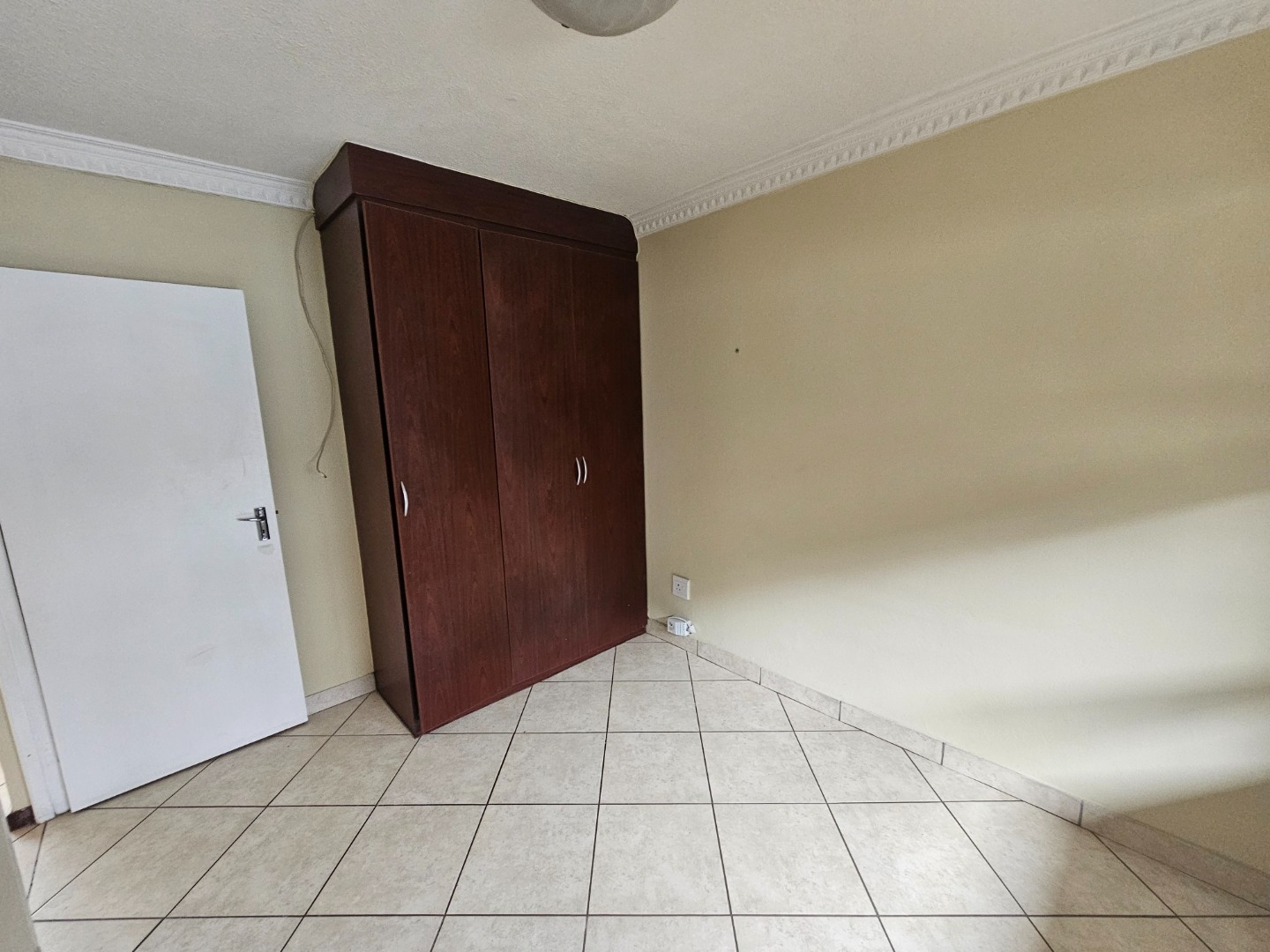 The apartment comprises two comfortable bedrooms and a modern full bathroom. Step outside to your private backyard, featuring a paved patio area and a small garden, enclosed by high brick walls topped with electric fencing for enhanced security. This outdoor space offers a tranquil retreat. The property includes two dedicated parking spaces. Residents benefit from the complex's secure environment, complemented by an alarm system within the unit and fibre connectivity.