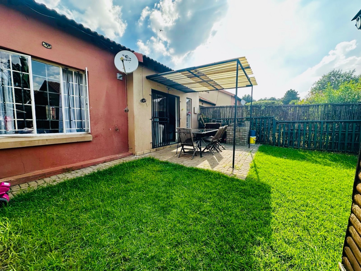Discover this charming 2-bedroom, 2-bathroom residence nestled within a secure complex in the suburban heart of Illiondale, Edenvale. The property boasts excellent kerb appeal, featuring a well-maintained paved driveway leading to ample covered parking. Lush green landscaping and mature trees enhance the welcoming exterior, while the houses present a structurally sound appearance with classic tiled roofs.