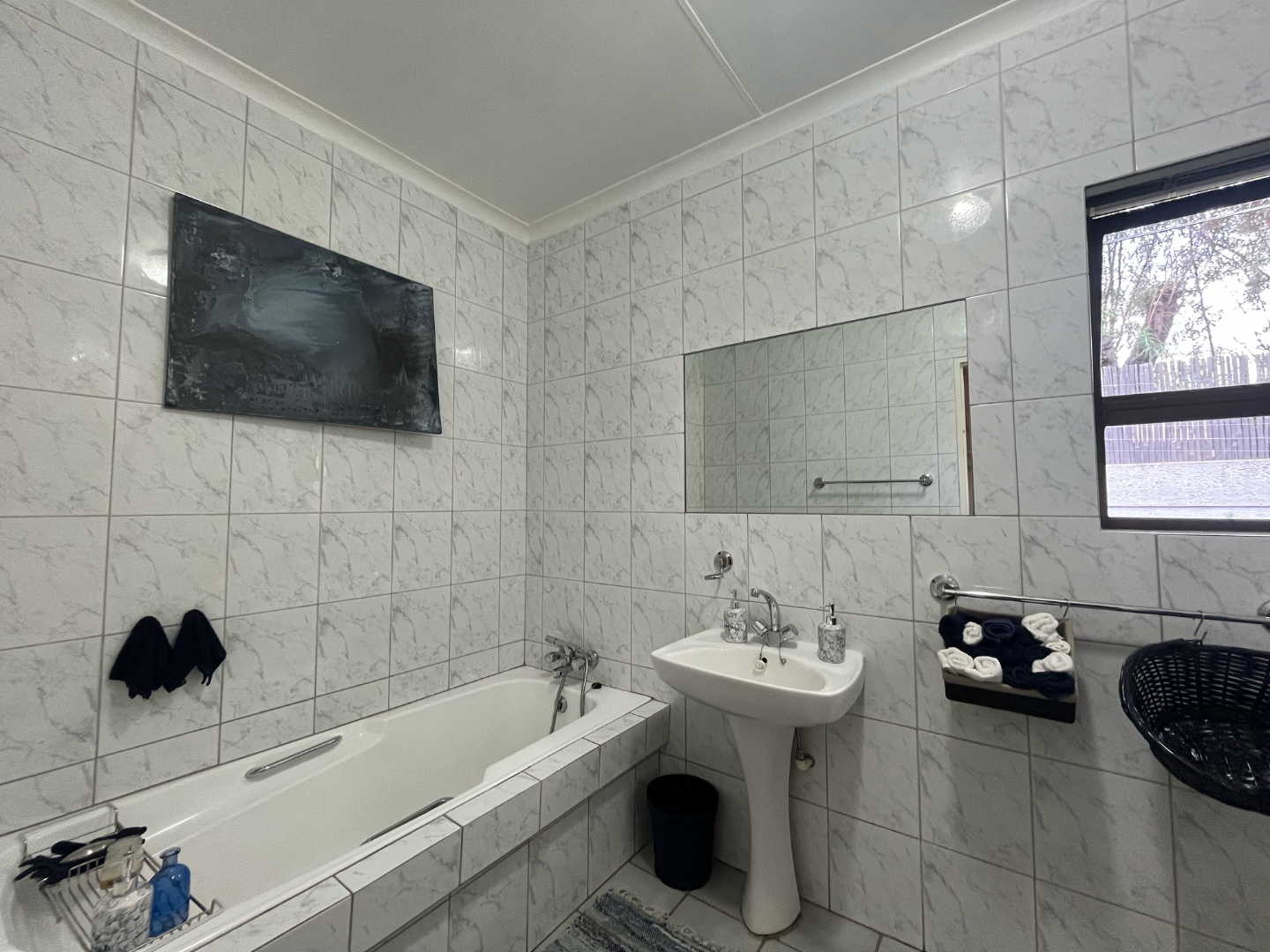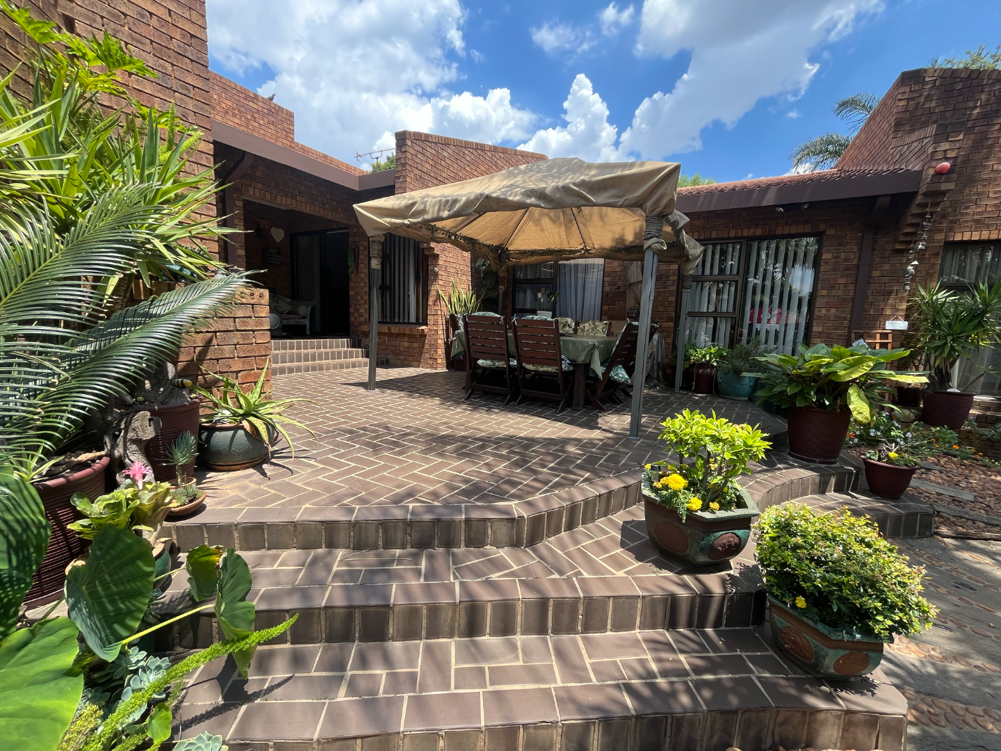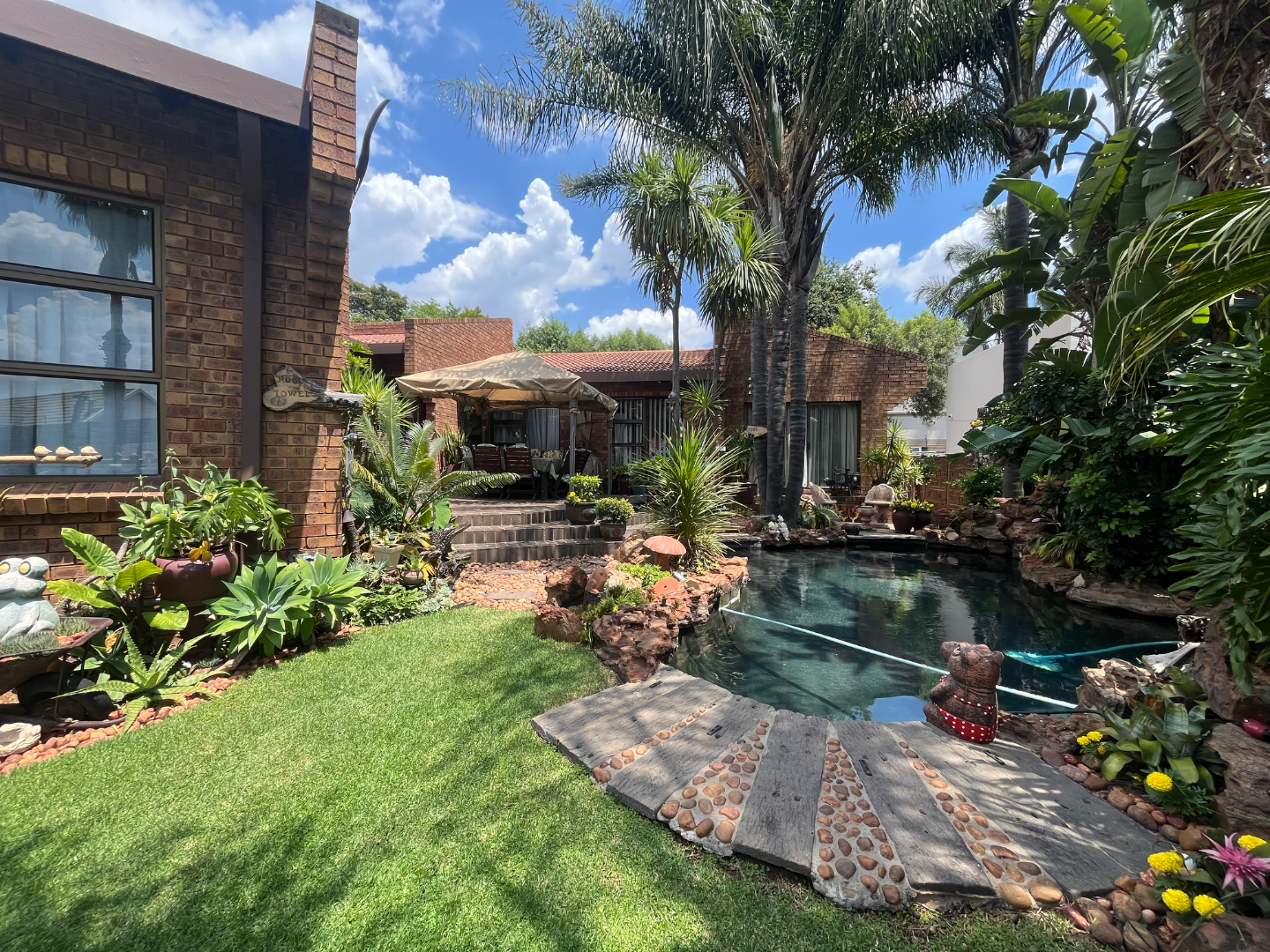 Nestled within the desirable Marais Steyn Park in Edenvale, South Africa, this charming residential property offers a blend of comfort and convenience. The home presents an inviting kerb appeal with its durable brick exterior, lush, well-maintained gardens, and mature trees, creating a private and serene environment. As a suburban and gated community, it provides a secure setting for families and individuals alike. The interior boasts a spacious and functional layout, featuring a welcoming lounge and a dedicated dining room, both adorned with neutral walls and easy-to-maintain tiled flooring. Recessed lighting enhances the ambiance, while sliding doors seamlessly connect the indoor living spaces to the expansive outdoor areas, promoting an effortless indoor-outdoor lifestyle. The well-appointed kitchen is ready to cater to all culinary needs. This residence offers four comfortable bedrooms and three bathrooms, including two en-suite bathrooms for added privacy and luxury. A convenient guest toilet is also available. The property further benefits from staff quarters, providing additional utility and flexibility. Outdoor living is a highlight, with a private swimming pool featuring natural rock accents, perfect for relaxation and entertaining. Multiple covered patio areas, complete with intricate brick paving, offer ideal spots for alfresco dining and social gatherings amidst the vibrant, landscaped garden. Practical amenities include three garages, ample parking for two vehicles, and the property is pet-friendly, accommodating furry family members. Security is paramount, with an alarm system and electric fencing ensuring peace of mind. The home is also equipped with fibre connectivity, catering to modern communication needs. Key Features: * 4 Bedrooms, 3 Bathrooms (2 En-suite) * Spacious Lounge and Dining Room * Private Swimming Pool with Rock Features * Multiple Covered Patio Areas * Lush, Landscaped Garden * 3 Garages, 2 Parking Spaces * Staff Quarters * Alarm System & Electric Fencing * Fibre Connectivity * Pet-Friendly