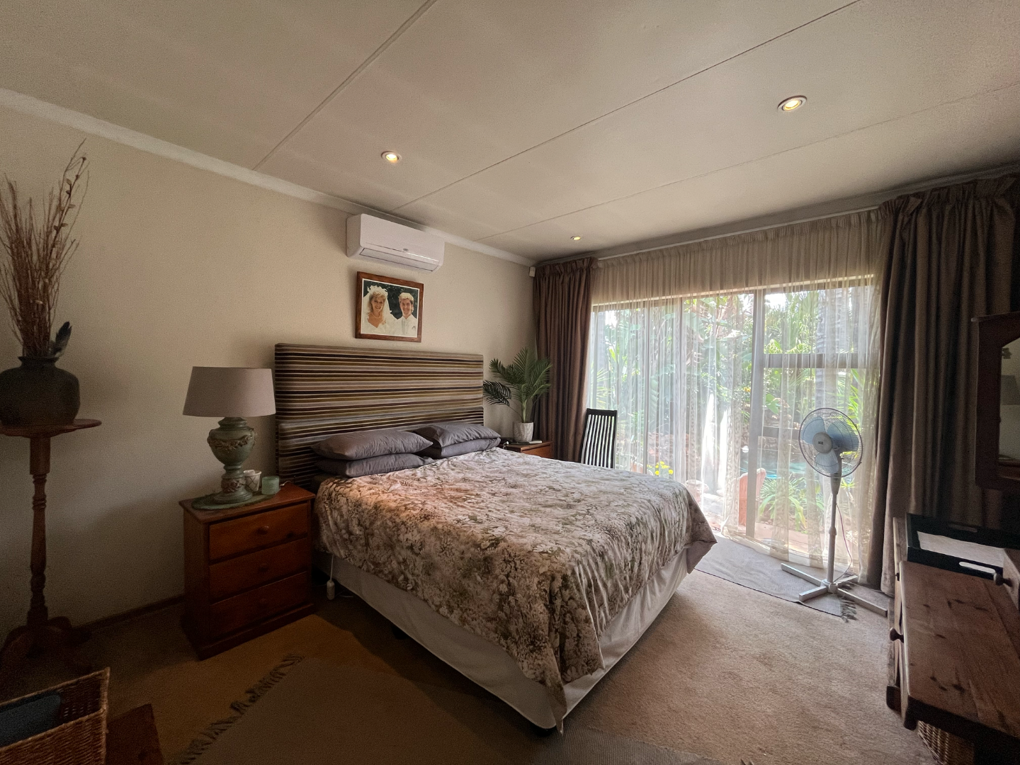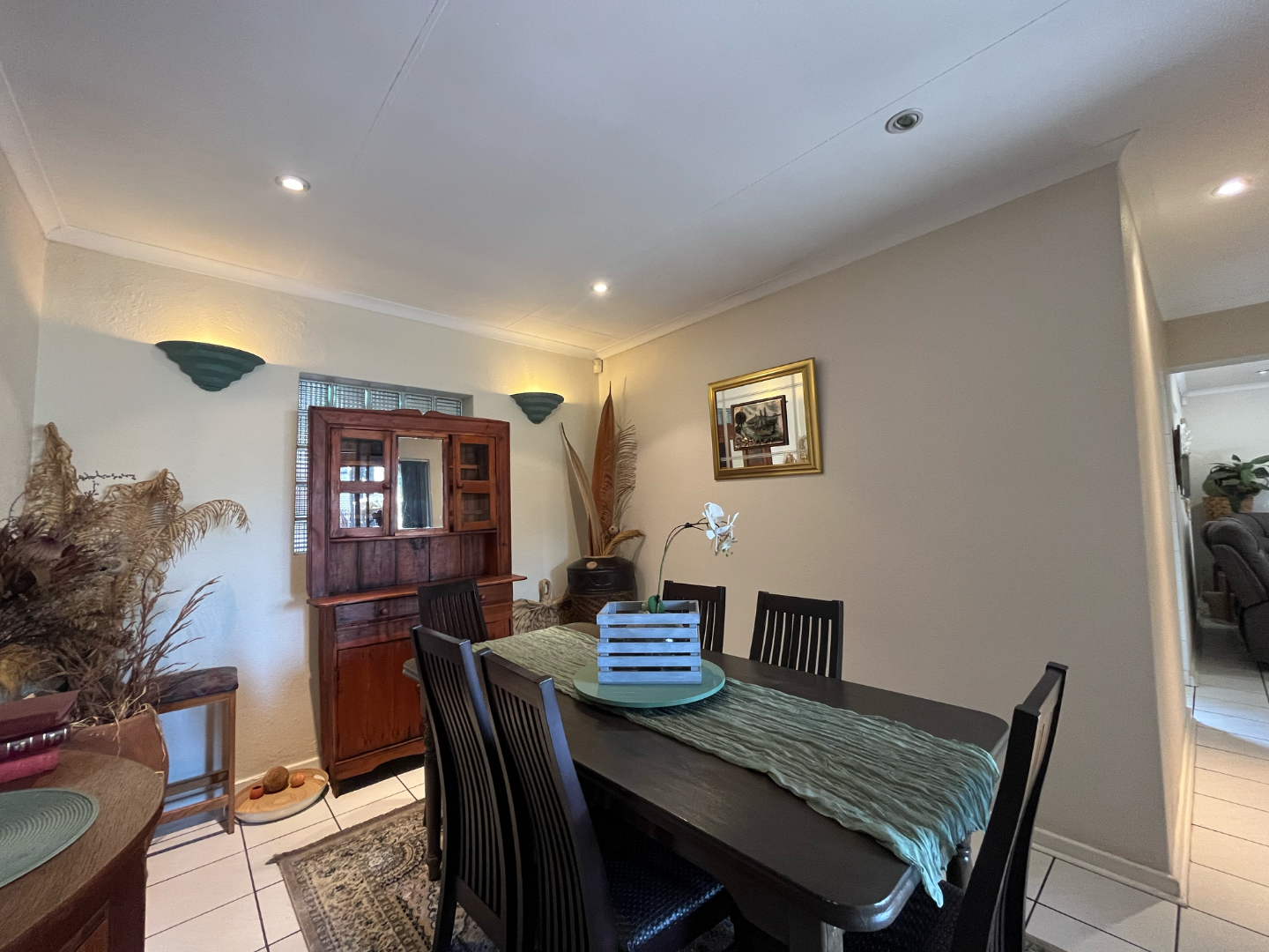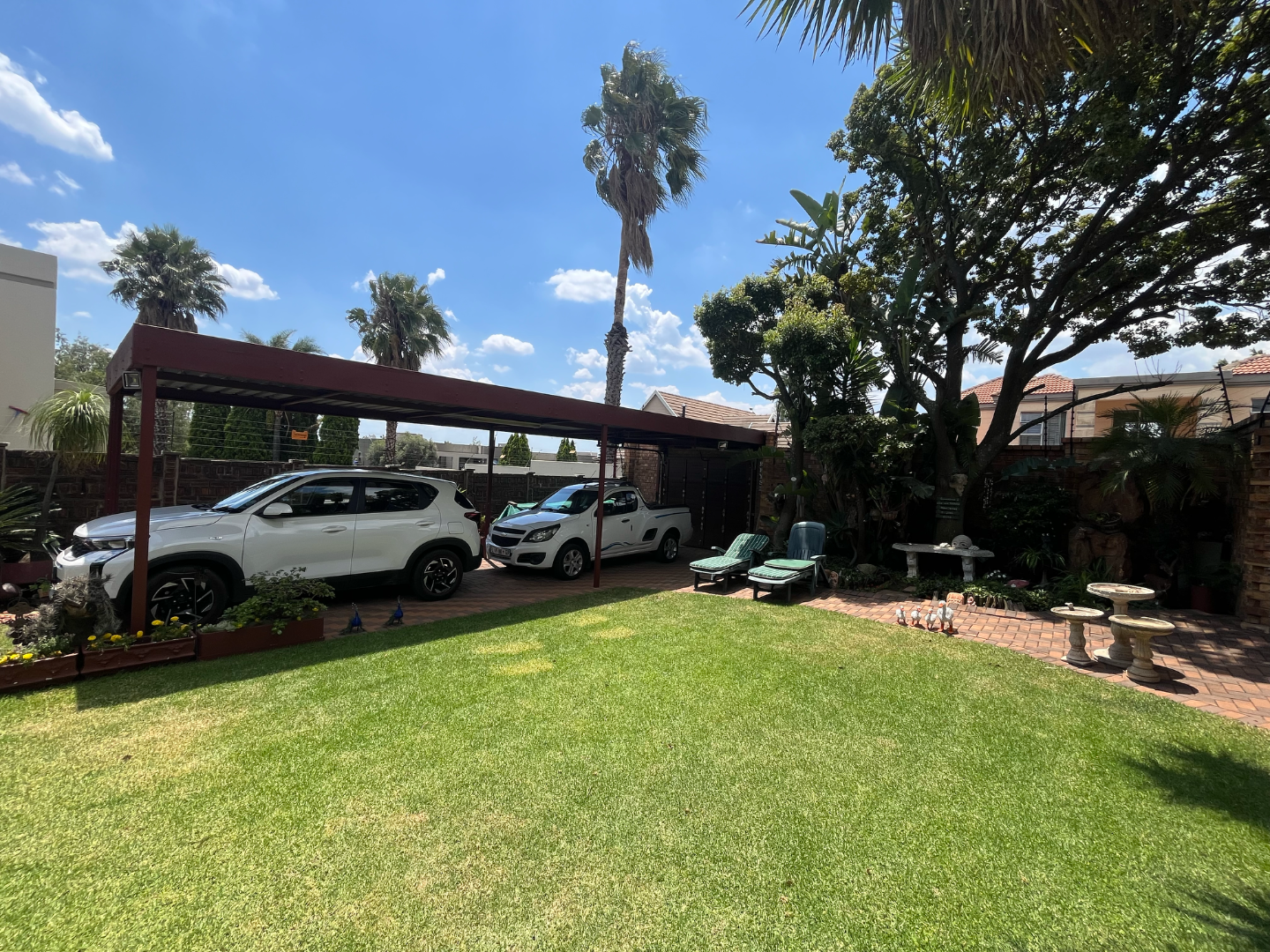 Nestled within the desirable Marais Steyn Park in Edenvale, South Africa, this charming residential property offers a blend of comfort and convenience. The home presents an inviting kerb appeal with its durable brick exterior, lush, well-maintained gardens, and mature trees, creating a private and serene environment. As a suburban and gated community, it provides a secure setting for families and individuals alike. The interior boasts a spacious and functional layout, featuring a welcoming lounge and a dedicated dining room, both adorned with neutral walls and easy-to-maintain tiled flooring. Recessed lighting enhances the ambiance, while sliding doors seamlessly connect the indoor living spaces to the expansive outdoor areas, promoting an effortless indoor-outdoor lifestyle. The well-appointed kitchen is ready to cater to all culinary needs. This residence offers four comfortable bedrooms and three bathrooms, including two en-suite bathrooms for added privacy and luxury. A convenient guest toilet is also available. The property further benefits from staff quarters, providing additional utility and flexibility. Outdoor living is a highlight, with a private swimming pool featuring natural rock accents, perfect for relaxation and entertaining. Multiple covered patio areas, complete with intricate brick paving, offer ideal spots for alfresco dining and social gatherings amidst the vibrant, landscaped garden. Practical amenities include three garages, ample parking for two vehicles, and the property is pet-friendly, accommodating furry family members. Security is paramount, with an alarm system and electric fencing ensuring peace of mind. The home is also equipped with fibre connectivity, catering to modern communication needs. Key Features: * 4 Bedrooms, 3 Bathrooms (2 En-suite) * Spacious Lounge and Dining Room * Private Swimming Pool with Rock Features * Multiple Covered Patio Areas * Lush, Landscaped Garden * 3 Garages, 2 Parking Spaces * Staff Quarters * Alarm System & Electric Fencing * Fibre Connectivity * Pet-Friendly
