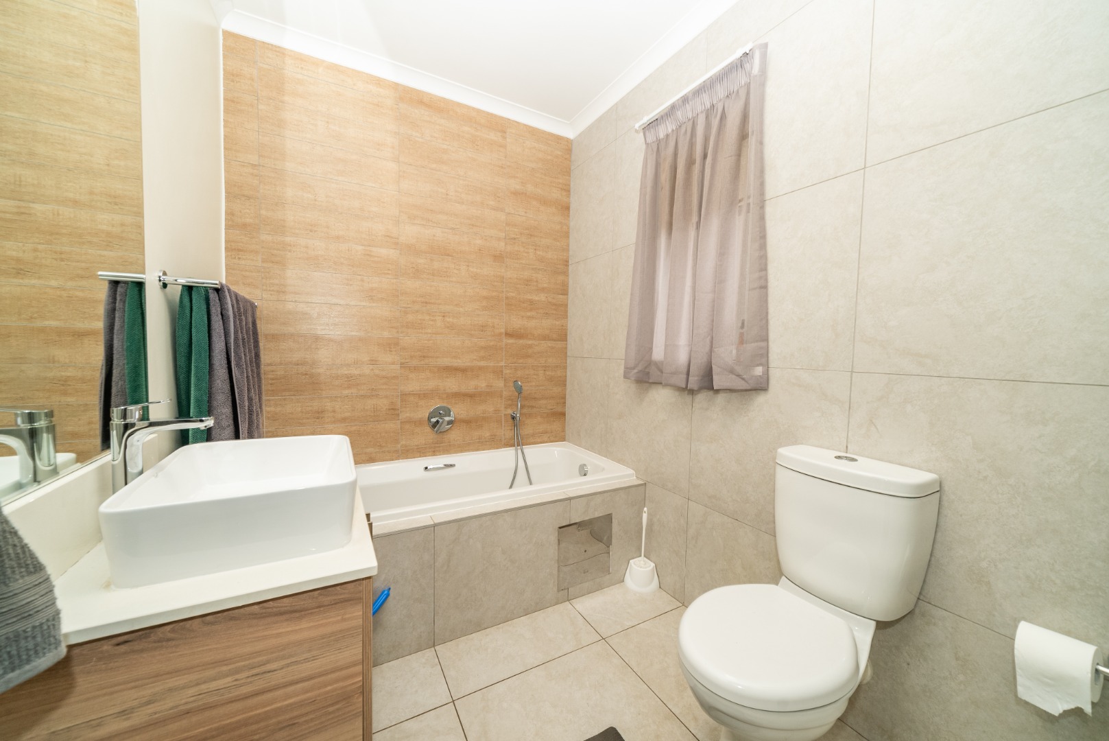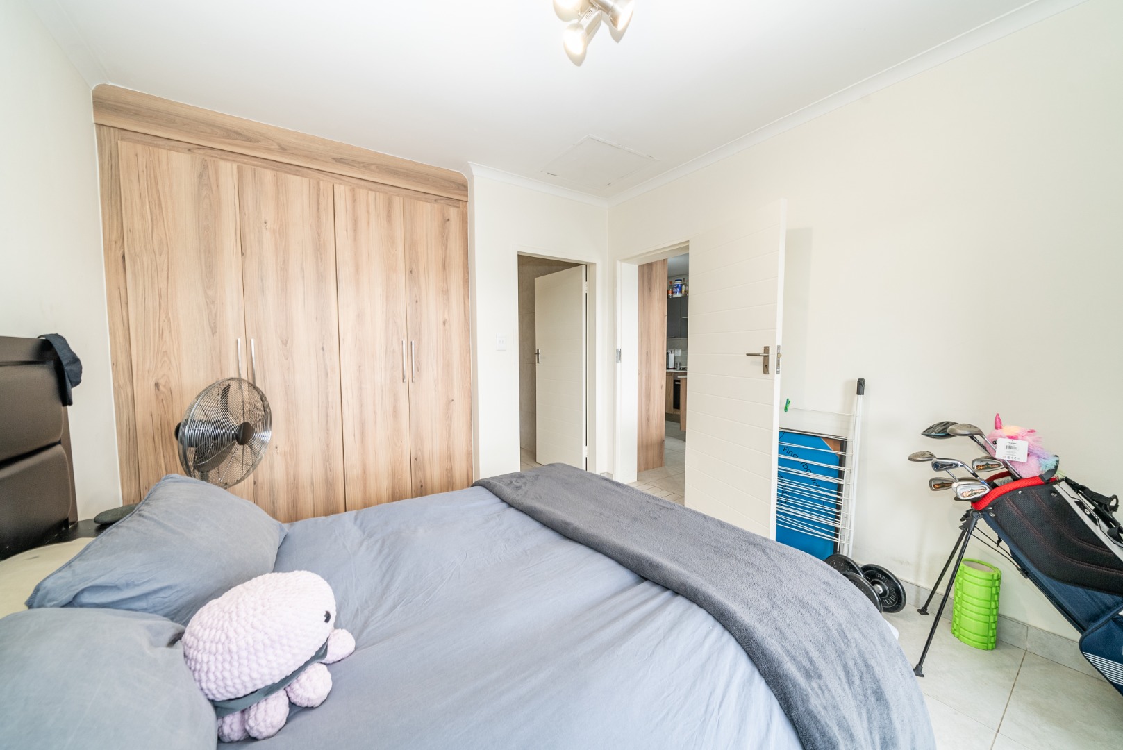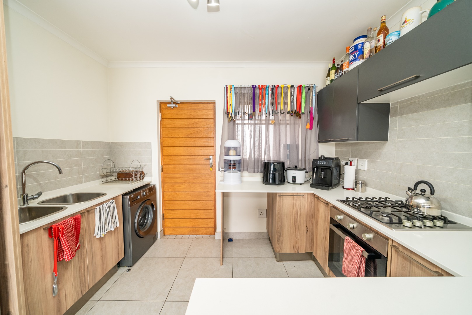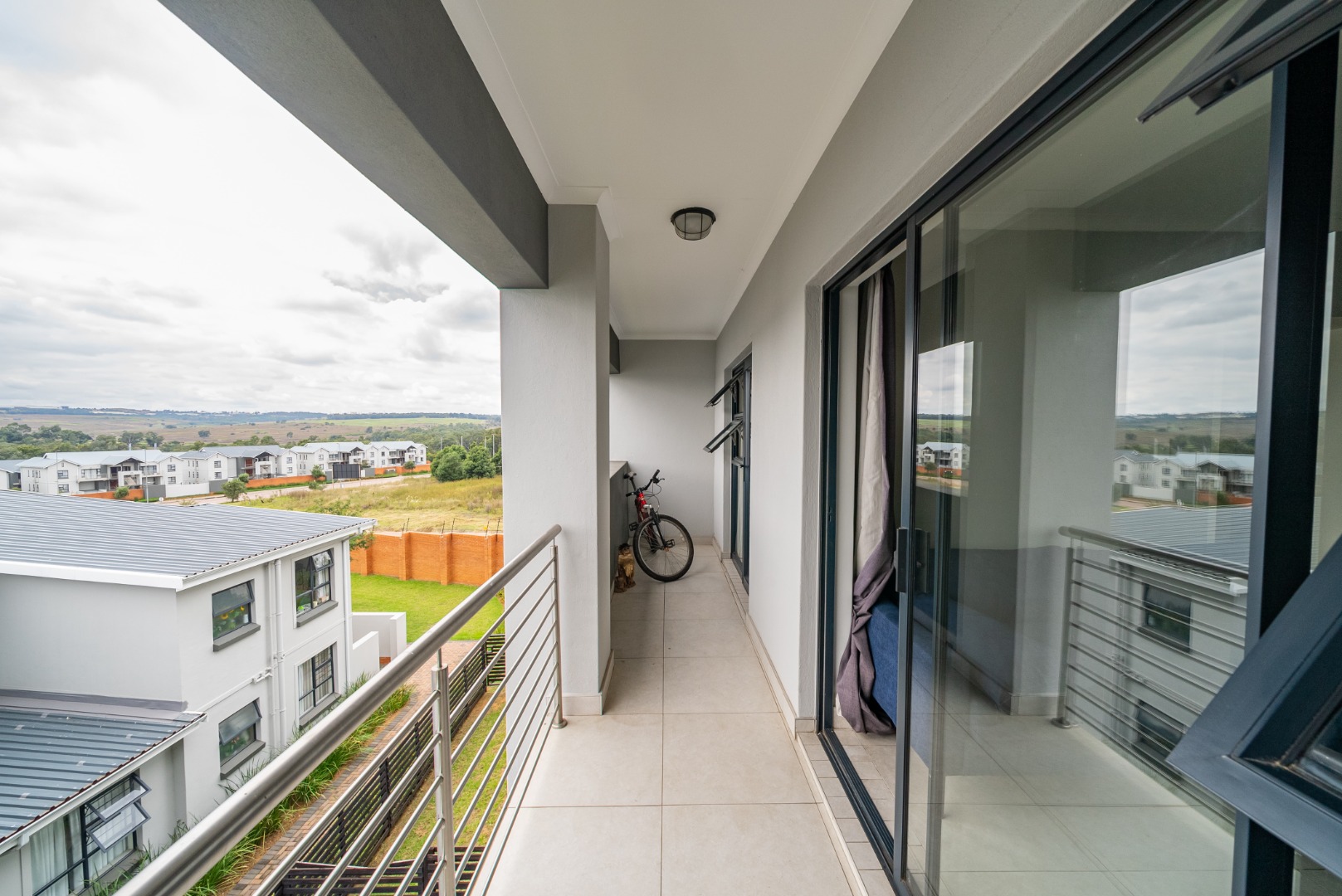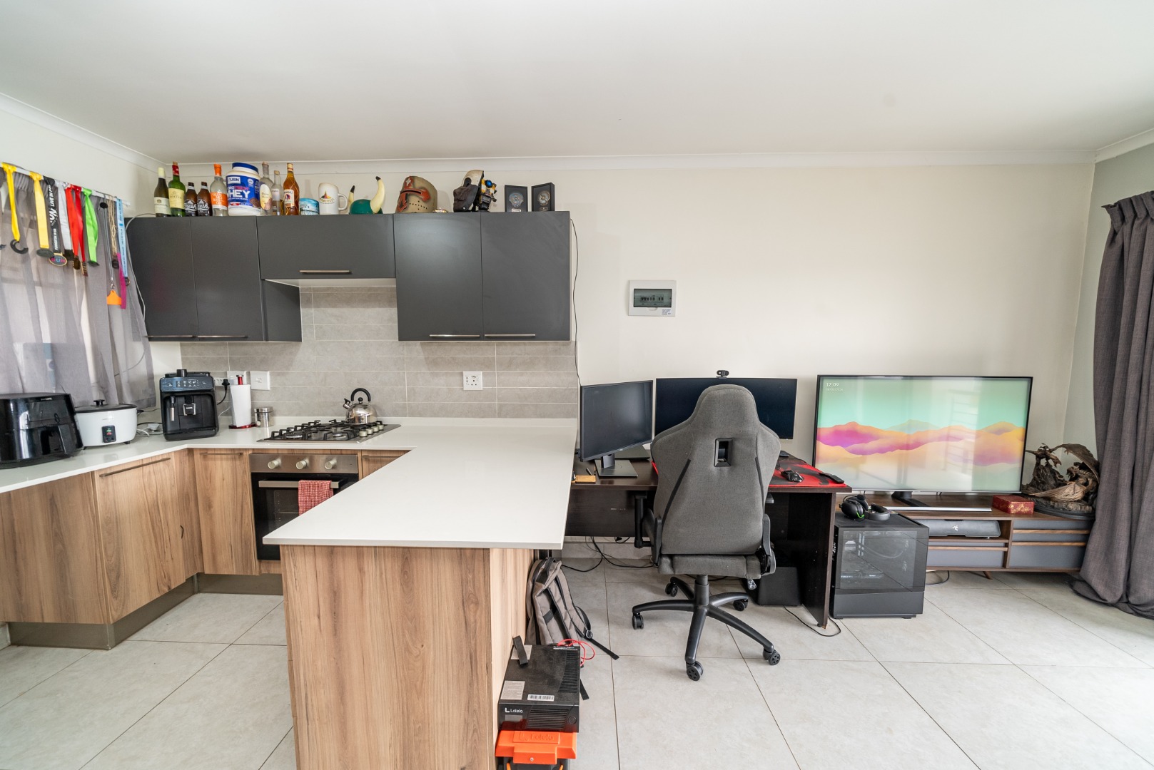 The apartment features a well-designed open-plan layout, seamlessly connecting the lounge and kitchen areas, creating a spacious and functional environment. The modern kitchen is equipped for everyday living, while the lounge provides direct access to a private balcony through elegant sliding doors. This outdoor space is perfect for relaxed entertaining. Practical amenities include a gas geyser for energy efficiency and fibre readiness, ensuring high-speed internet connectivity.
