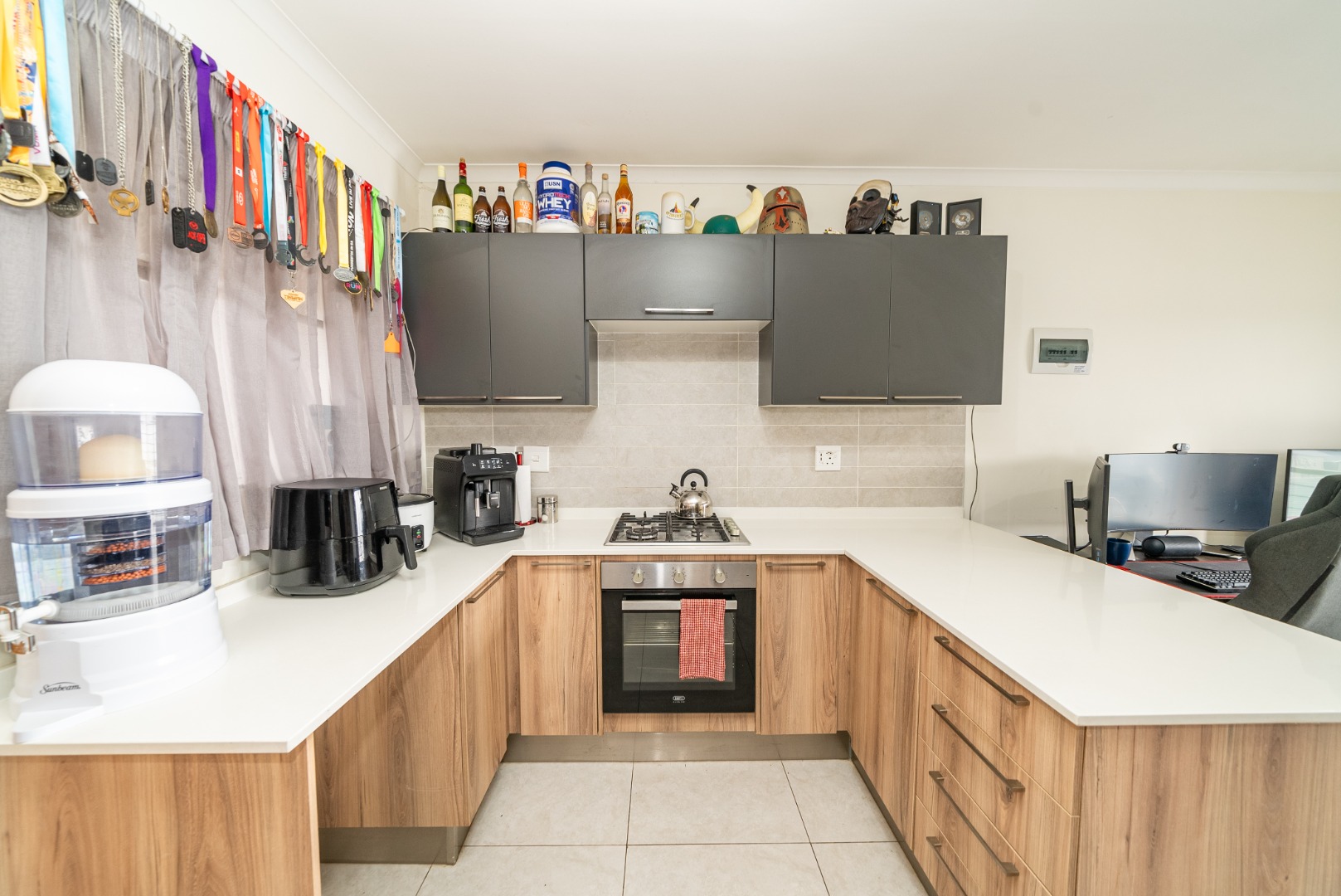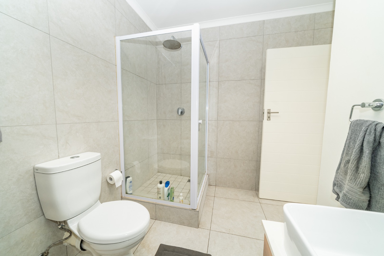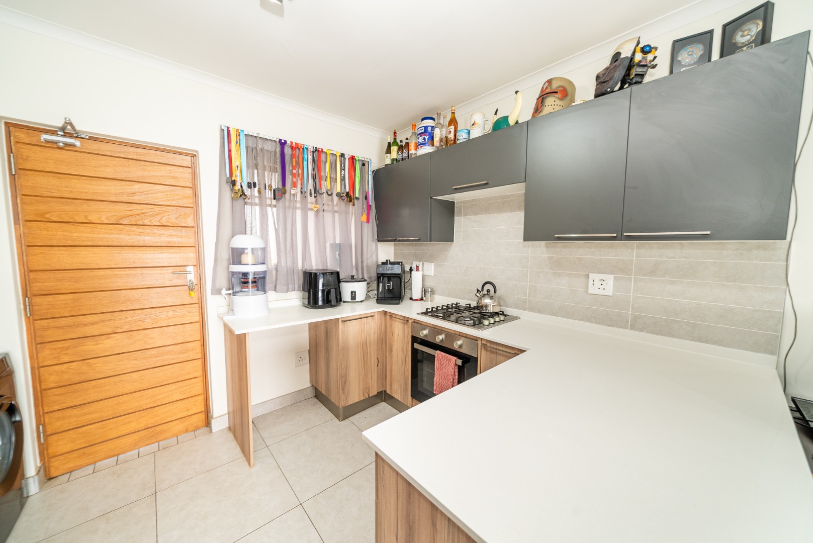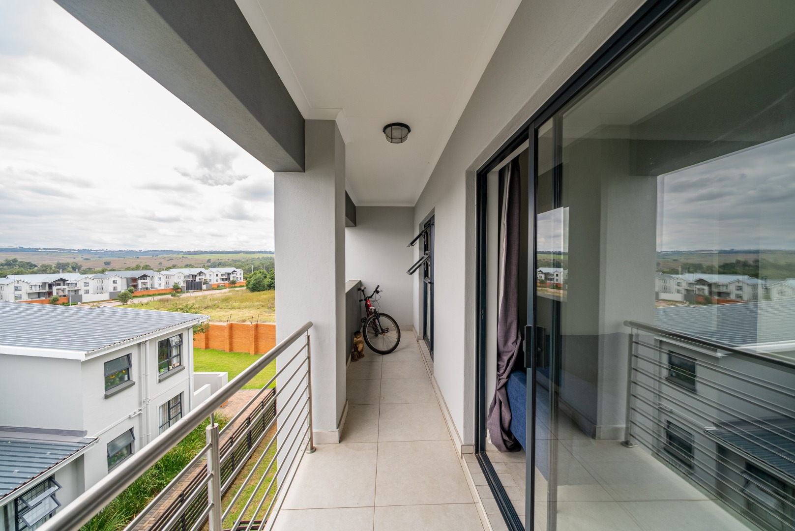 The apartment features a well-designed open-plan layout, seamlessly connecting the lounge and kitchen areas, creating a spacious and functional environment. The modern kitchen is equipped for everyday living, while the lounge provides direct access to a private balcony through elegant sliding doors. This outdoor space is perfect for relaxed entertaining. Practical amenities include a gas geyser for energy efficiency and fibre readiness, ensuring high-speed internet connectivity.