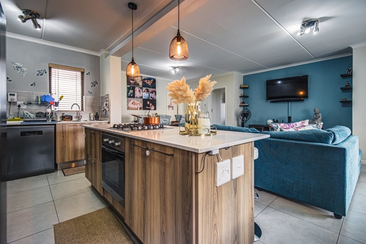 Contemporary open-plan lounge and dining room leading to a covered patio, private established garden, ideal for families and year round entertaining. The modern kitchen is complemented by centralized gas connections, a gas hob and space for 2 undercounter appliances