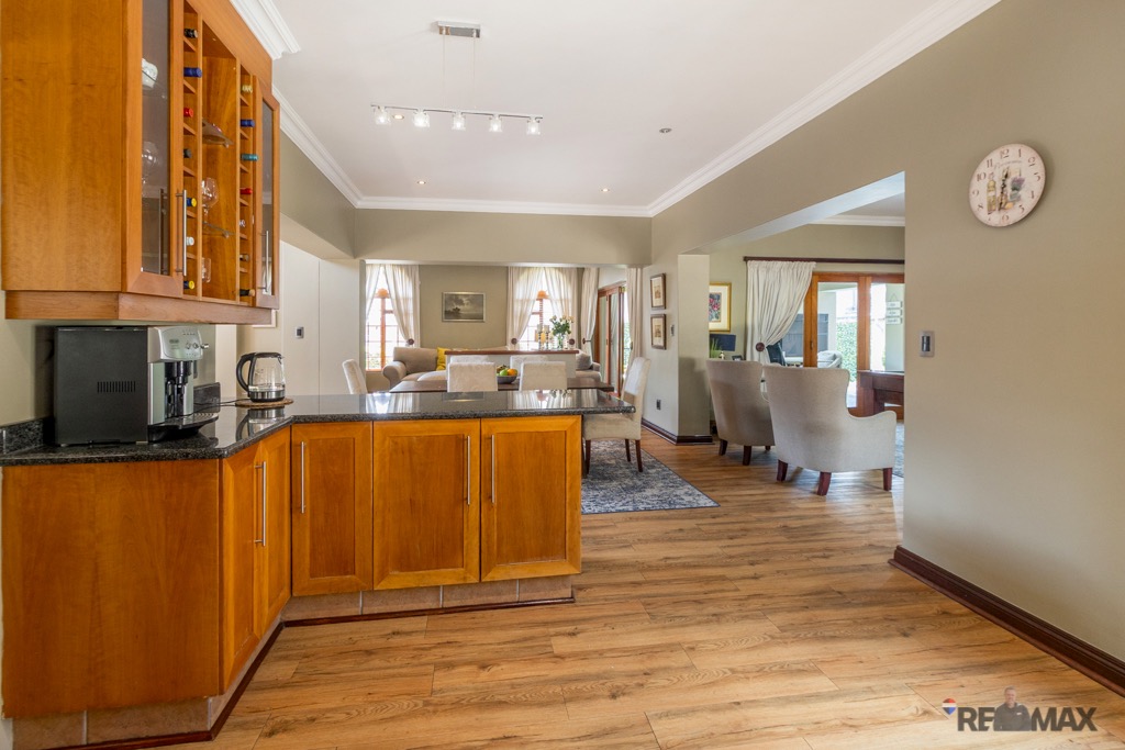 Externally, the property features a Double garage, offering secure parking and additional storage solutions. Furthermore, the provision of four parking spaces in total, including the garage, ensures ample accommodation for vehicles for both residents and visitors. The substantial 828 sqm erf represents a significant asset, presenting a remarkable opportunity for the creation of a bespoke outdoor environment. While currently offering a developed well maintained landscaped garden, a private recreational zone, and an elegant outdoor entertaining space, tailored to individual preferences and enhancing the overall lifestyle offering.