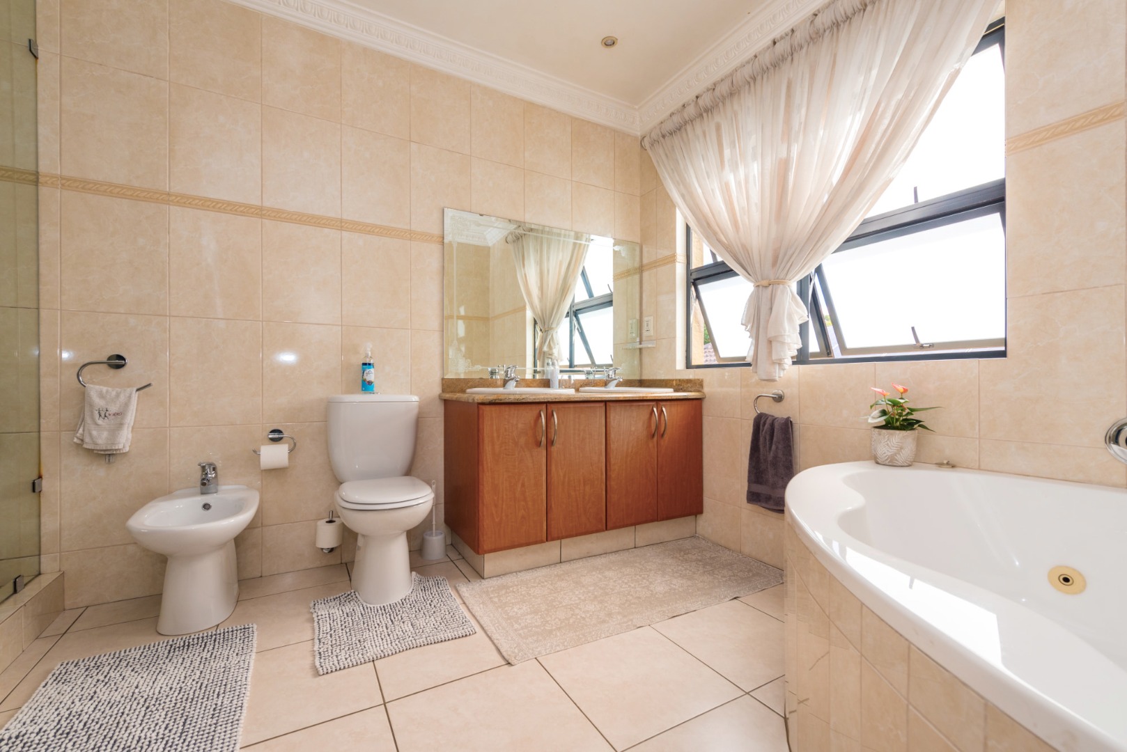 Additional features include a double automated garage, ample driveway parking, upgraded aluminium windows throughout, a storeroom and an outside staff toilet. The home is also fitted with a 5kVA GoSOLR solar system on a monthly rental of R1,800, providing improved energy efficiency and reduced reliance on the grid.
