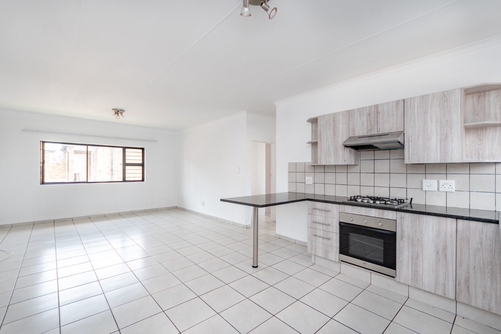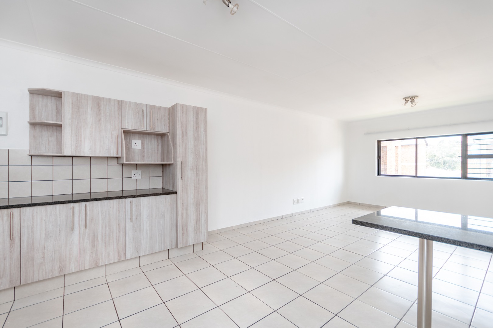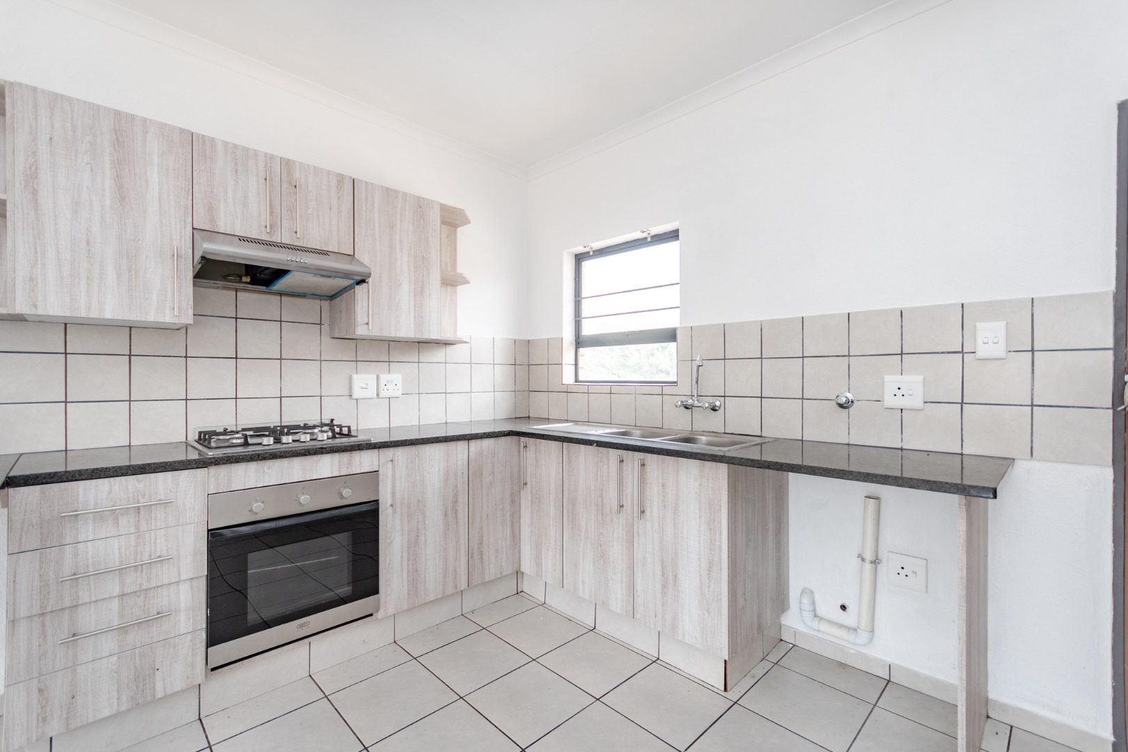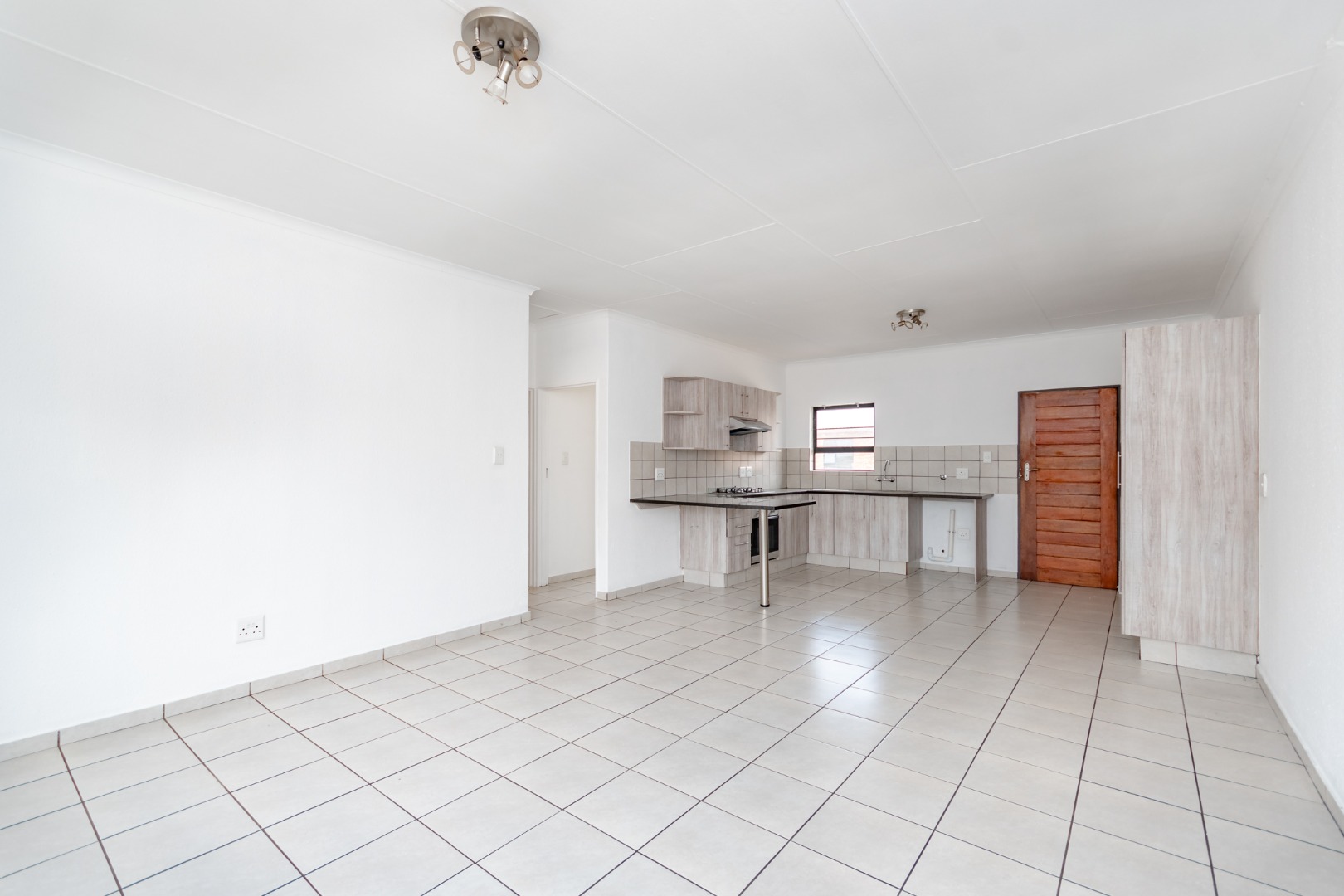 The unit comes equipped with an integrated gas hob, oven, and extractor fan, complemented by a convenient breakfast bar,solar geyser. Throughout the unit, clean white walls and light-colored tiled flooring create a bright and airy atmosphere, enhanced by ample natural light from well-placed windows.