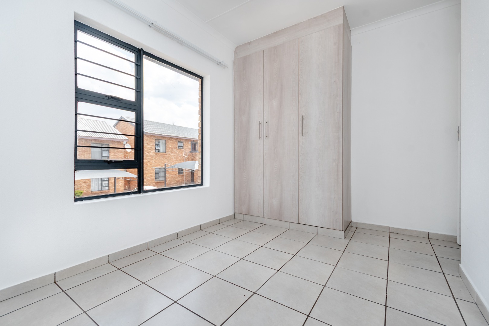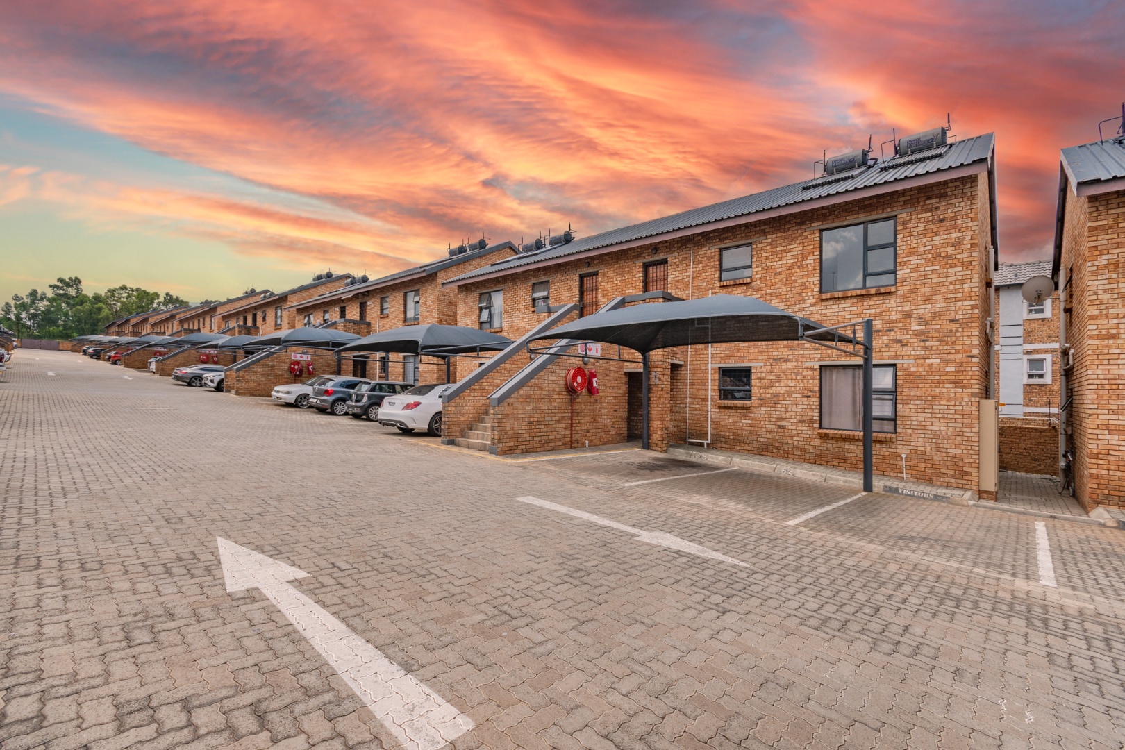 Both bedrooms are designed with a focus on comfort, offering tiled floors and fresh white walls. Large windows ensure good natural light, while security bars provide peace of mind. The full bathroom is functional and well-appointed. Outside, the complex provides practical amenities including covered carports and paved parking areas, ensuring secure accommodation for one vehicle. The brick construction of the units offers durability and a neat kerb appeal.