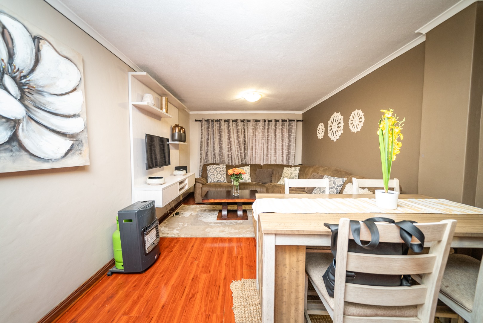 Discover modern living in this inviting 2-bedroom, 1-bathroom residence located within a secure estate in Castleview, Germiston. This property offers a harmonious blend of comfort and functionality, ideal for individuals or small families seeking a well-maintained home. The interior boasts an appealing open-plan layout, seamlessly connecting the living, dining, and kitchen areas. Warm wood-look flooring extends throughout, complementing the neutral wall colours and creating a welcoming atmosphere.