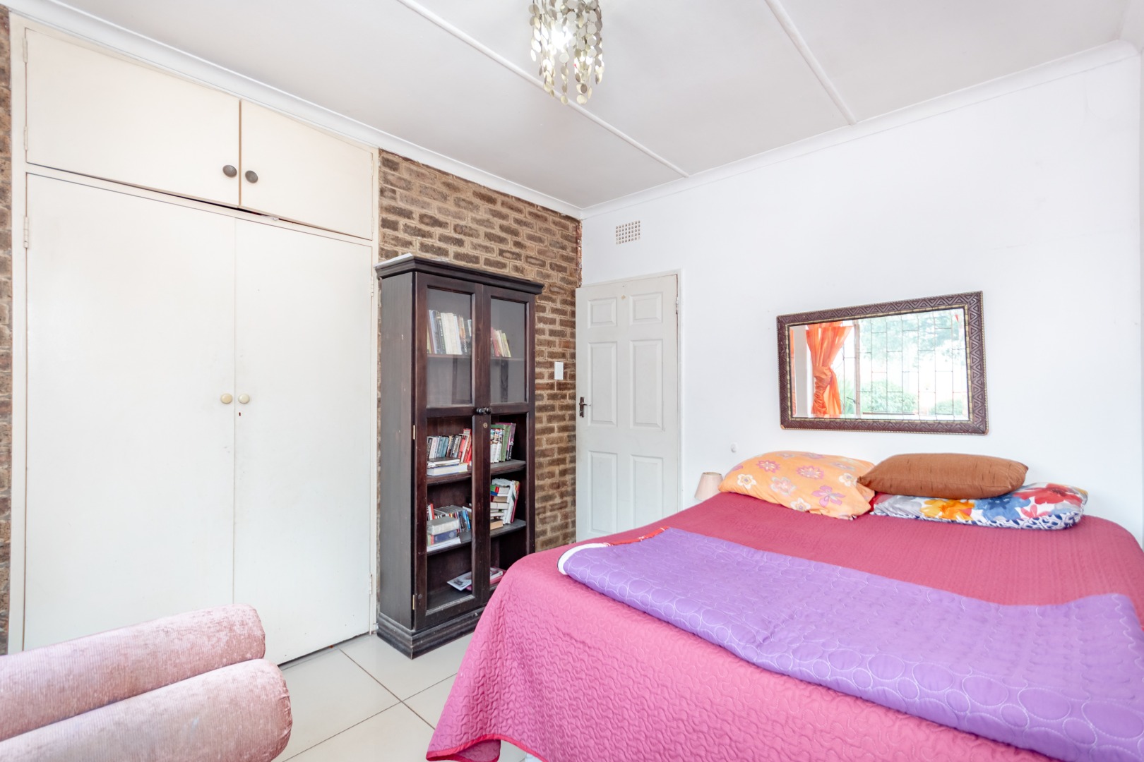 This home comprises three comfortable bedrooms, each featuring tiled flooring and bright white walls, ready to be transformed into personal sanctuaries. The large windows in the bedrooms, fitted with security bars, ensure both natural light and peace of mind, with one offering pleasant views of the garden and pool area. A single well-appointed bathroom serves the household.
