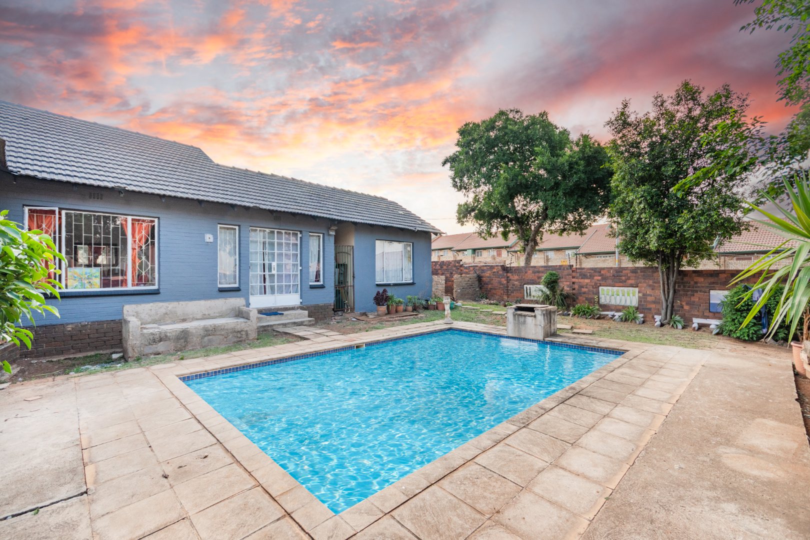Discover this spacious residential property located in the established suburban area of Dinwiddie, Germiston. Set on a generous 1013 sqm erf, this home presents a fantastic opportunity for those seeking a comfortable family lifestyle with room for personalisation. The property features a charming blue-painted exterior, hinting at its potential, and offers a welcoming presence from the street.