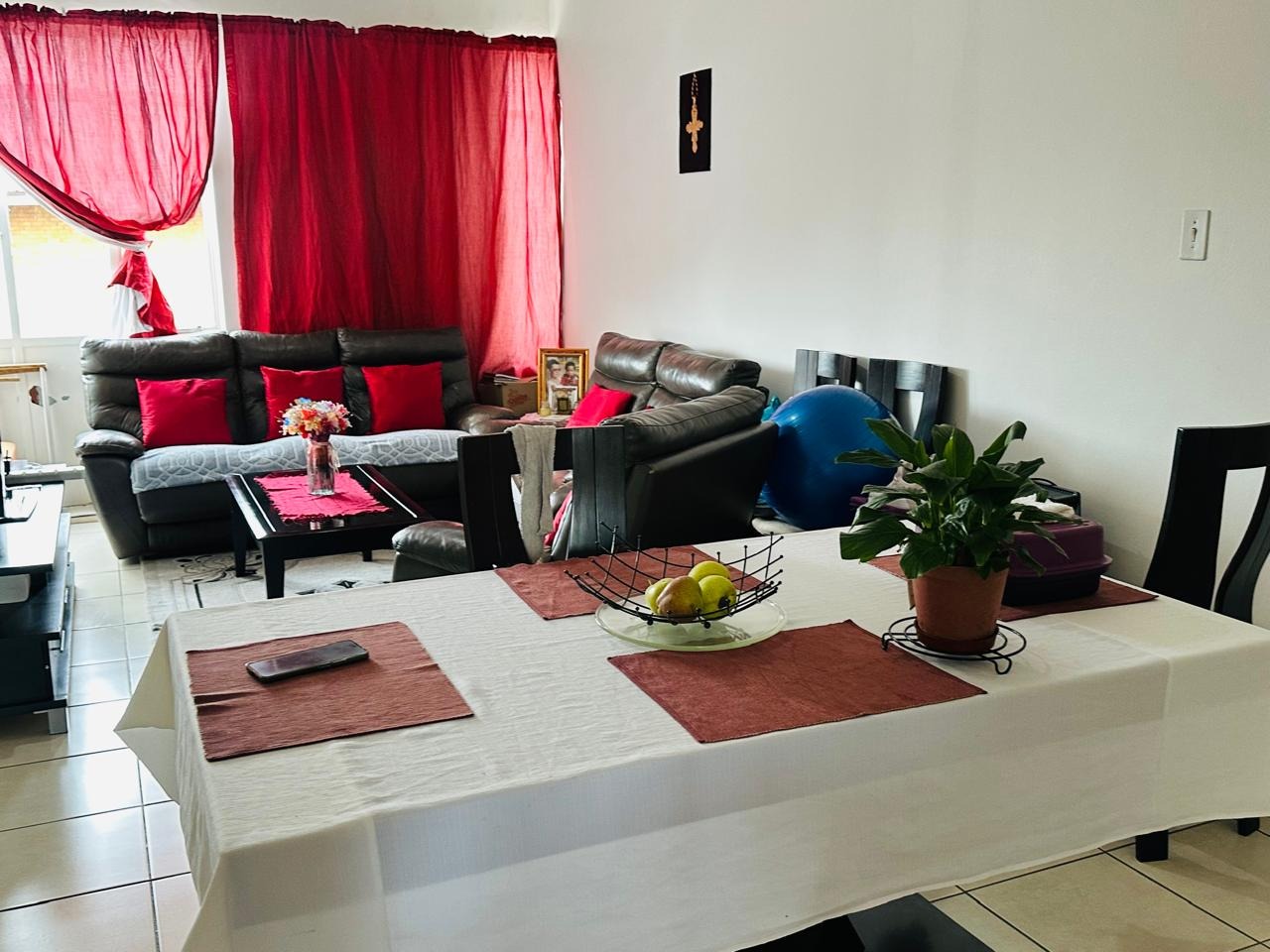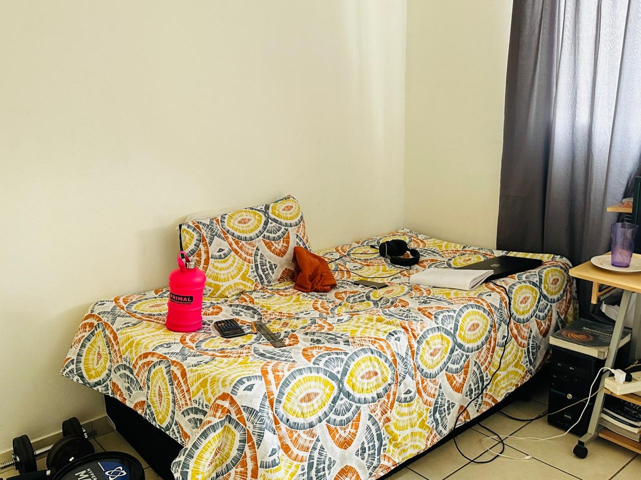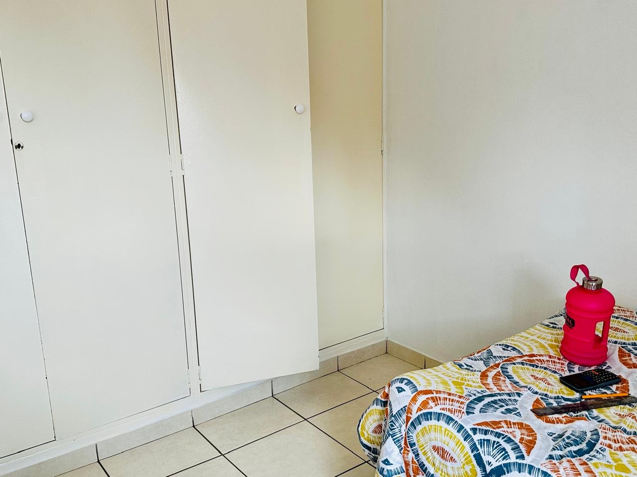 This functional apartment in Germiston South offers a practical living solution. The combined living and dining area is designed for efficiency, featuring tiled flooring and neutral white walls that provide a versatile canvas for personal touches. A large window ensures ample natural light fills the space, creating a bright and inviting atmosphere. The kitchen is equipped with a double stainless steel sink, a tiled backsplash for easy maintenance, and open shelving, offering a practical space for daily meal preparation. The residence comprises two comfortable bedrooms, each benefiting from tiled flooring and natural light through well-placed windows. One bedroom includes built-in storage, enhancing functionality and organisation. These rooms offer flexible accommodation options, with some capable of housing two single beds. The single bathroom features a bathtub and sink, complemented by tiled walls and natural light, providing essential amenities for residents. Externally, the multi-story apartment complex presents an established brick and orange-painted facade. The property includes one dedicated parking space, with additional covered parking bays available for convenience. While the exterior shows signs of its age, the practical parking solutions and durable construction contribute to its appeal as a suburban residence. Situated in a suburban area of Germiston, this property offers a convenient location within South Africa. The area provides a residential setting suitable for those seeking an accessible and established community. Key Features include: * Two Bedrooms * One Bathroom * One Lounge * One Kitchen * One Parking Bay * Tiled Flooring * Natural Light * Covered Parking