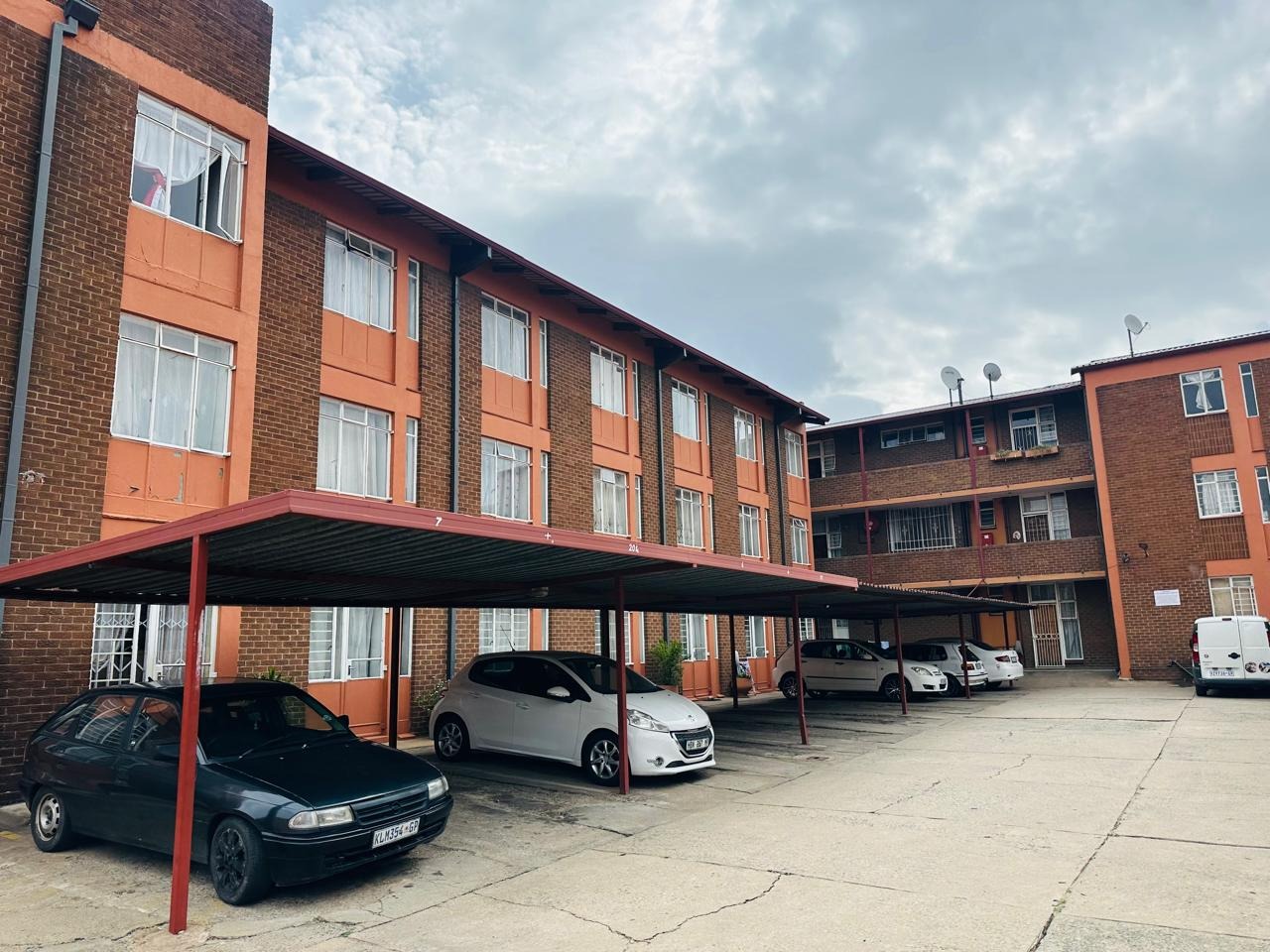 The property is part of a multi-unit brick building, featuring a practical exterior with covered parking available for one vehicle. Security is enhanced by a main entrance security gate and the property being totally walled, providing peace of mind in this suburban setting.