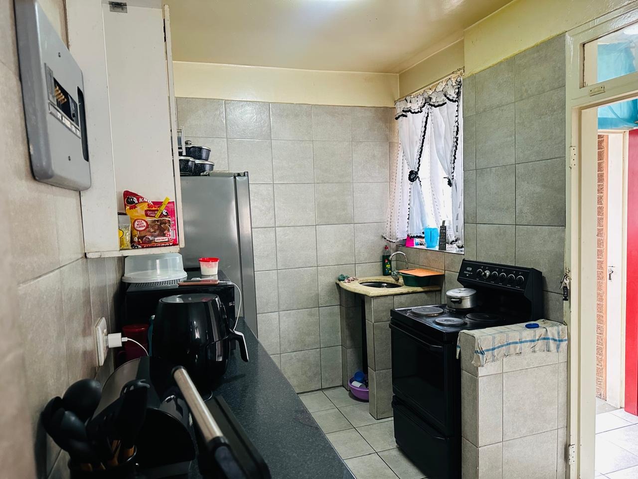 Discover this inviting residential property in Germiston South, offering a practical and comfortable living environment. The interior features an open-plan layout, seamlessly connecting the lounge and kitchen areas. Durable tiled flooring extends throughout, complemented by neutral white walls that provide a versatile canvas. The lounge benefits from ample natural light, creating a bright and welcoming atmosphere. The functional kitchen is equipped with essential appliances, including a stove and refrigerator, with tiled walls and floors for practicality, flowing effortlessly into the main living space.