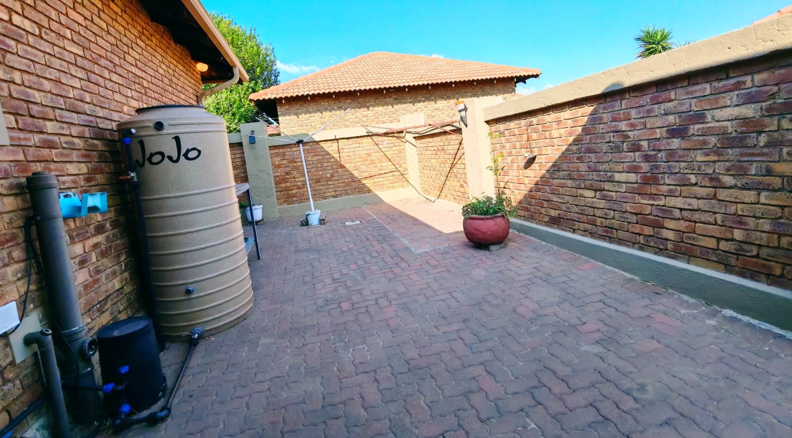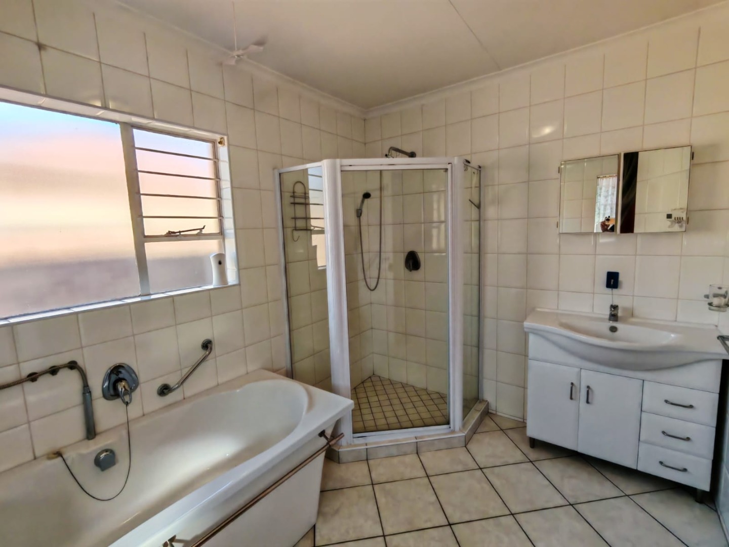 This inviting residence offers three comfy bedrooms and two bathrooms, providing ample space for everyone to relax and unwind. The layout ensures privacy while maintaining a connected feel throughout the home. Security is further enhanced with burglar bars and sliding doors equipped with security features.