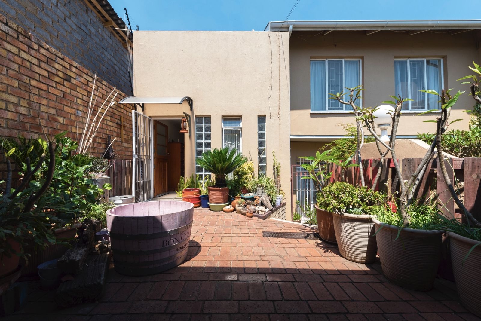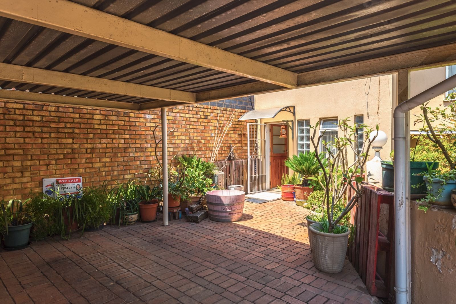 Security is a key feature, with electric fencing, an access gate, security gates, and burglar bars ensuring peace of mind. The property is totally walled and includes an intercom system. Connectivity is provided through fibre internet and satellite readiness. This complex is also wheelchair friendly and allows pets, catering to diverse lifestyle needs. The multi-story building presents a neat exterior, complemented by the vibrant, plant-filled patio area that adds a touch of kerb appeal.
