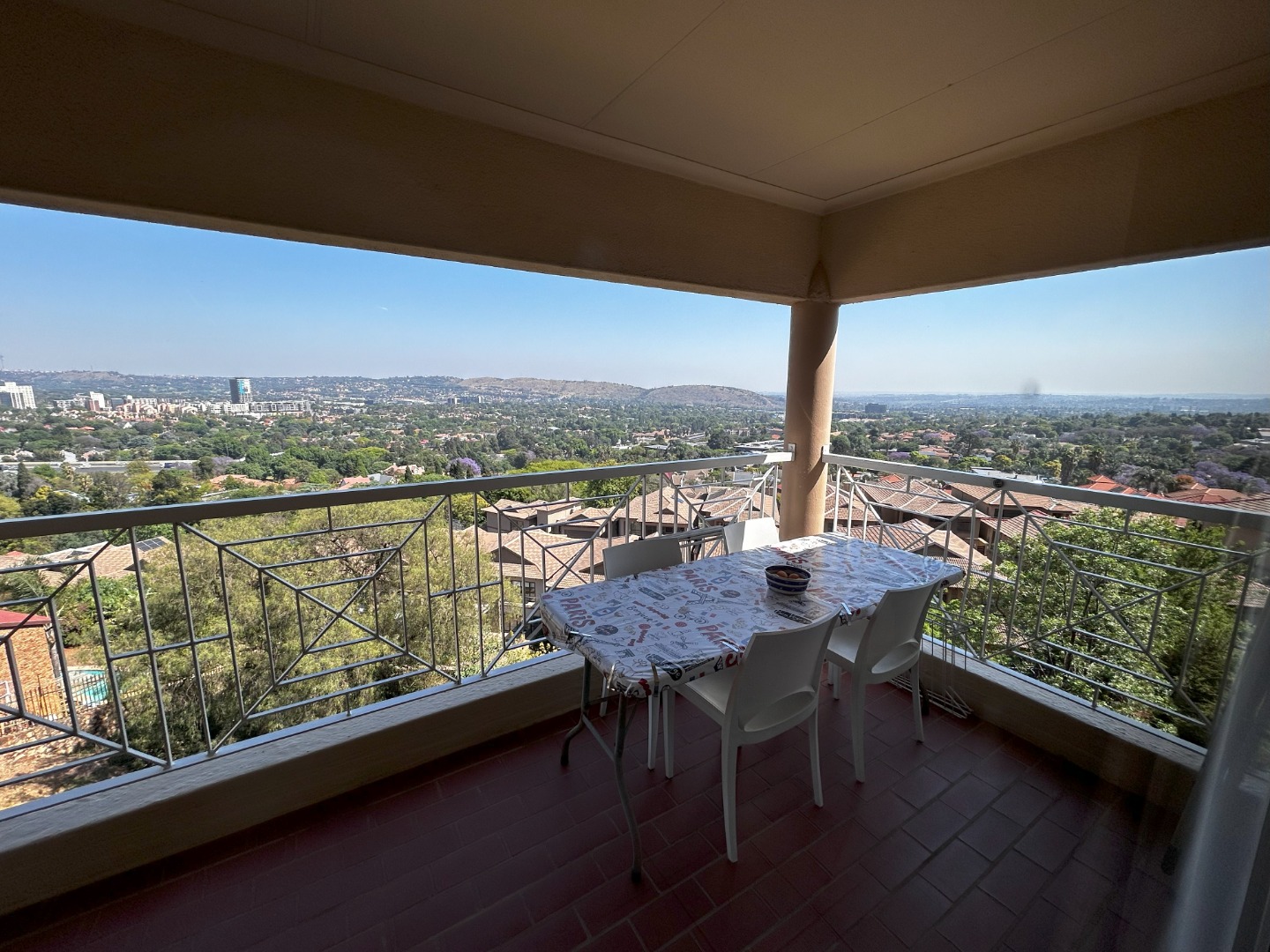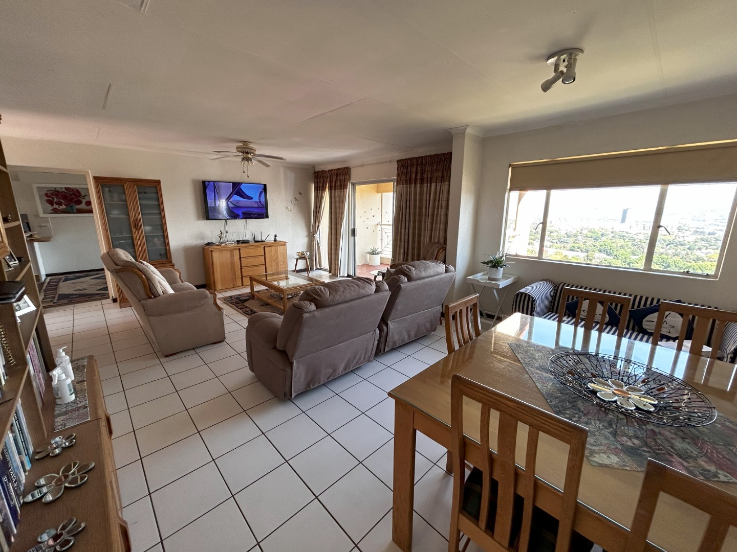 Discover this charming 2-bedroom, 2-bathroom home in the sought-after suburb of Primrose Hill, Germiston. The open-plan living and dining area features tiled flooring and large windows showcasing stunning city and nature views, extending to a covered balcony—perfect for outdoor dining. The modern kitchen offers white cabinetry, built-in appliances, and a breakfast bar.