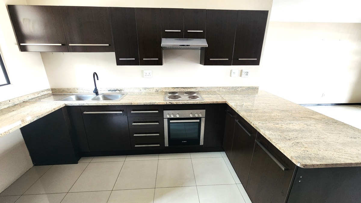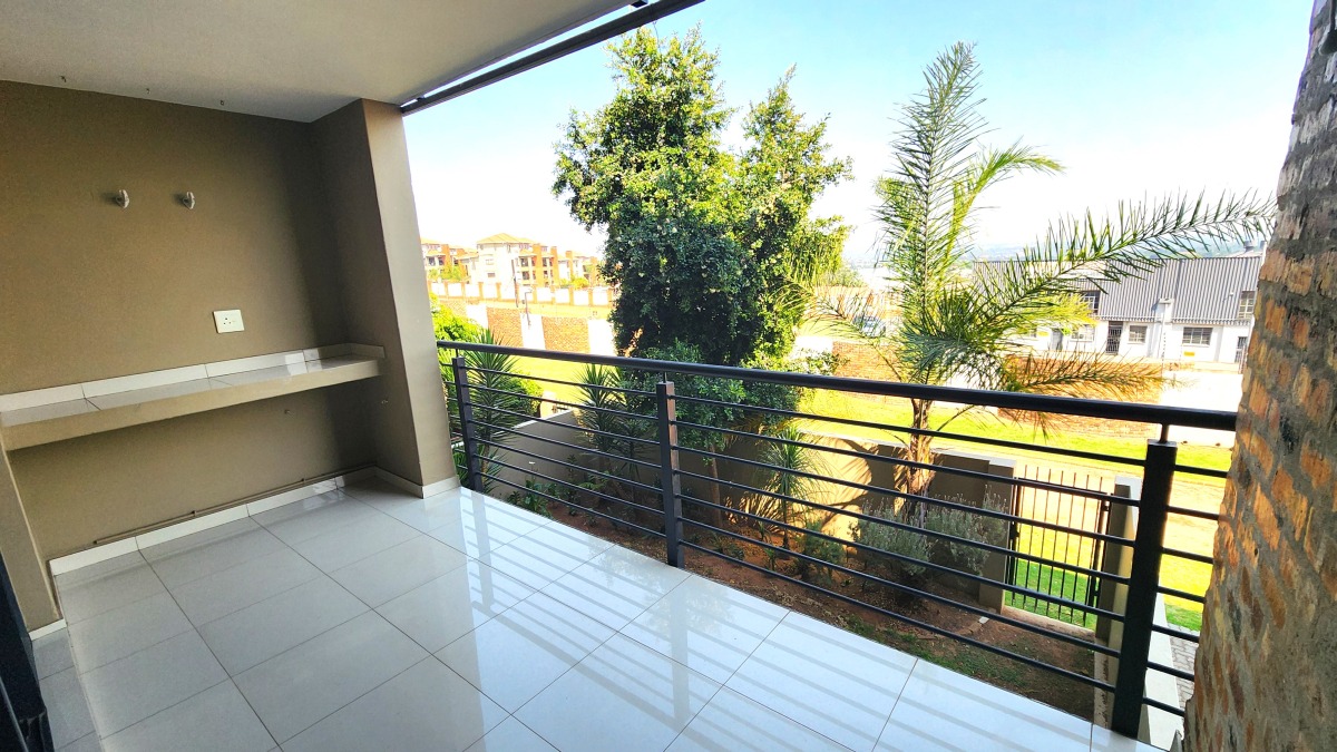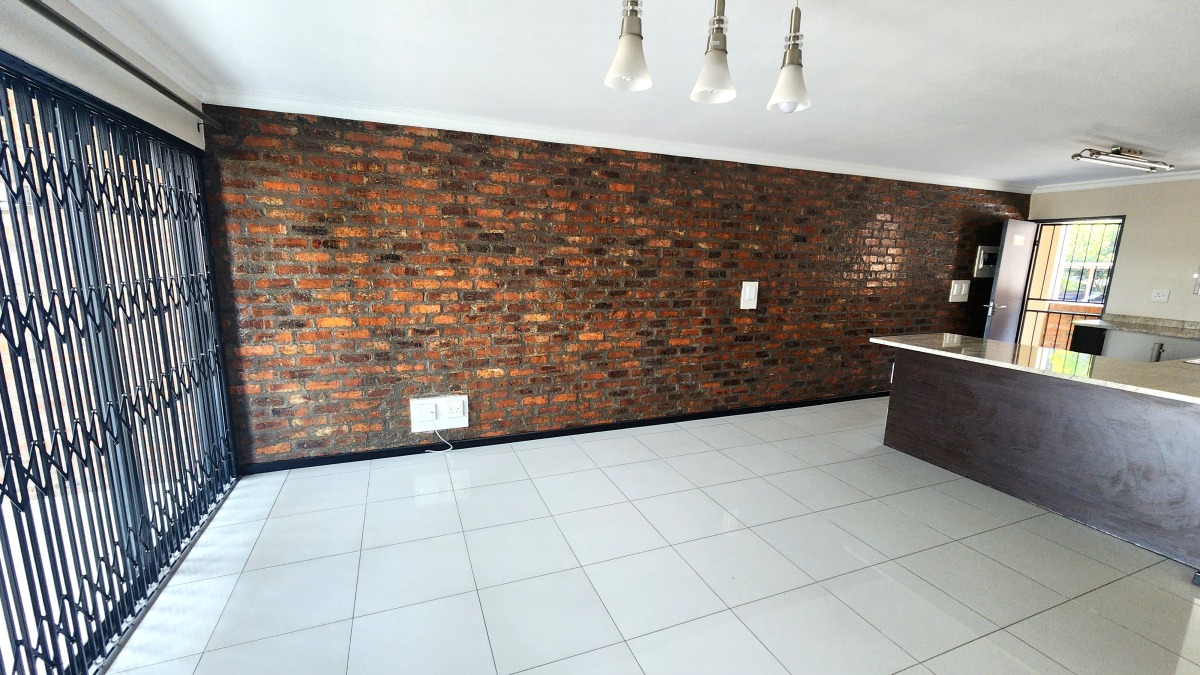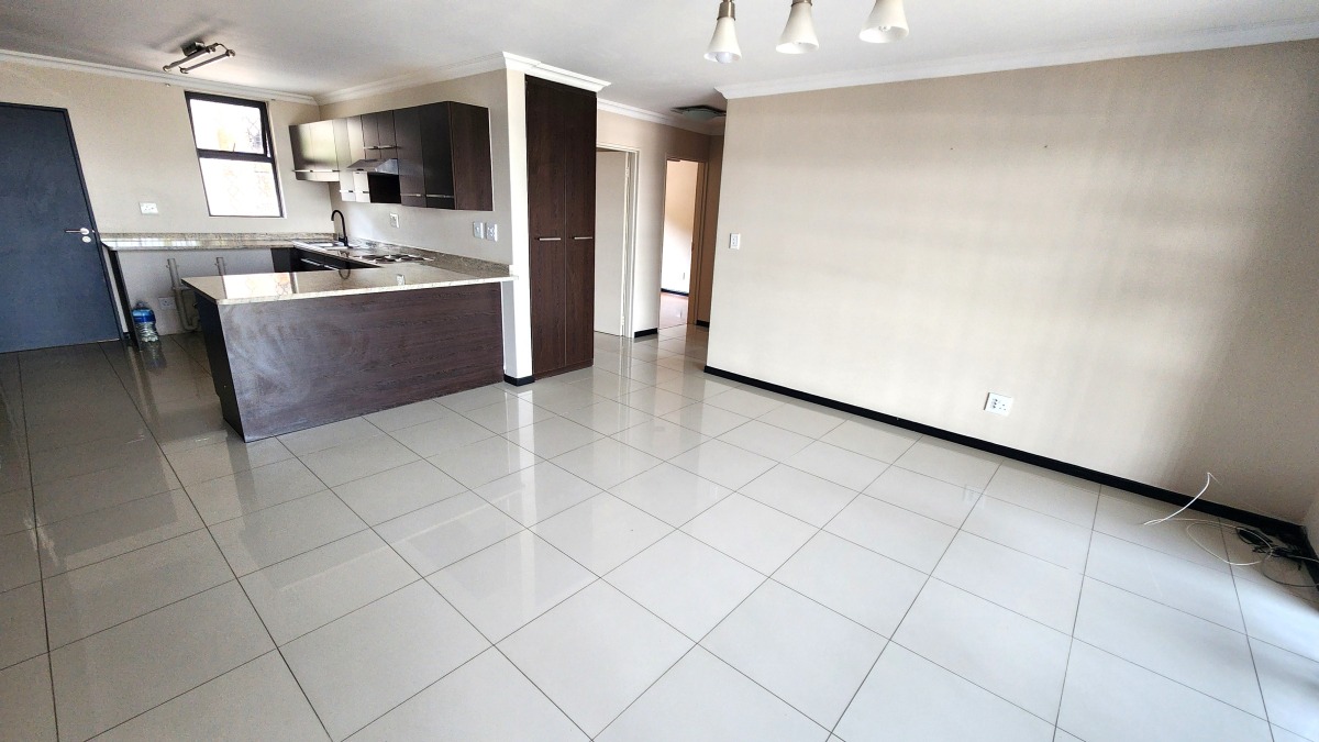 Discover modern living in this stylish apartment located in the vibrant suburban area of Solheim, Germiston. This contemporary residence, spanning 75.00 sqm, immediately impresses with its sleek architectural design, featuring beige walls, brick accents, and large windows that invite abundant natural light. The open-plan layout seamlessly connects the living spaces, adorned with pristine white tiled flooring and a striking exposed brick accent wall, creating an inviting atmosphere. Modern pendant lighting adds a touch of sophistication, while a robust security gate on the sliding door ensures peace of mind. The heart of this home is its modern kitchen, boasting dark wood cabinetry, light granite countertops, and a practical U-shaped configuration that offers extensive preparation space and ample storage. It comes fully equipped with a built-in oven, electric stovetop, extractor fan, and a convenient double sink. An integrated breakfast bar enhances the functionality, perfect for casual dining or entertaining. The apartment features two comfortable bedrooms, each fitted with wood-look laminate flooring and neutral wall colours, providing a versatile canvas for personalisation. One bedroom includes built-in dark wood wardrobes for efficient storage, and ceiling fans are present for comfort. The modern bathroom is a sanctuary, complete with a freestanding bathtub, a separate glass-enclosed shower, a dark vanity with integrated sink, and contemporary black fixtures, all set against easy-to-maintain tiled surfaces. Step outside to a spacious tiled balcony, offering a pleasant outlook with mature trees and featuring a built-in counter/shelf with a power outlet – ideal for outdoor relaxation. Residents benefit from excellent communal amenities, including a refreshing pool and a well-equipped gym. Security is paramount with 24-hour security, CCTV surveillance, and an access gate, complemented by shaded carport parking. This property offers a secure and convenient lifestyle in a sought-after location. Key Features: * 2 Bedrooms * 0.5 Bathrooms * 1 Lounge * 1 Kitchen * 1 Garage * Communal Pool * Communal Gym * 24-Hour Security * CCTV * Access Gate * Balcony