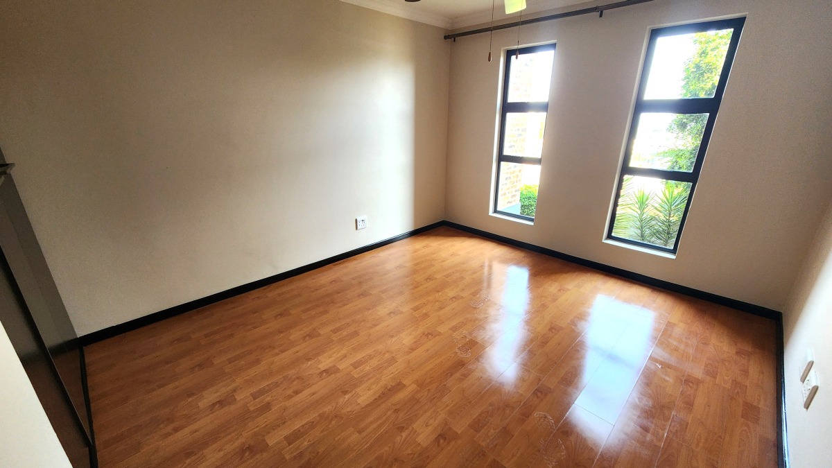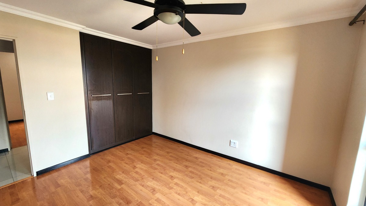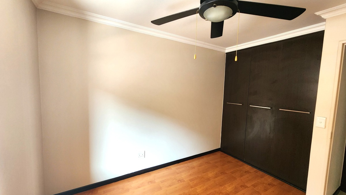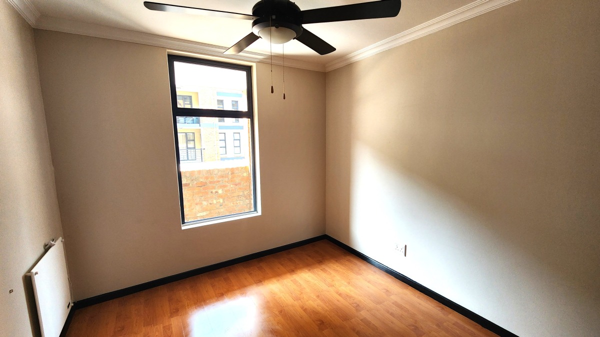 Discover modern living in this stylish apartment located in the vibrant suburban area of Solheim, Germiston. This contemporary residence, spanning 75.00 sqm, immediately impresses with its sleek architectural design, featuring beige walls, brick accents, and large windows that invite abundant natural light. The open-plan layout seamlessly connects the living spaces, adorned with pristine white tiled flooring and a striking exposed brick accent wall, creating an inviting atmosphere. Modern pendant lighting adds a touch of sophistication, while a robust security gate on the sliding door ensures peace of mind. The heart of this home is its modern kitchen, boasting dark wood cabinetry, light granite countertops, and a practical U-shaped configuration that offers extensive preparation space and ample storage. It comes fully equipped with a built-in oven, electric stovetop, extractor fan, and a convenient double sink. An integrated breakfast bar enhances the functionality, perfect for casual dining or entertaining. The apartment features two comfortable bedrooms, each fitted with wood-look laminate flooring and neutral wall colours, providing a versatile canvas for personalisation. One bedroom includes built-in dark wood wardrobes for efficient storage, and ceiling fans are present for comfort. The modern bathroom is a sanctuary, complete with a freestanding bathtub, a separate glass-enclosed shower, a dark vanity with integrated sink, and contemporary black fixtures, all set against easy-to-maintain tiled surfaces. Step outside to a spacious tiled balcony, offering a pleasant outlook with mature trees and featuring a built-in counter/shelf with a power outlet – ideal for outdoor relaxation. Residents benefit from excellent communal amenities, including a refreshing pool and a well-equipped gym. Security is paramount with 24-hour security, CCTV surveillance, and an access gate, complemented by shaded carport parking. This property offers a secure and convenient lifestyle in a sought-after location. Key Features: * 2 Bedrooms * 0.5 Bathrooms * 1 Lounge * 1 Kitchen * 1 Garage * Communal Pool * Communal Gym * 24-Hour Security * CCTV * Access Gate * Balcony