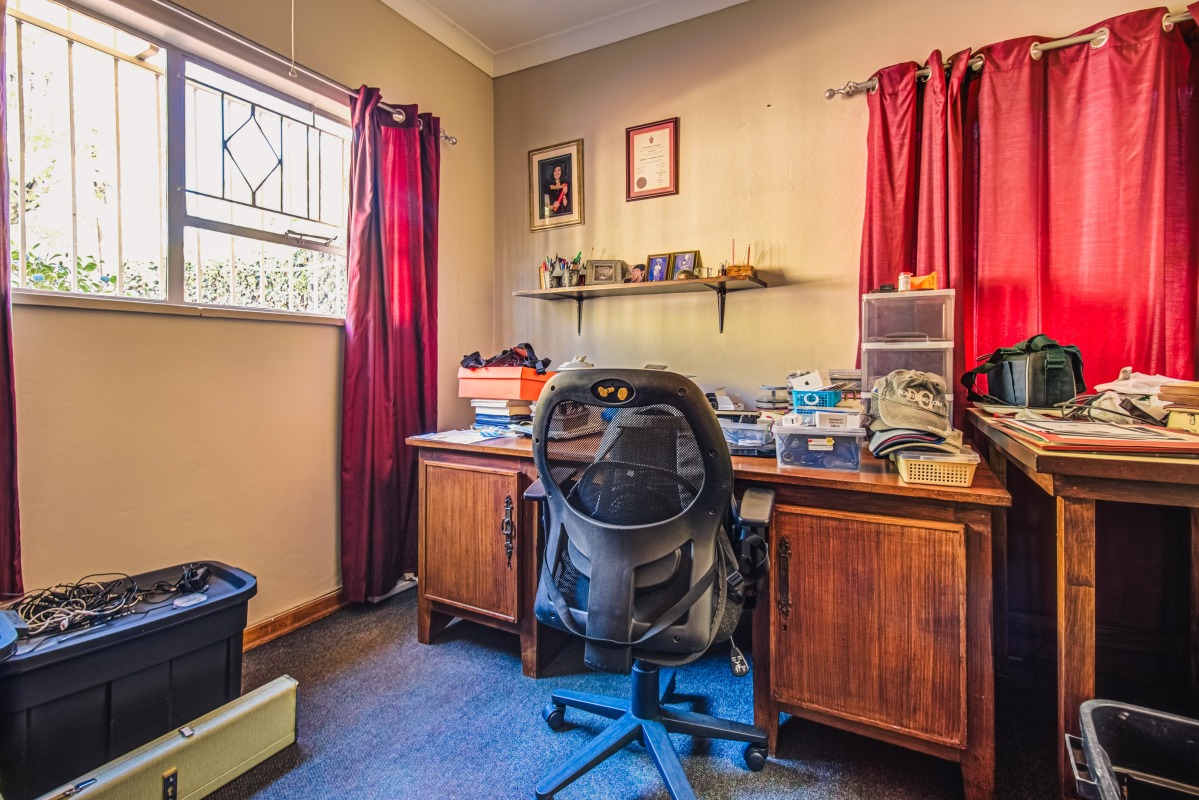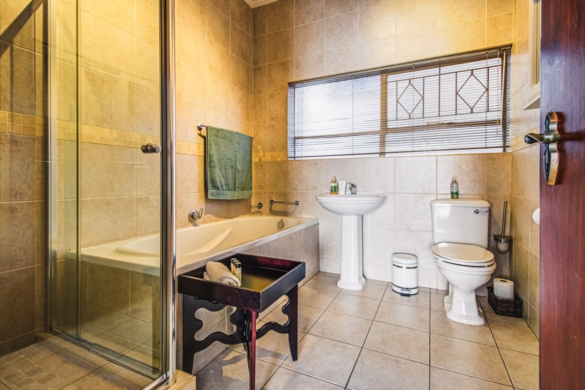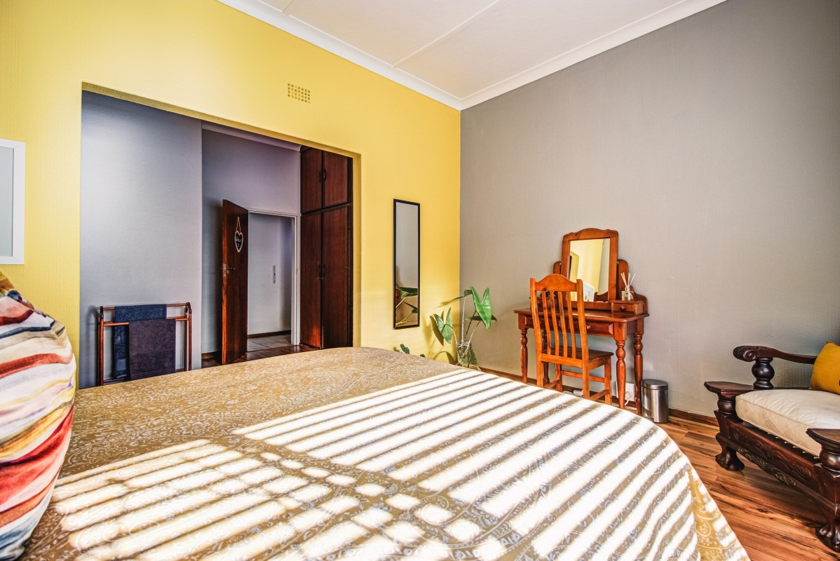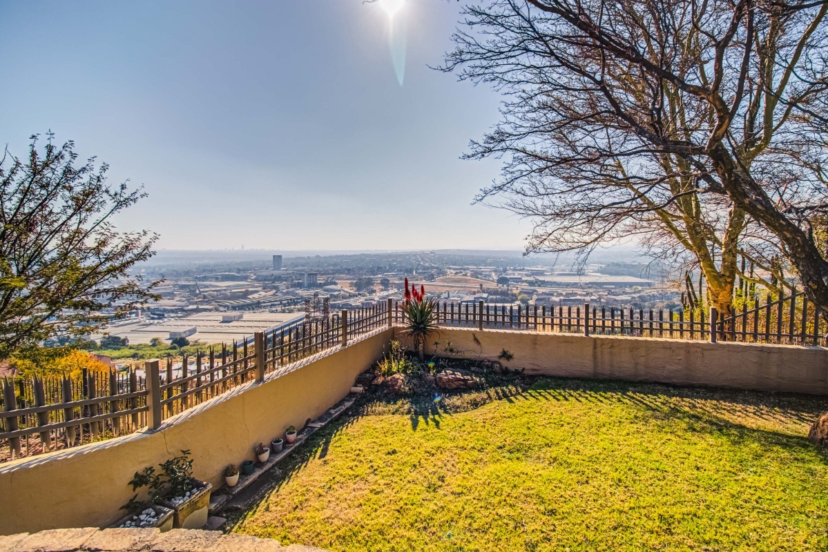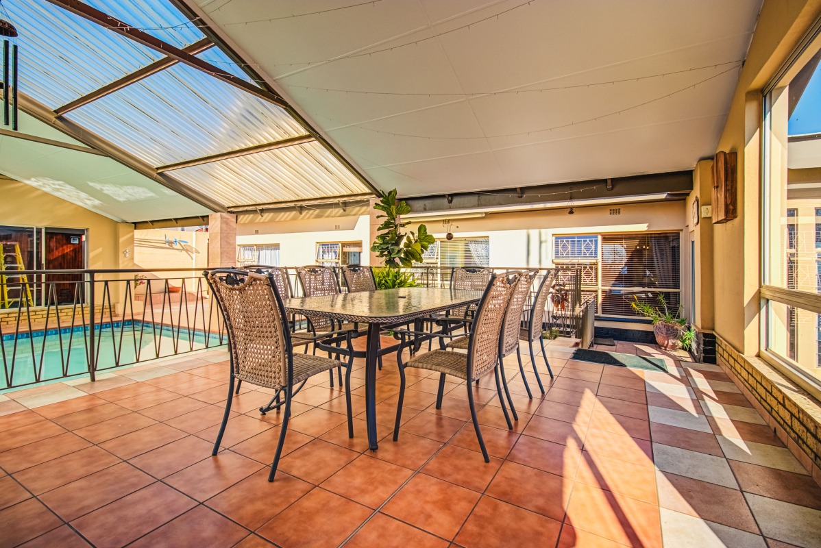 Nestled in the suburban heart of Sunnyridge, Germiston, this expansive residential property spans a generous 1586 sqm erf. The exterior boasts multiple beige-colored buildings with dark trim, complemented by extensive, well-maintained brick paving that provides ample parking. Mature trees and hedges enhance privacy, while the property is totally walled for security. A double garage and a separate outbuilding offer versatile space, hinting at the home's functional design. Upon entering, a spacious tiled entryway leads into the open-plan living and dining areas, featuring warm wooden flooring and vibrant walls. The dedicated dining room, complete with a chandelier, flows into a comfortable lounge with an exposed beam ceiling. The large, open-plan kitchen is equipped with extensive wooden cabinetry, ample counter space, and durable tiled flooring, alongside a prominent dining table with benches, ideal for family gatherings. This substantial home offers five well-proportioned bedrooms and three bathrooms, ensuring comfort and convenience. Outdoor living is enhanced by a paved patio area and a refreshing swimming pool, perfect for relaxation. The garden, though currently dry, offers potential for landscaping. Security features include window bars, a visible gate, and a camera, providing peace of mind in this tranquil setting with mountain views. Key Features: * 5 Bedrooms, 3 Bathrooms * 3 Garages * Swimming Pool * 1586 sqm Erf * Extensive Brick Paving * Open-Plan Living & Dining * Spacious Kitchen * Totally Walled Property * Suburban Sunnyridge Location