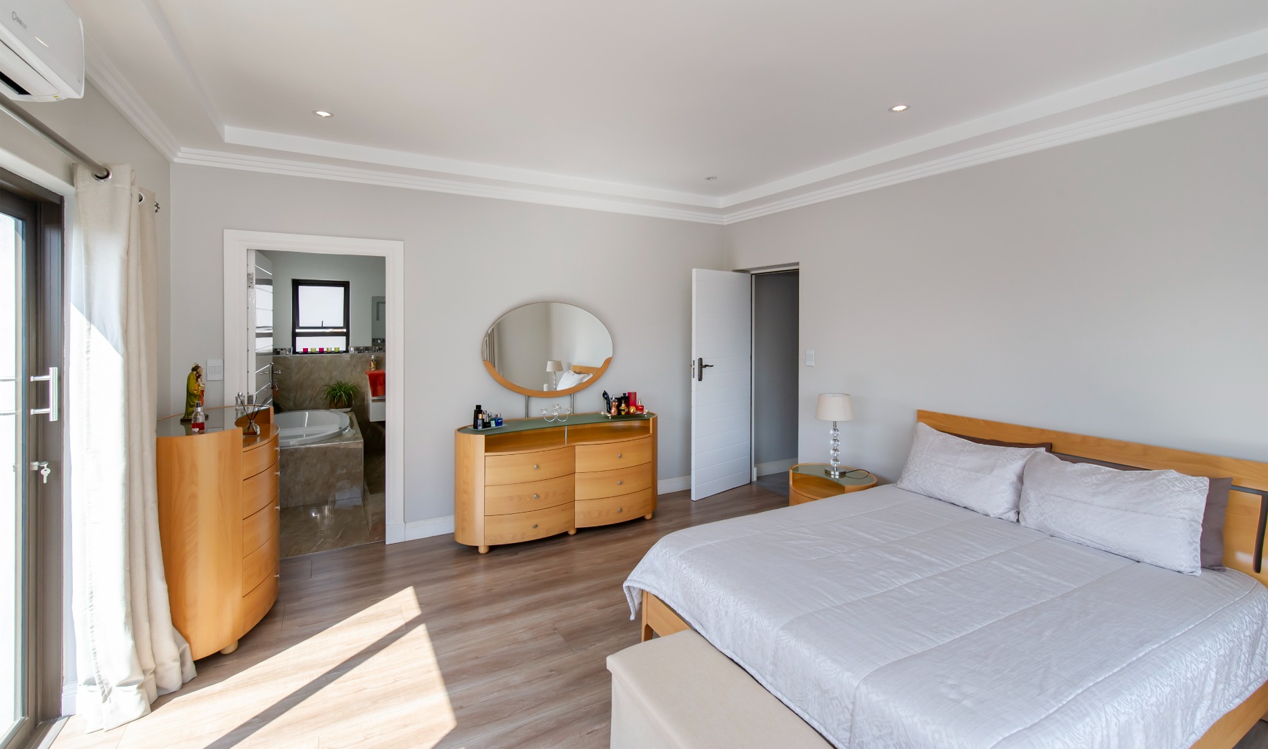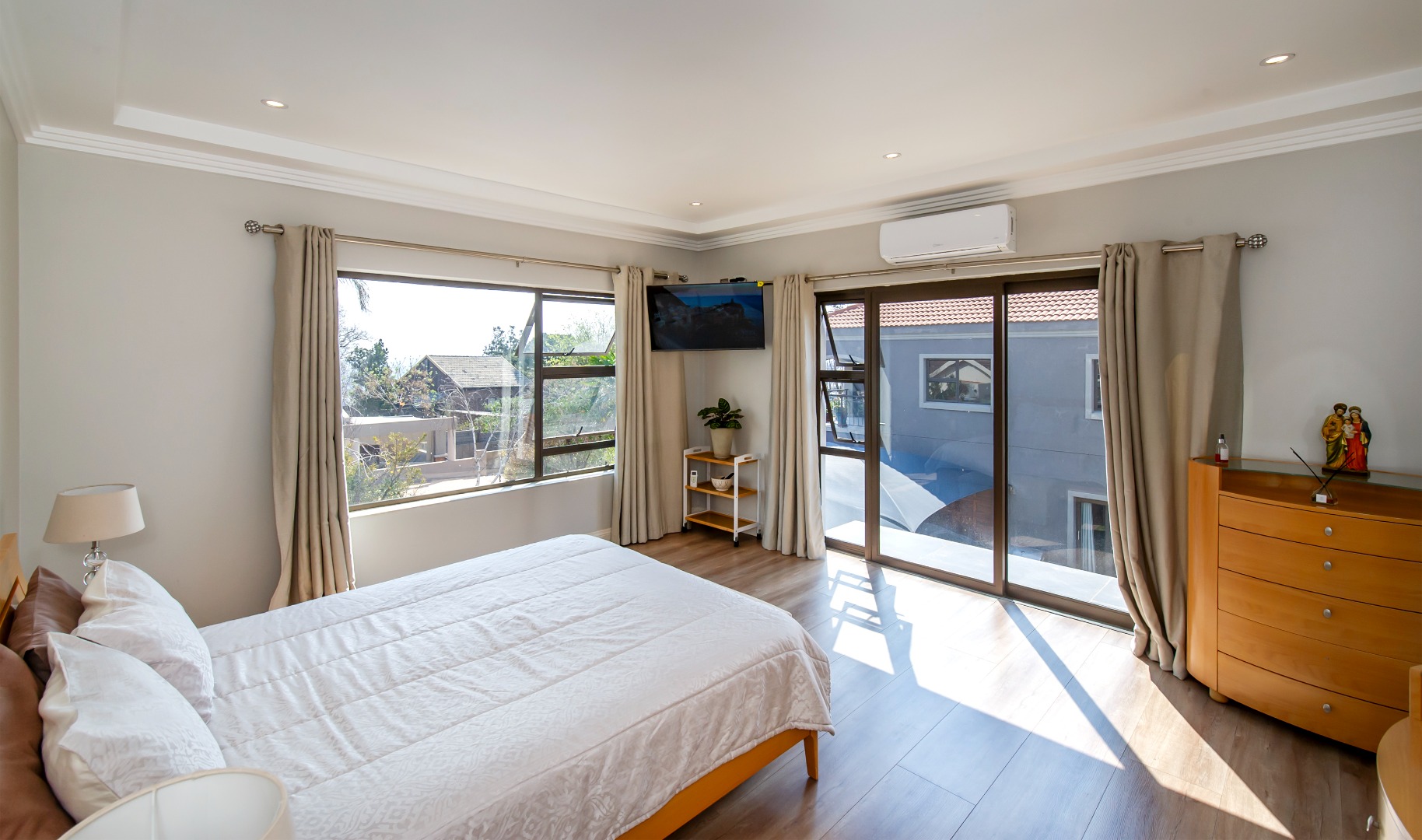 The master suite is a true sanctuary — exceptionally large, with expansive windows that frame beautiful views. It boasts a full, luxurious en-suite bathroom, complete with both bath and shower, and a separate dressing room creating the ultimate retreat