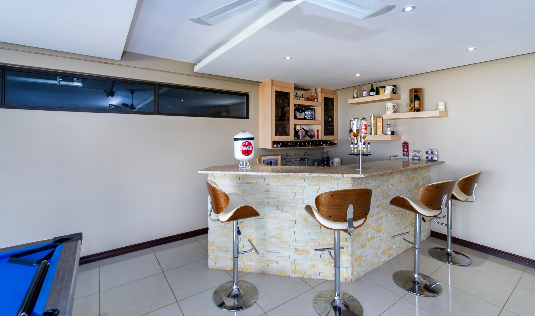 Directly below the flat lies an impressive entertainment room designed for gatherings and leisure. At its heart is a built-in bar, making it ideal for hosting friends and family. The room also boasts a large, fully fitted kitchen with a gas hob and granite topped breakfast counter — creating a space that is as functional as it is stylish