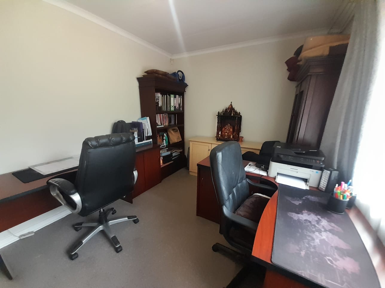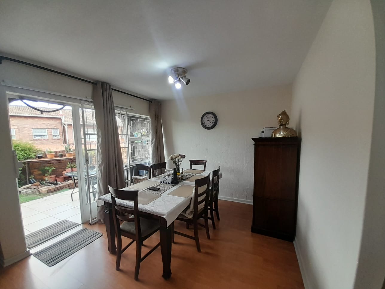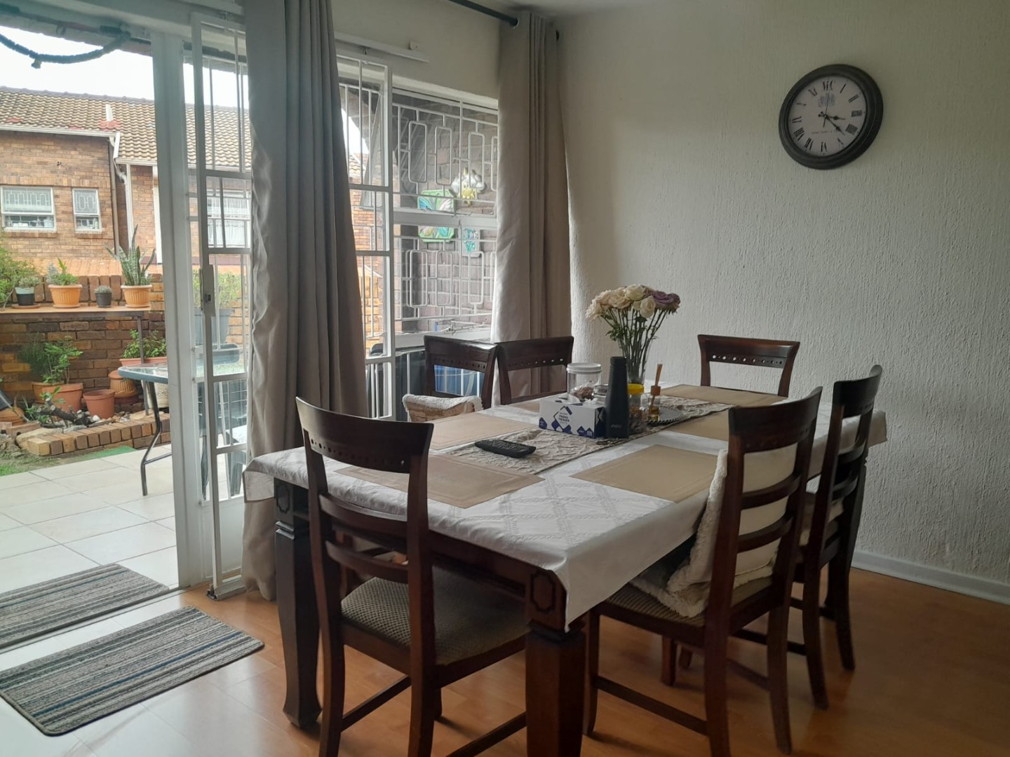 This inviting two-story brick residence, nestled within a complex in Corlett Gardens, Johannesburg, offers a comfortable and secure family lifestyle. The property presents a durable exterior with established hedges providing privacy and a welcoming tiled outdoor patio area, perfect for relaxation. Step inside to discover an expansive interior designed for versatile living. The open-plan living and dining areas feature elegant hardwood flooring and benefit from abundant natural light, creating a warm and inviting atmosphere. Sliding doors seamlessly connect these spaces to the outdoor patio, promoting indoor-outdoor living. The functional kitchen boasts modern white cabinetry, ample countertop space, a dedicated cooking area with a range hood, and an integrated oven/microwave unit, all complemented by durable tiled flooring. With an impressive eleven lounges, this home offers unparalleled flexibility for various family activities and entertainment needs. The residence accommodates five well-proportioned bedrooms, providing ample private space for every family member. There are two bathrooms, including a convenient en-suite, ensuring comfort and practicality. Beyond the main living areas, the property includes a versatile utility space, potentially serving as a garage, workshop, or gym, featuring tiled floors, exposed brick walls, and a roll-up door for easy access. The outdoor patio extends the living space, offering a private spot for enjoying the South African climate. Parking is well-catered for with one garage and two additional parking spaces. Security is a key consideration, with visible security bars on windows and doors enhancing peace of mind. Corlett Gardens is a well-regarded suburb in Johannesburg, known for its residential appeal and convenient location. Key Features: * 5 Bedrooms, 2 Bathrooms (1 En-suite) * 11 Lounges & 1 Dining Room * Modern Kitchen with White Cabinetry * Hardwood & Tiled Flooring * Outdoor Tiled Patio Area * 1 Garage, 2 Parking Spaces * Durable Brick Construction * Security Bars on Windows/Doors * Located in Corlett Gardens, Johannesburg