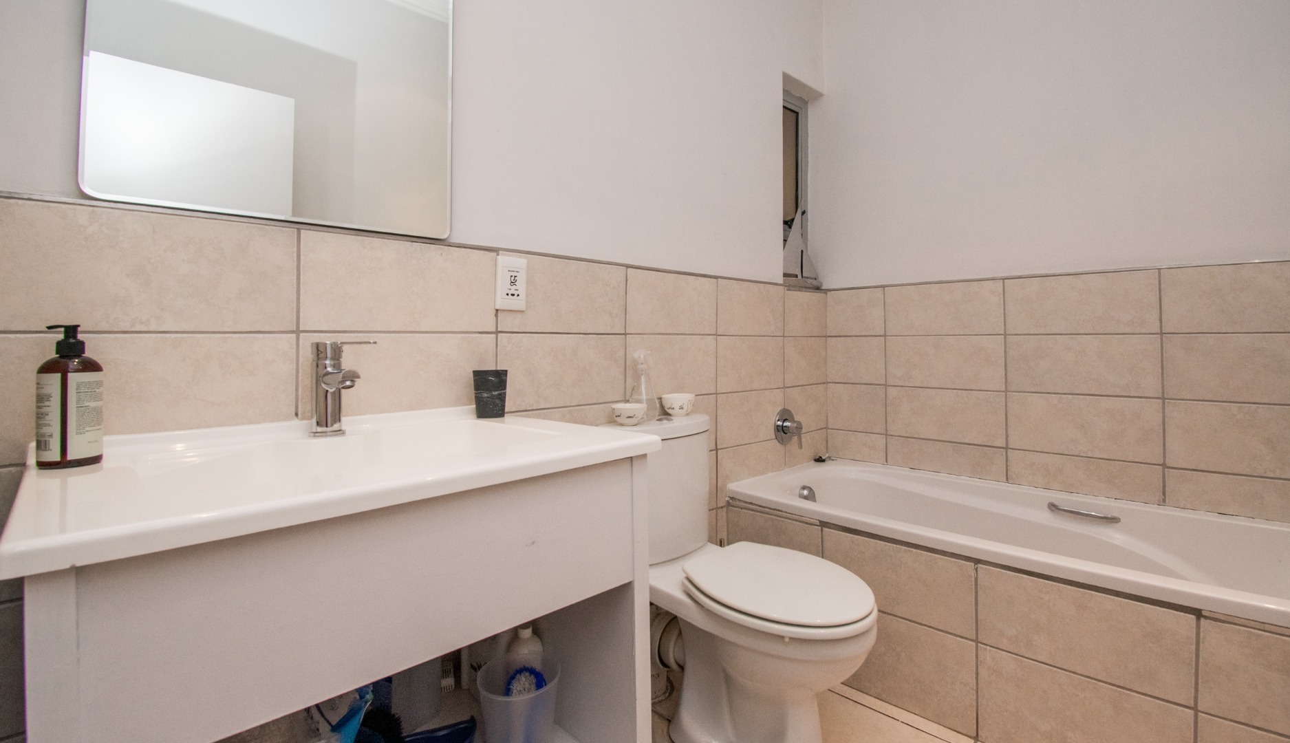 Upon entering the front door, you will easily access the renovated and modern kitchen which has a gas oven, stove, and an extractor fan. There is space for 2 appliances.