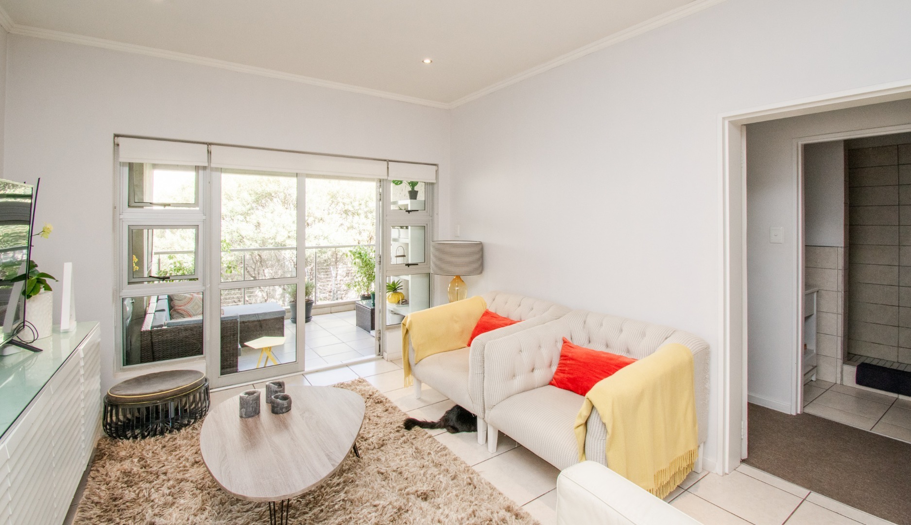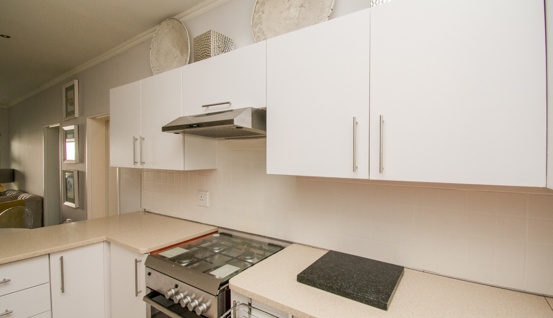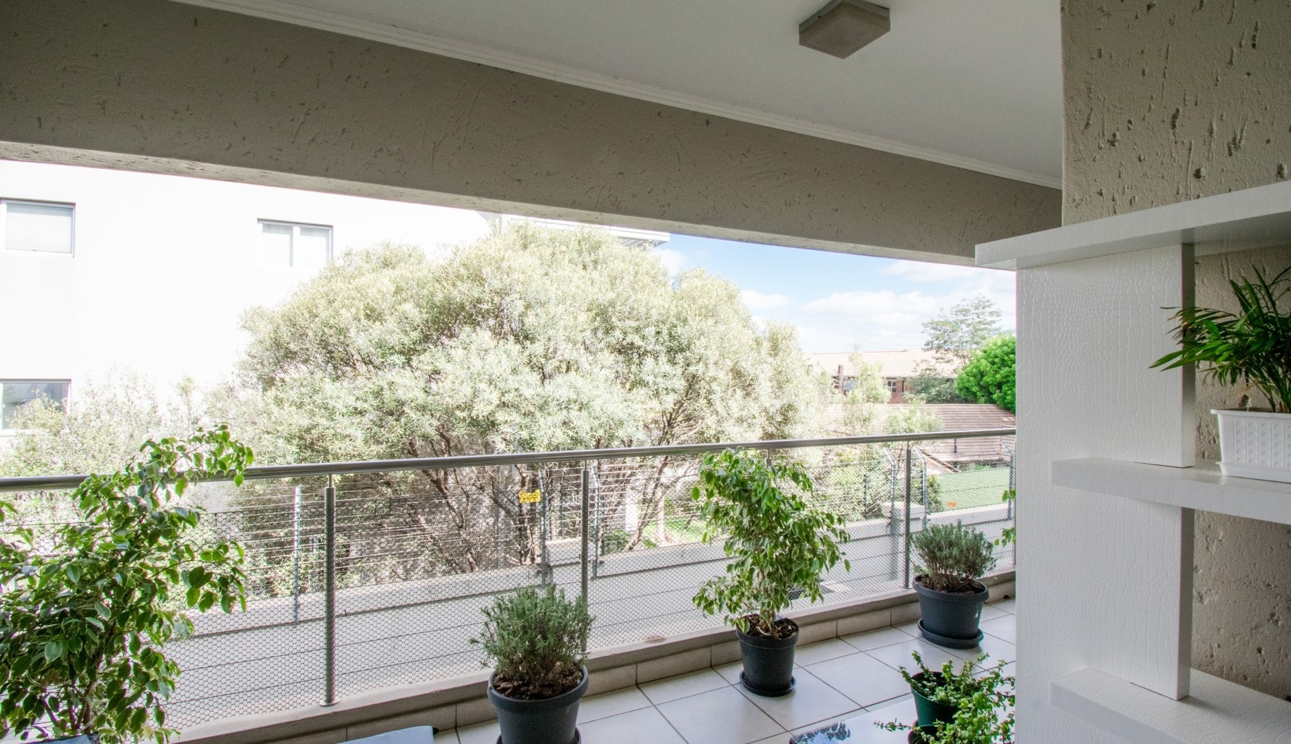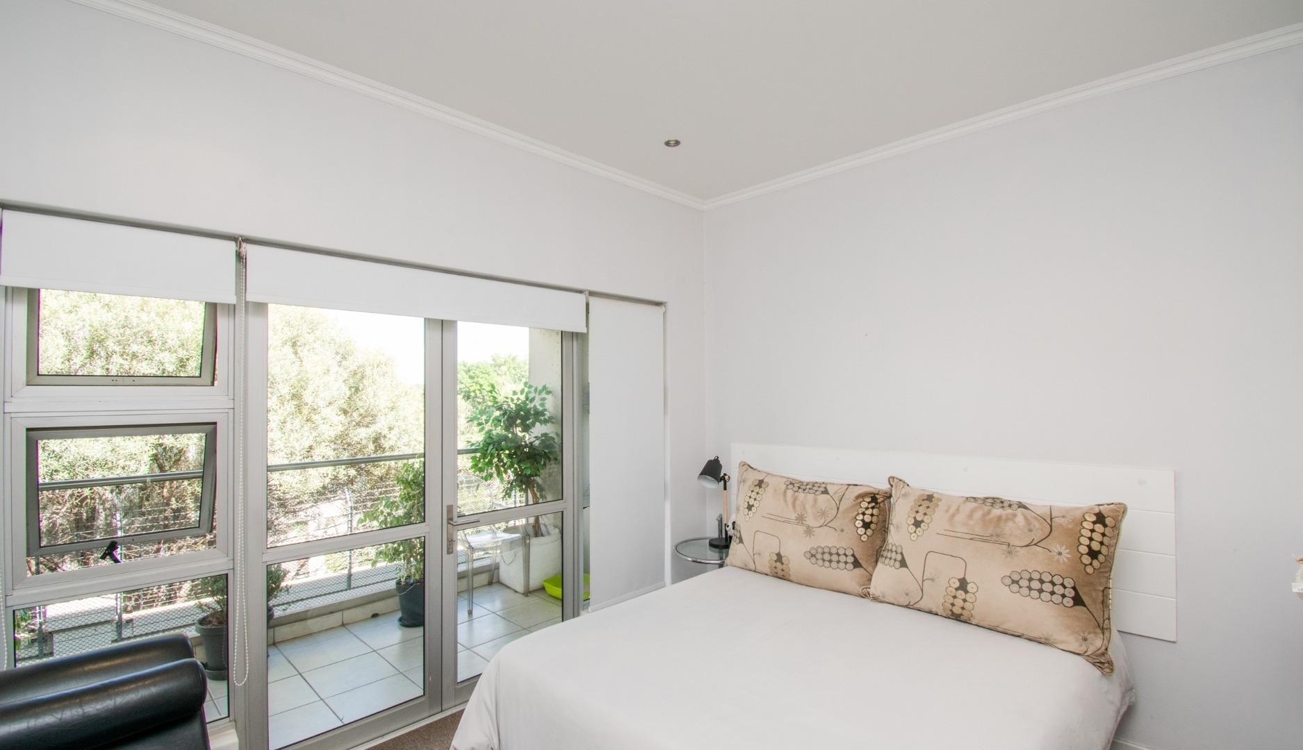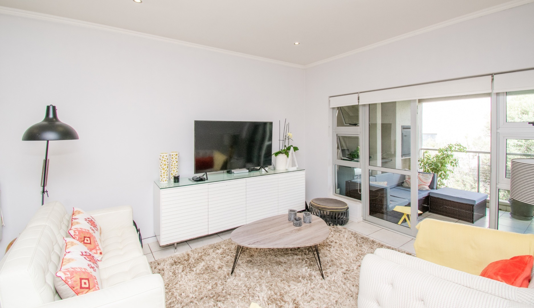 Off the kitchen is the open-plan living area, which flows onto a lovely spacious balcony with a built-in-braai which can host an outside dining set or lounger set to induce relaxation.