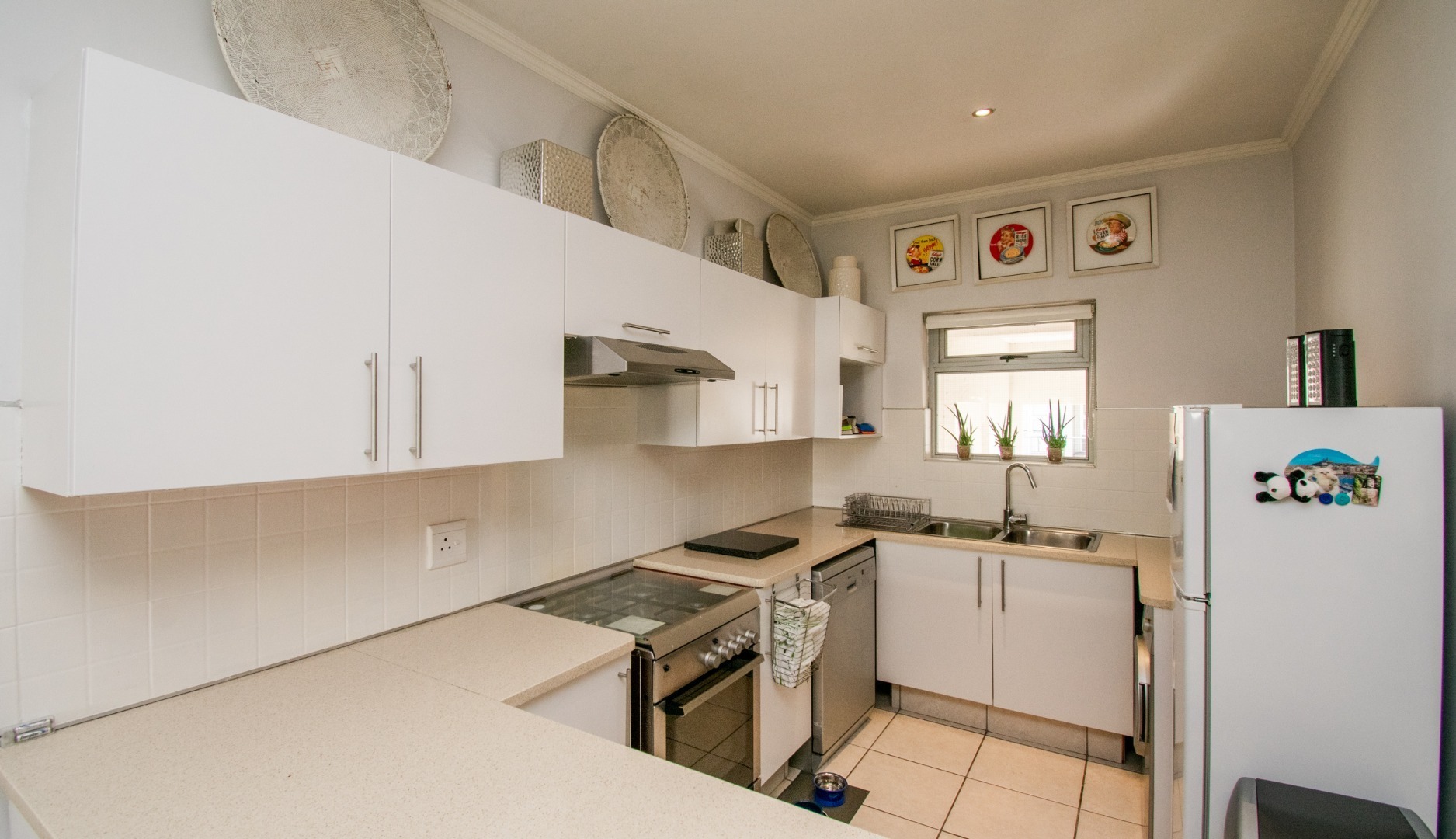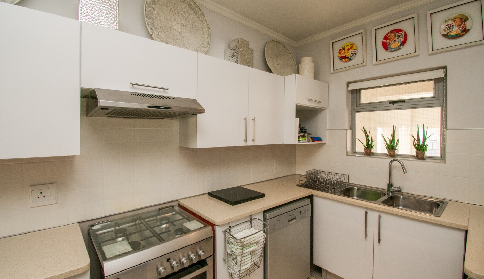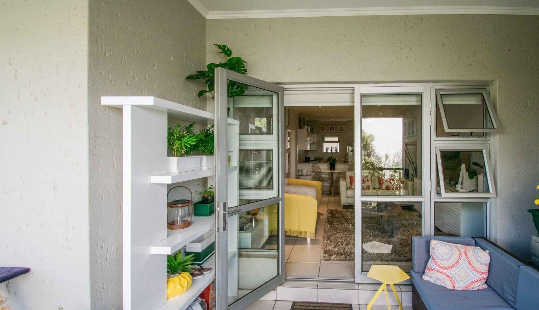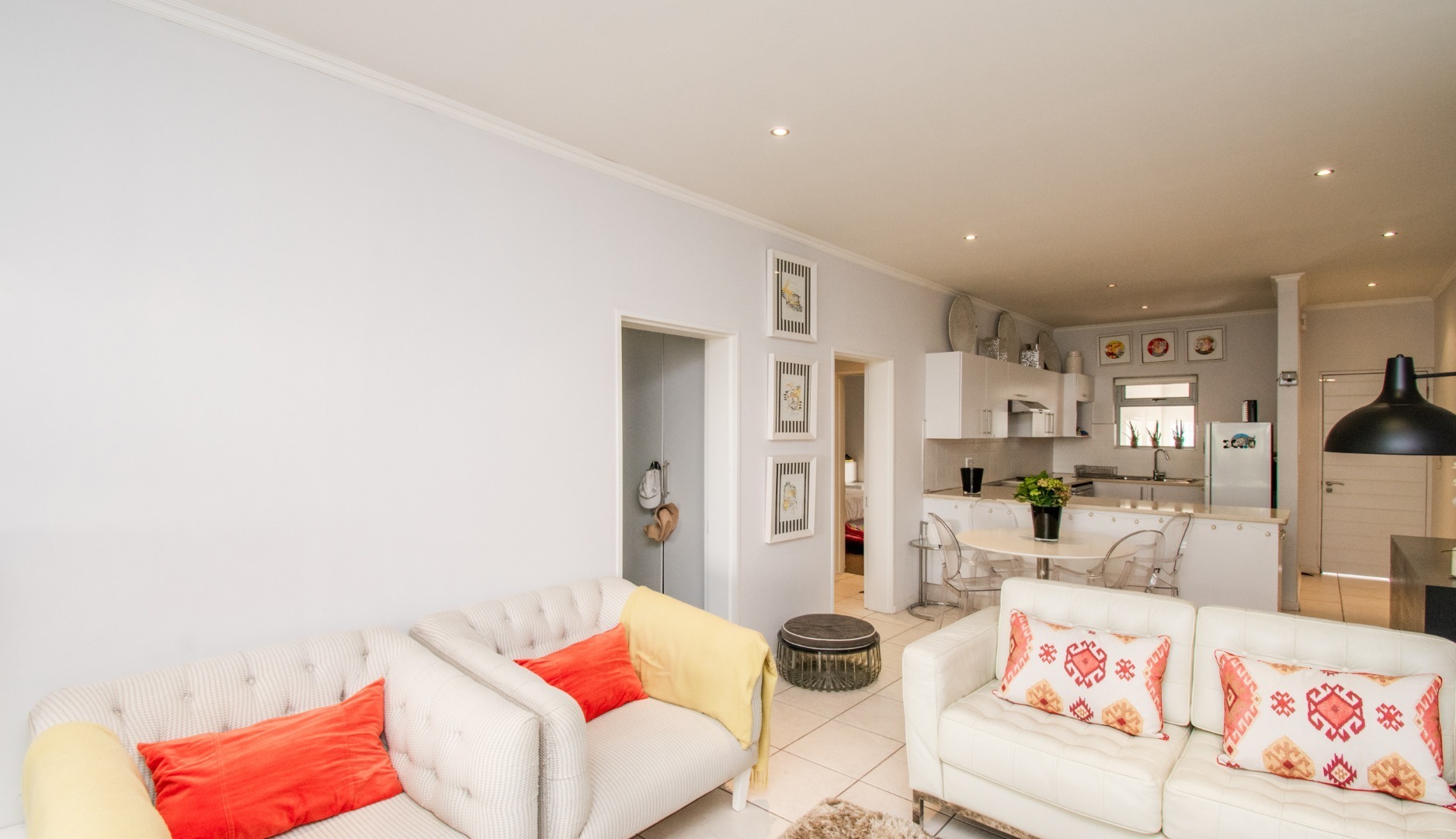 Off the kitchen is the open-plan living area, which flows onto a lovely spacious balcony with a built-in-braai which can host an outside dining set or lounger set to induce relaxation.