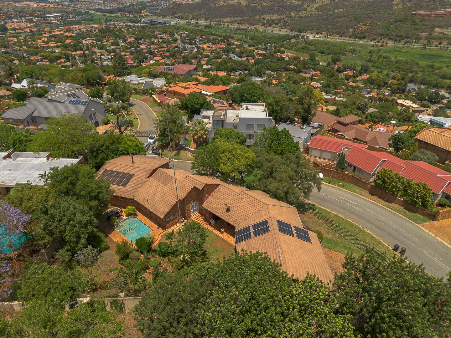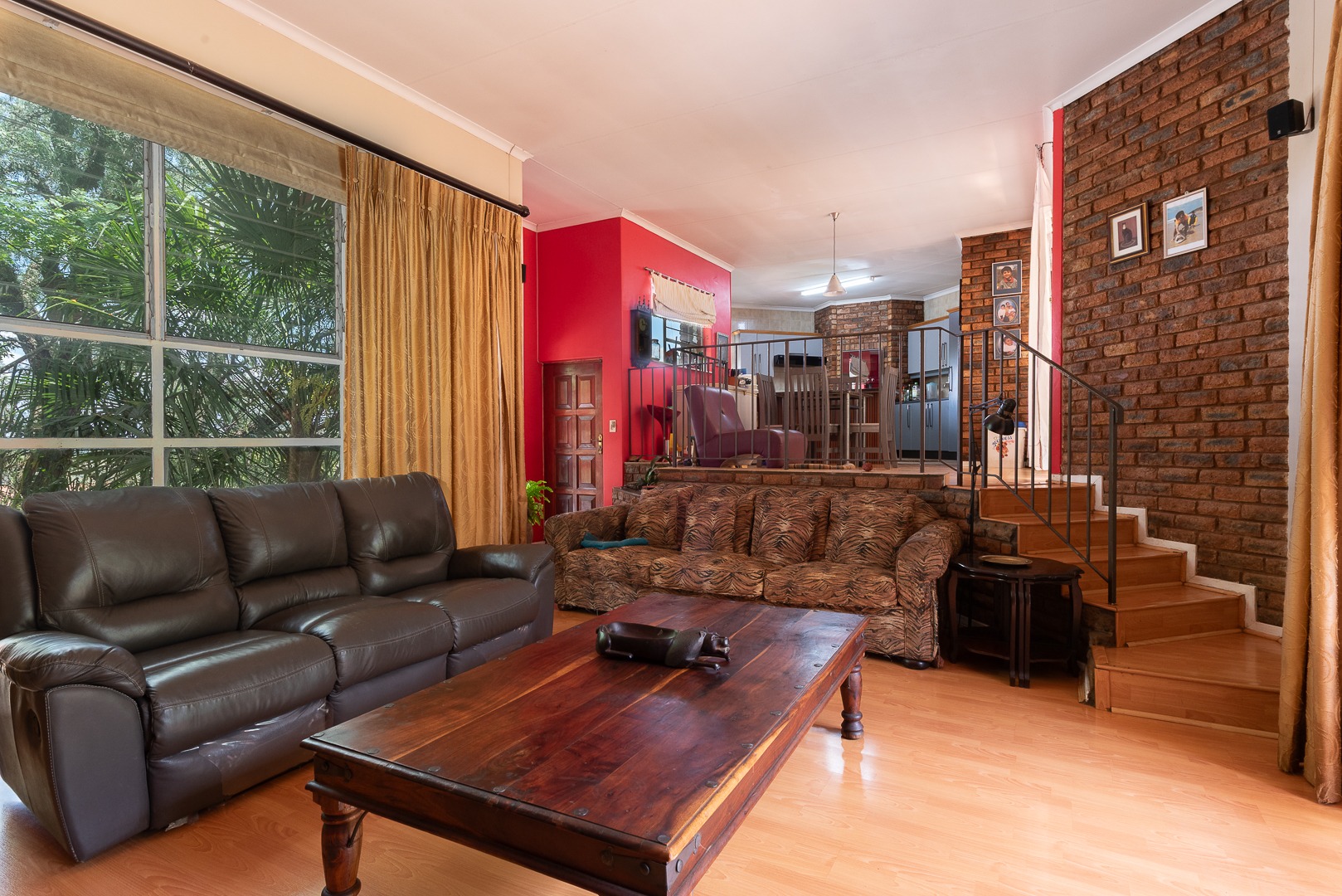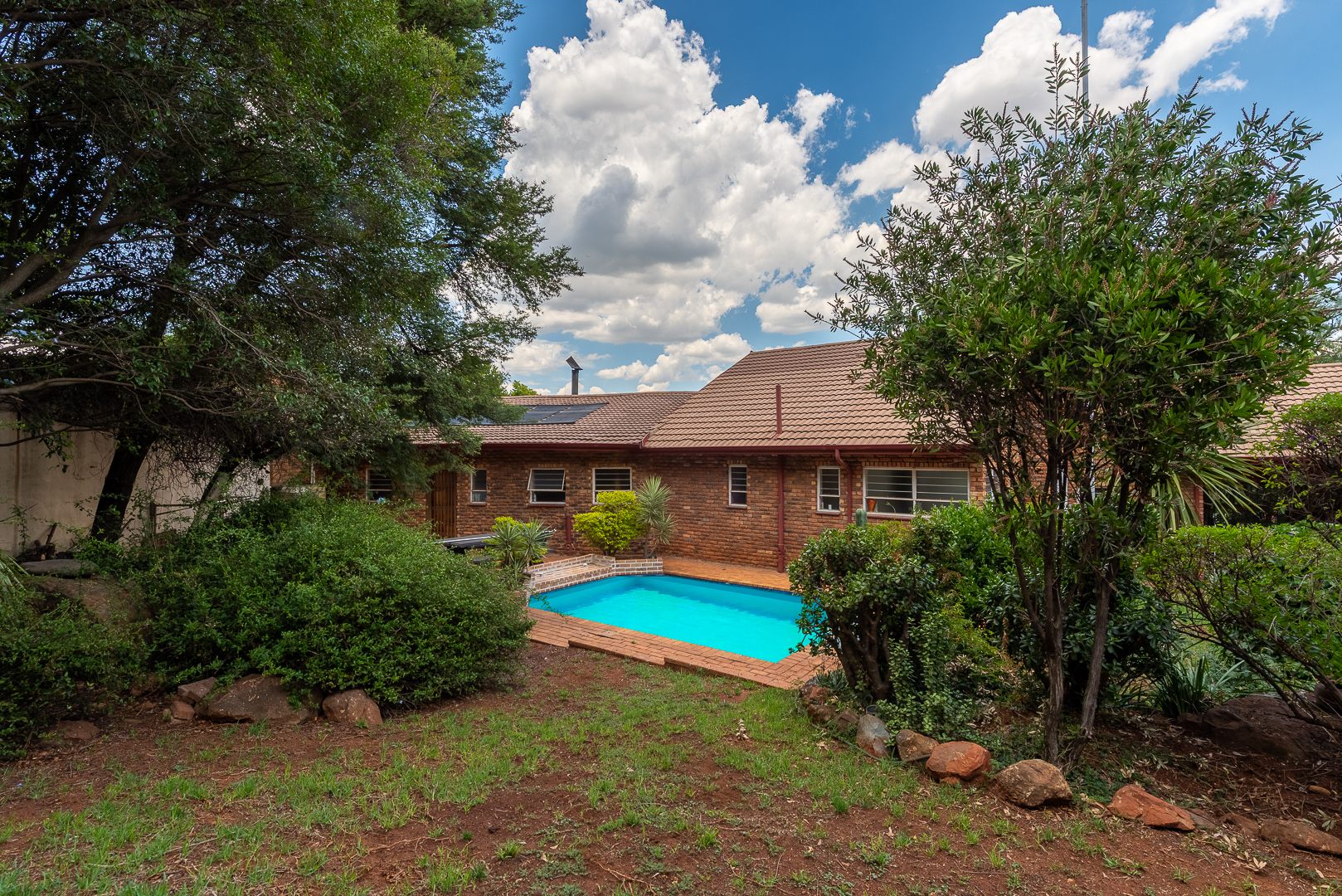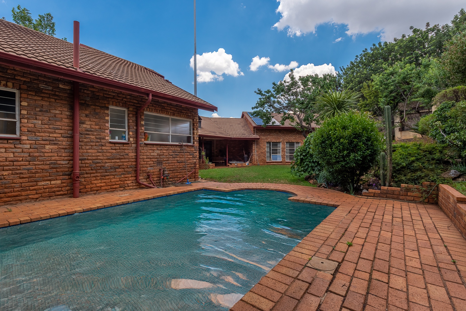 Inside, discover thoughtfully designed split-level living areas that add architectural interest. The home includes a spacious lounge, dining room and a dedicated study. The well-appointed kitchen features dark grey cabinetry, granite countertops and a breakfast bar. Exposed brick walls add character throughout .The residence comprises 4 comfortable bedroom, four well-appointed bathrooms and and a very spacious entertainment area . Outdoors, a private swimming pool awaits enjoyment amidst a mature, treed garden, perfect for relaxation and entertaining. Paved areas enhance functionality, and pets are welcome.Practicality is paramount with extensive parking facilities, including a six car garage .This property offers a tranquil suburban lifestyle within an established neighborhood, maintaining convenient access to Johannesburg's amenities.