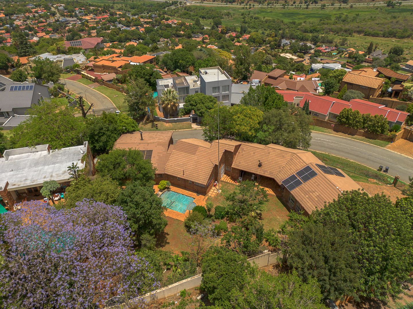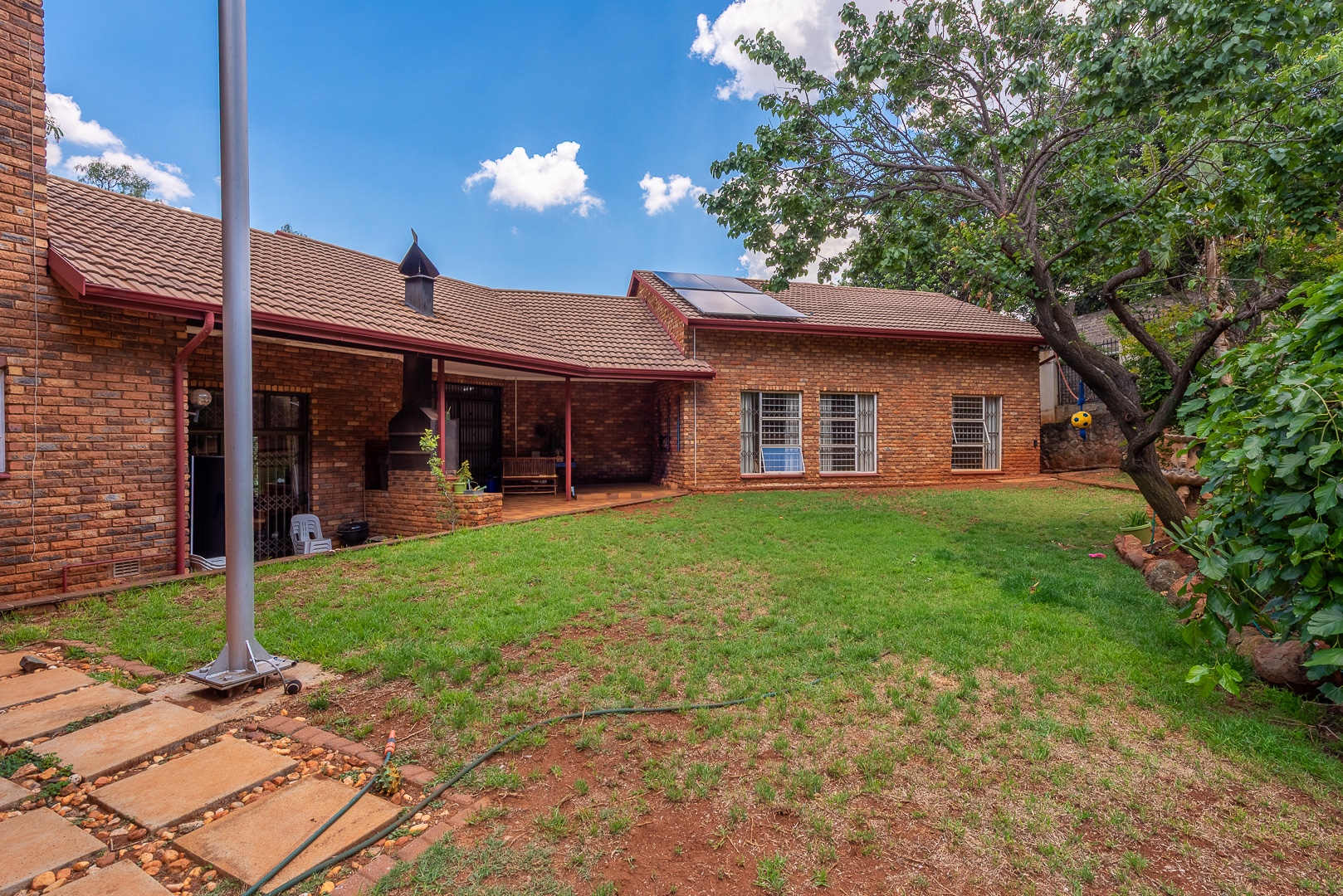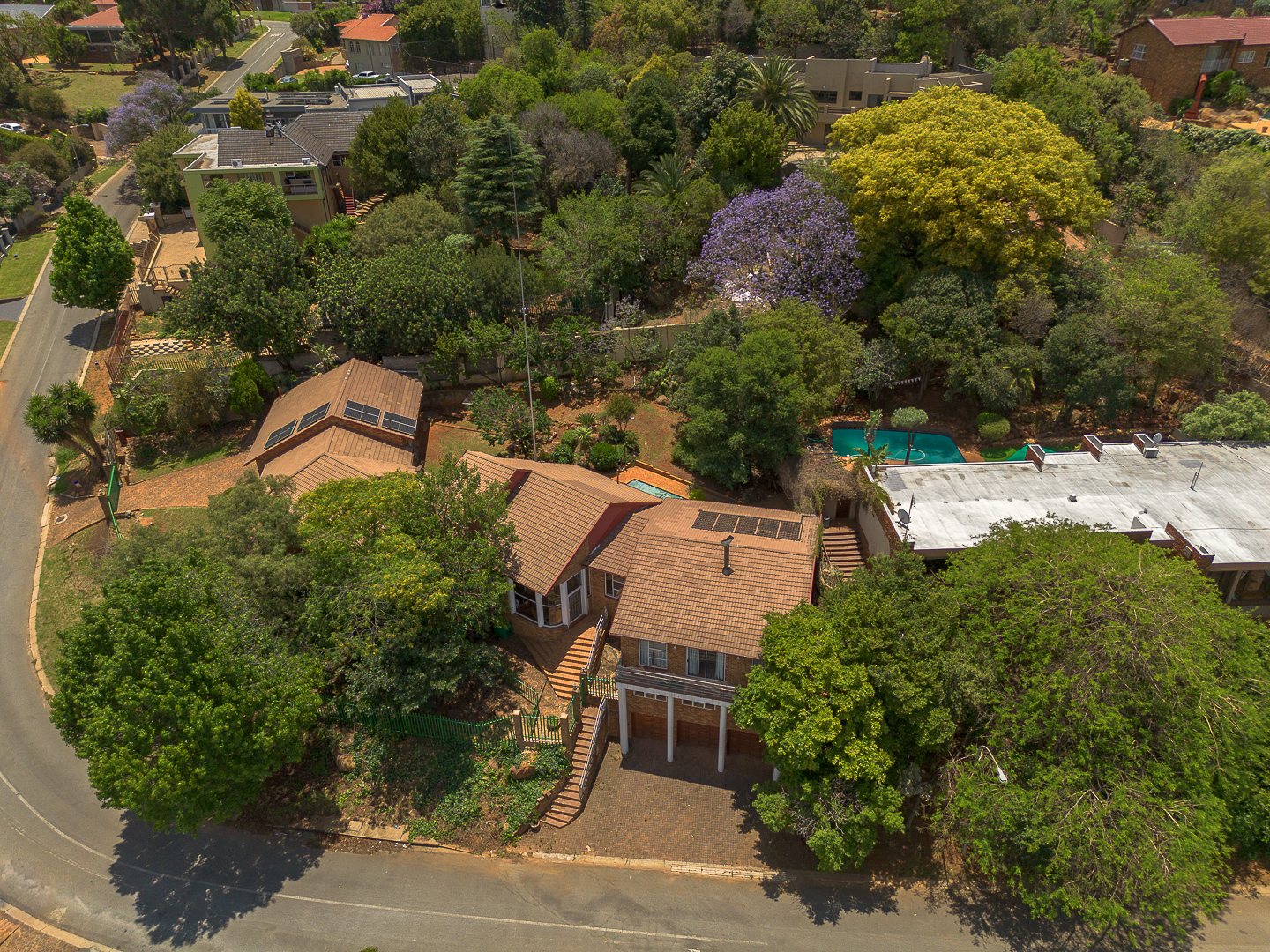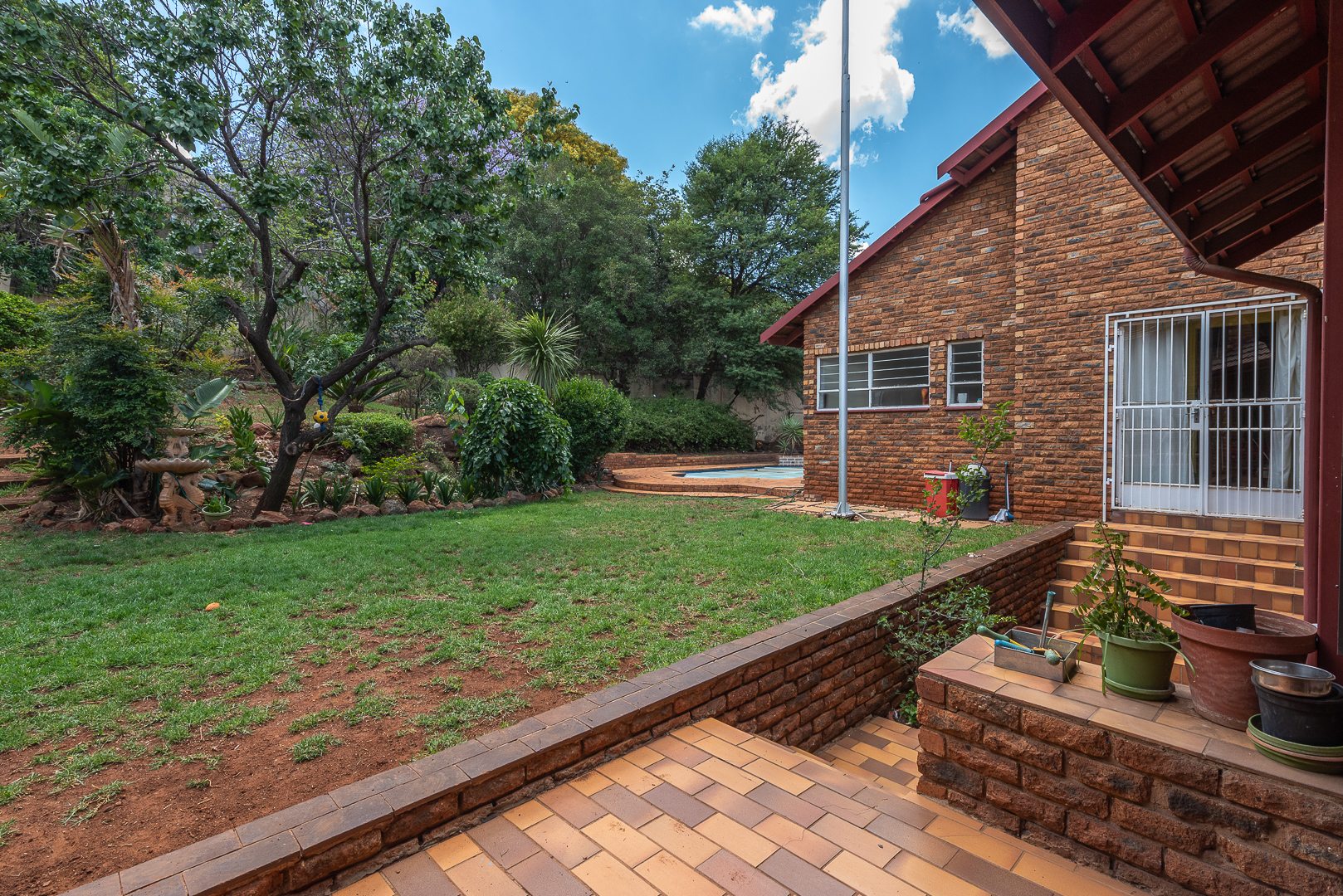Inside, discover thoughtfully designed split-level living areas that add architectural interest. The home includes a spacious lounge, dining room and a dedicated study. The well-appointed kitchen features dark grey cabinetry, granite countertops and a breakfast bar. Exposed brick walls add character throughout .The residence comprises 4 comfortable bedroom, four well-appointed bathrooms and and a very spacious entertainment area . Outdoors, a private swimming pool awaits enjoyment amidst a mature, treed garden, perfect for relaxation and entertaining. Paved areas enhance functionality, and pets are welcome.Practicality is paramount with extensive parking facilities, including a six car garage .This property offers a tranquil suburban lifestyle within an established neighborhood, maintaining convenient access to Johannesburg's amenities.