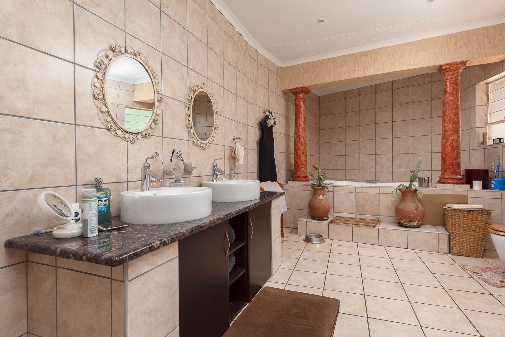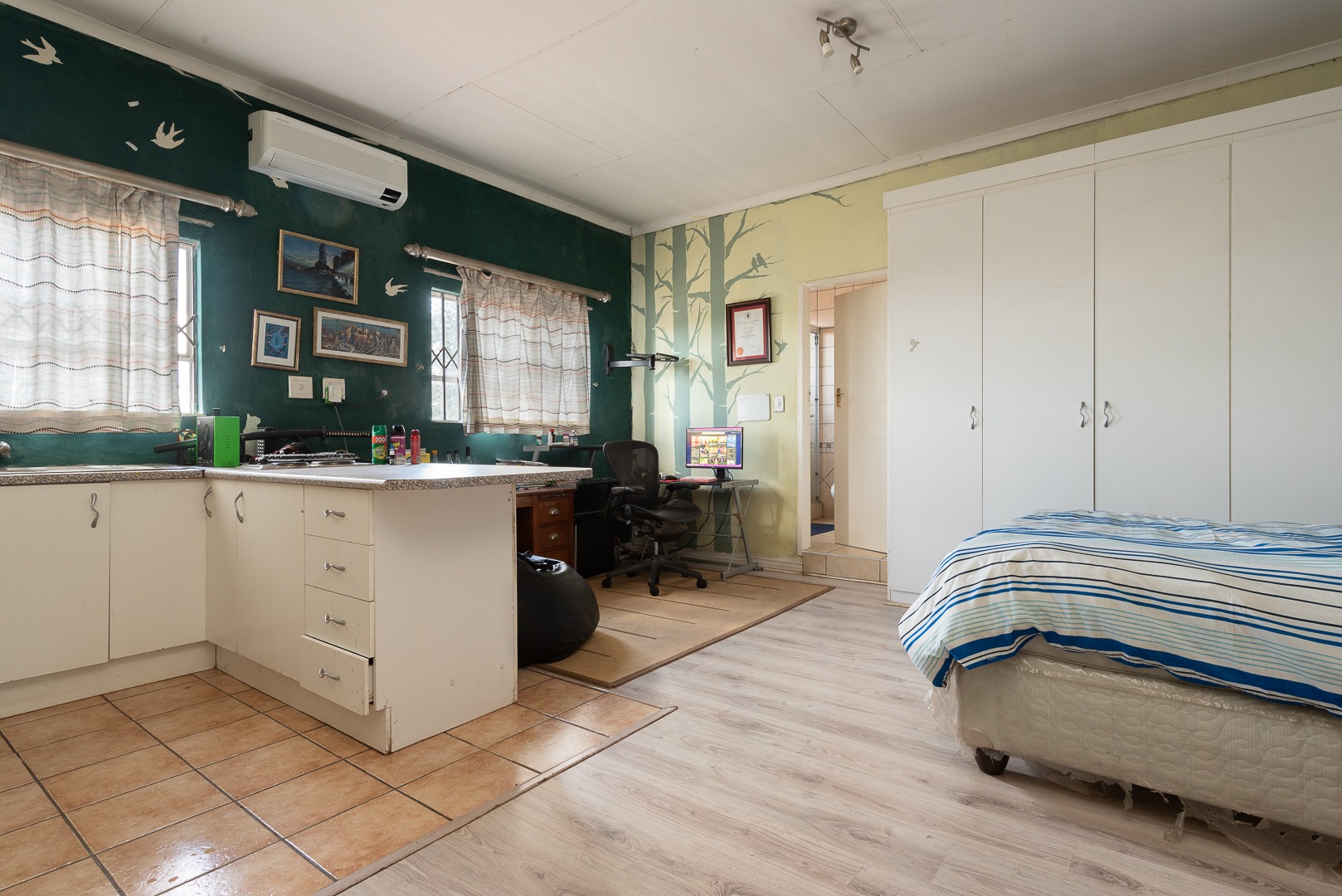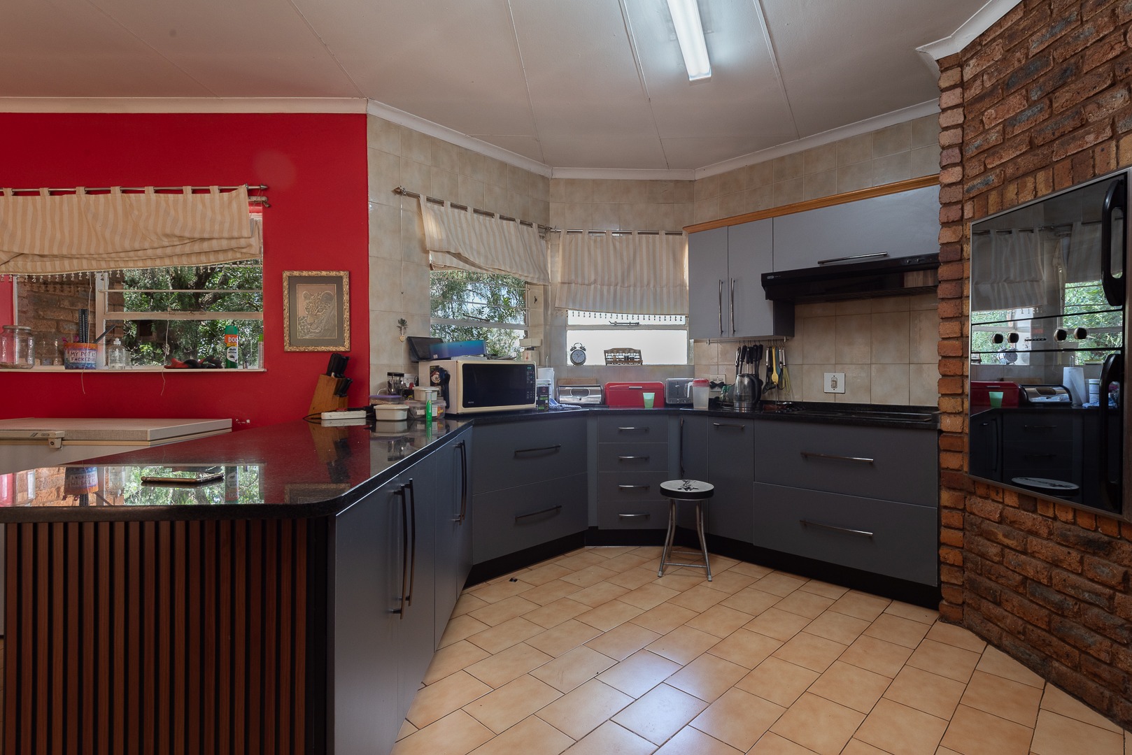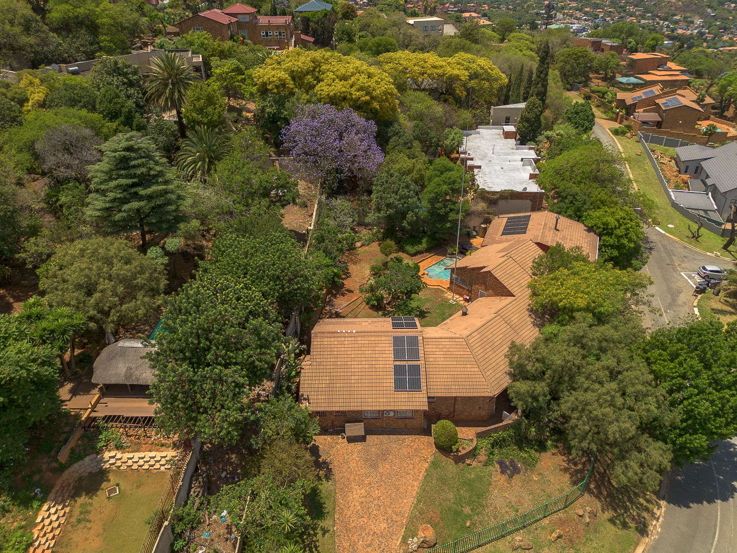 Inside, discover thoughtfully designed split-level living areas that add architectural interest. The home includes a spacious lounge, dining room and a dedicated study. The well-appointed kitchen features dark grey cabinetry, granite countertops and a breakfast bar. Exposed brick walls add character throughout .The residence comprises 4 comfortable bedroom, four well-appointed bathrooms and and a very spacious entertainment area . Outdoors, a private swimming pool awaits enjoyment amidst a mature, treed garden, perfect for relaxation and entertaining. Paved areas enhance functionality, and pets are welcome.Practicality is paramount with extensive parking facilities, including a six car garage .This property offers a tranquil suburban lifestyle within an established neighborhood, maintaining convenient access to Johannesburg's amenities.